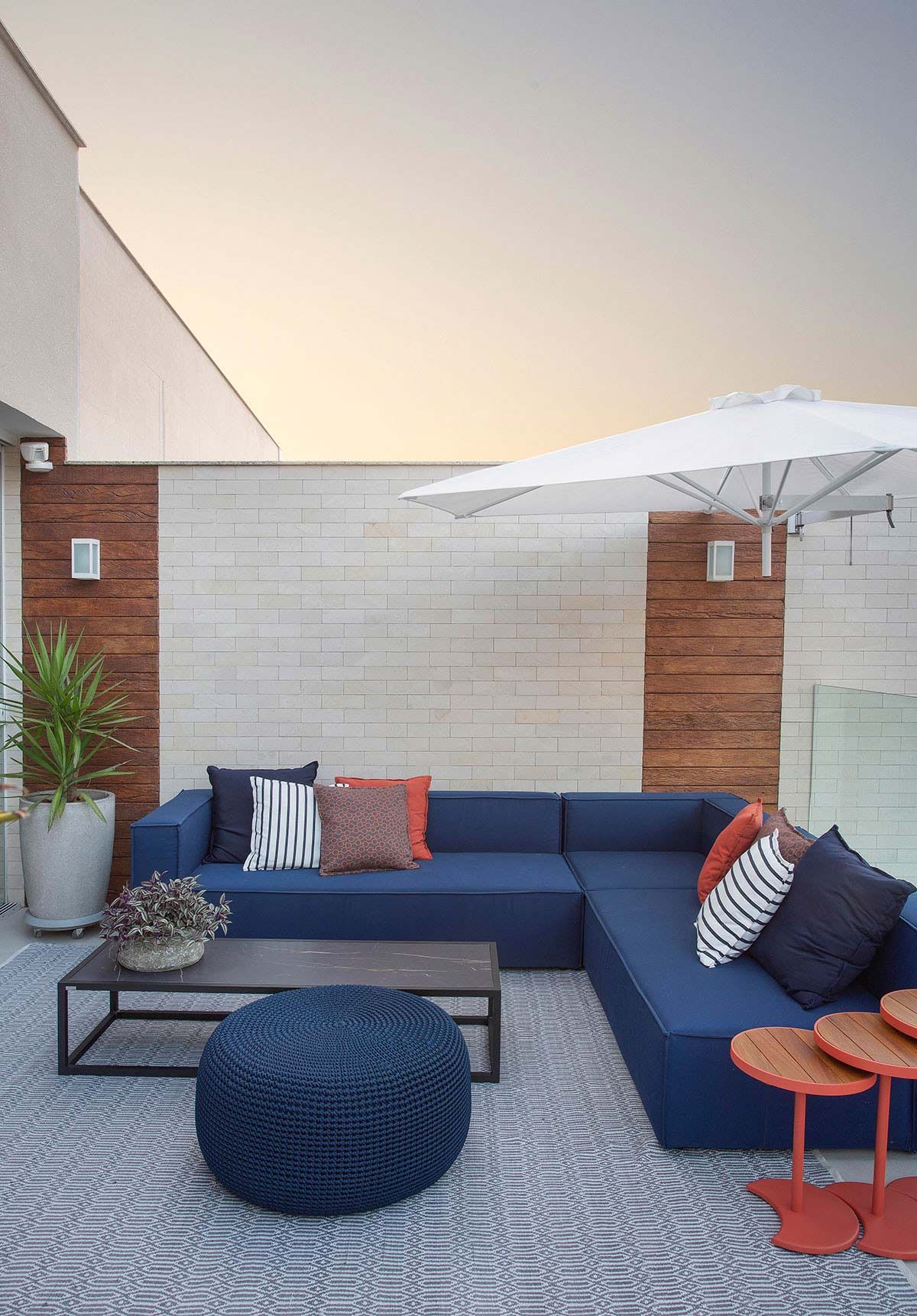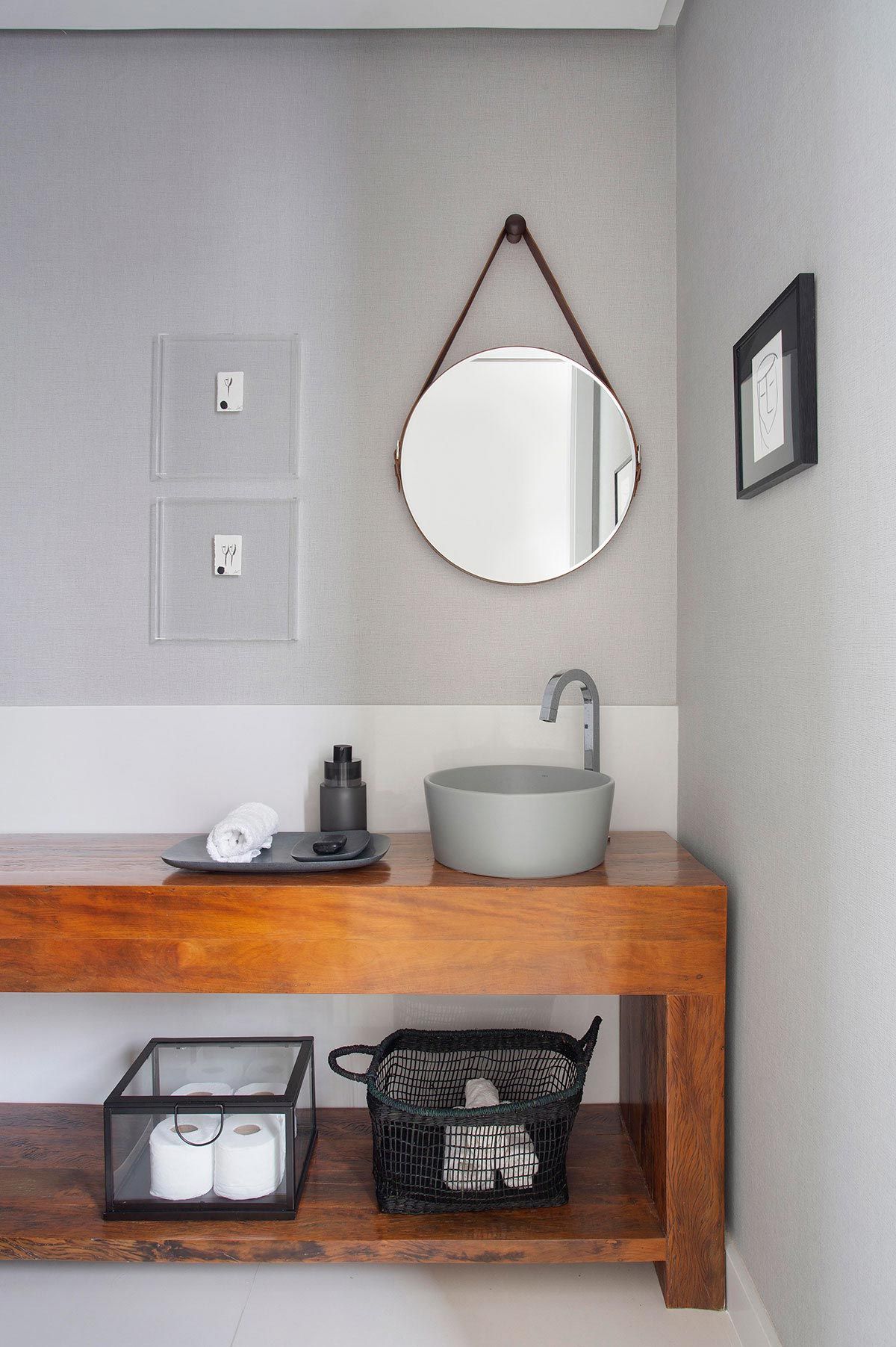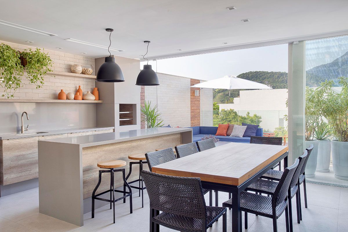 O casal de empresários com duas filhas na faixa dos 20 anos, pediu que a cobertura atendesse um plano de vida até a velhice. Nos 198m² do piso inferior ficou toda a área social, lavabo e suíte das filhas, e na parte de cima, a área gourmet, piscina, área de serviço, sala de TV, home office e suíte do casal. Um ponto interessante, é que o elevador do prédio dá acesso direto à cobertura, permitindo que os moradores recebam suas visitas sem precisar passar pelo estar. Todos os detalhes do projeto são reflexo da personalidade de cada um que vive na casa, mas juntos à arquiteta, todos gostam muito de um elemento:
