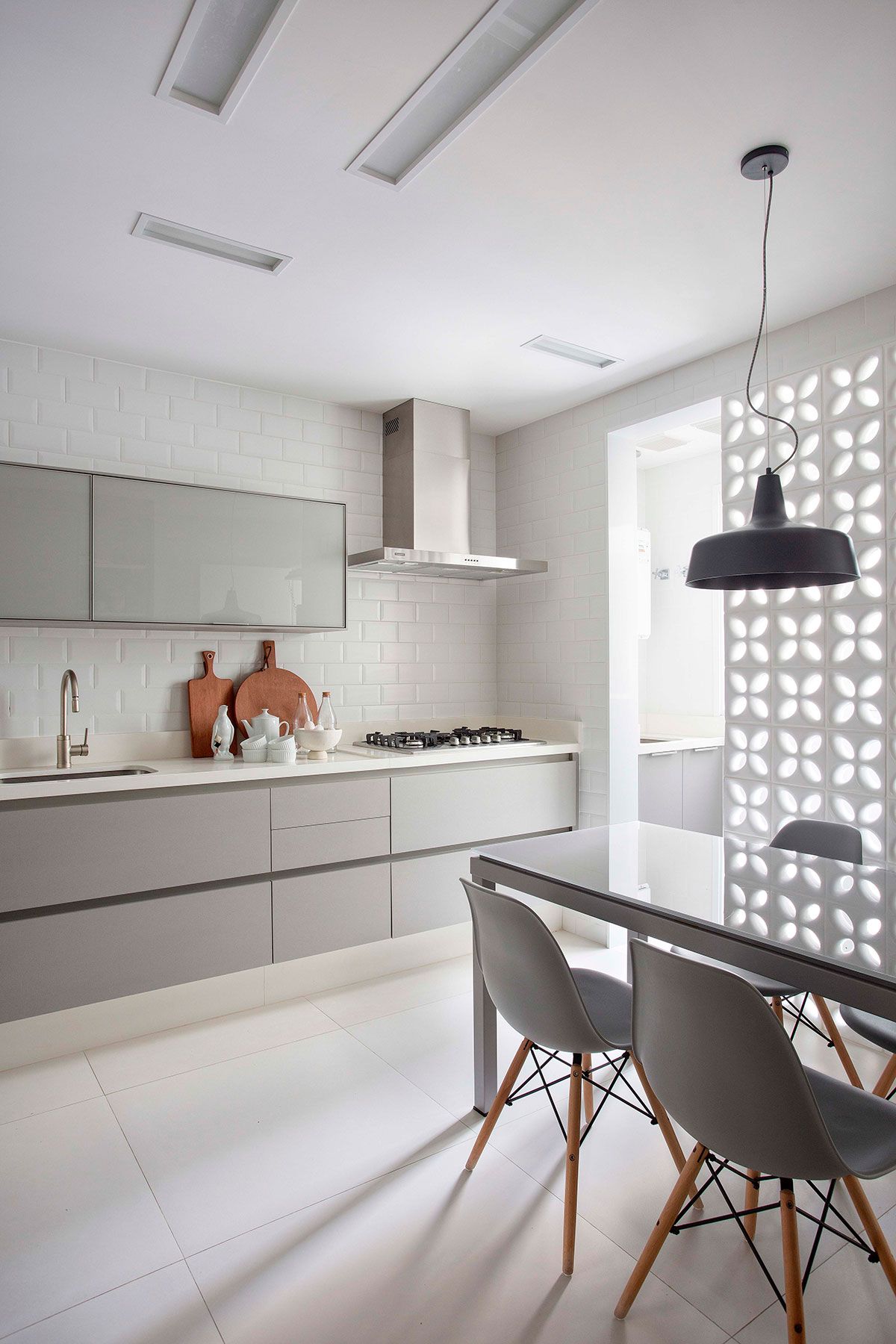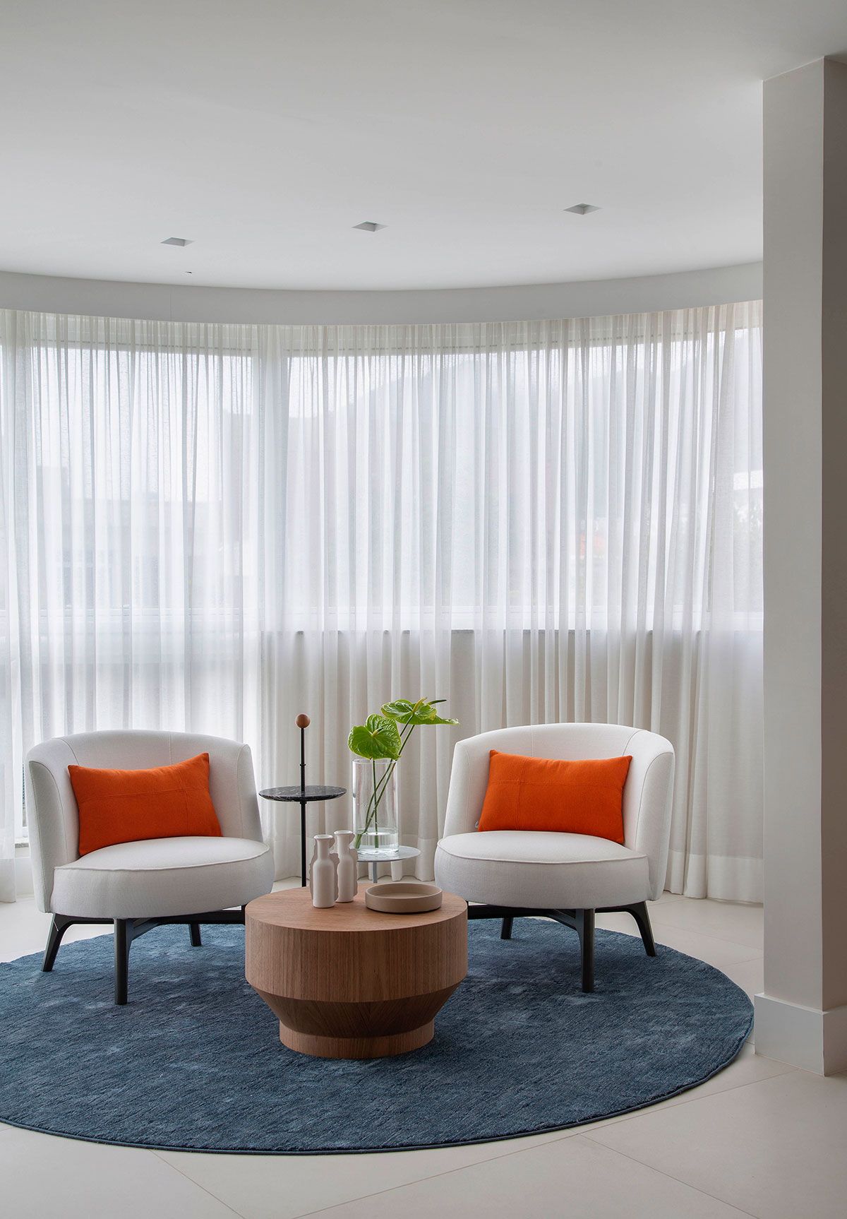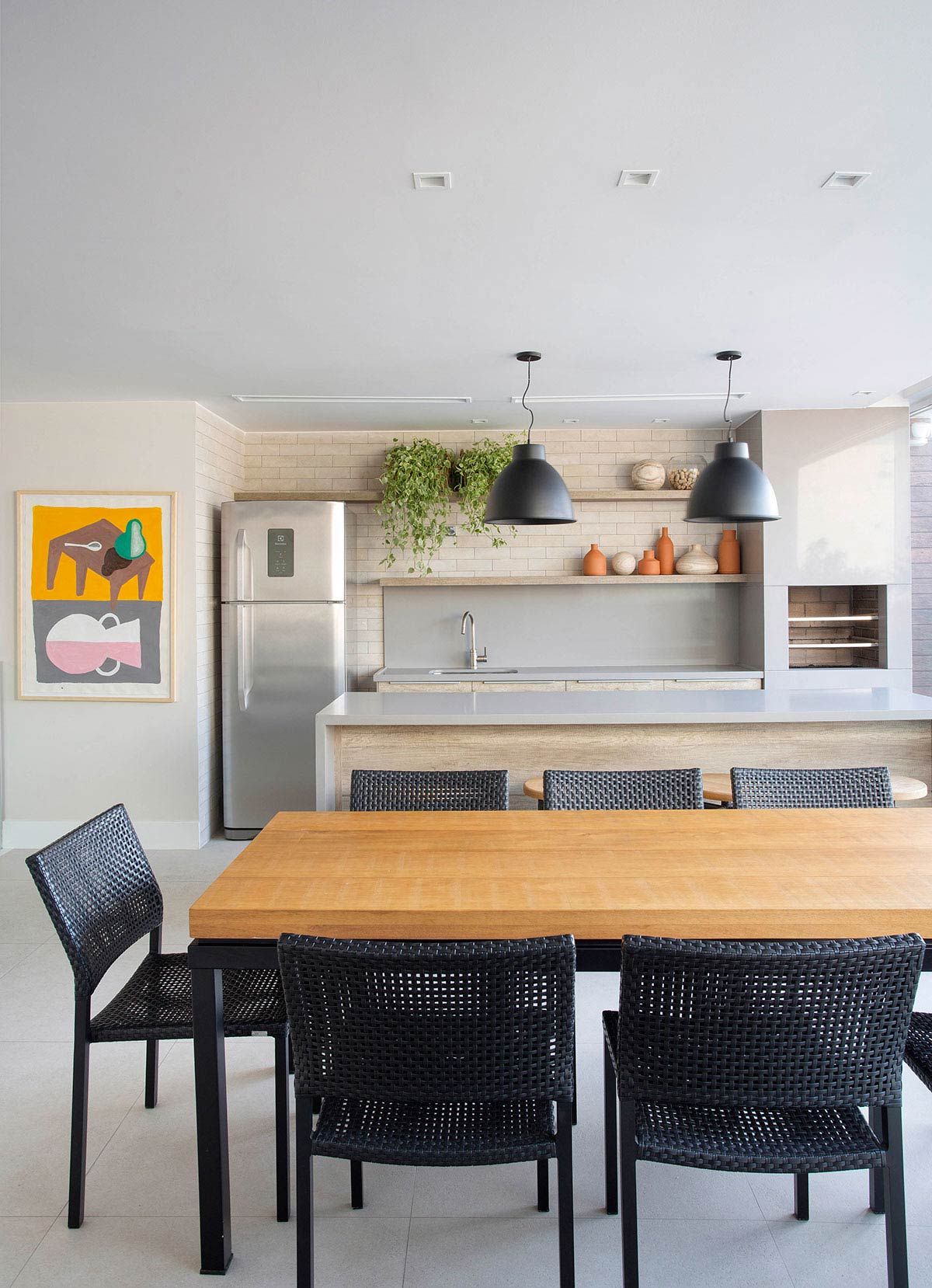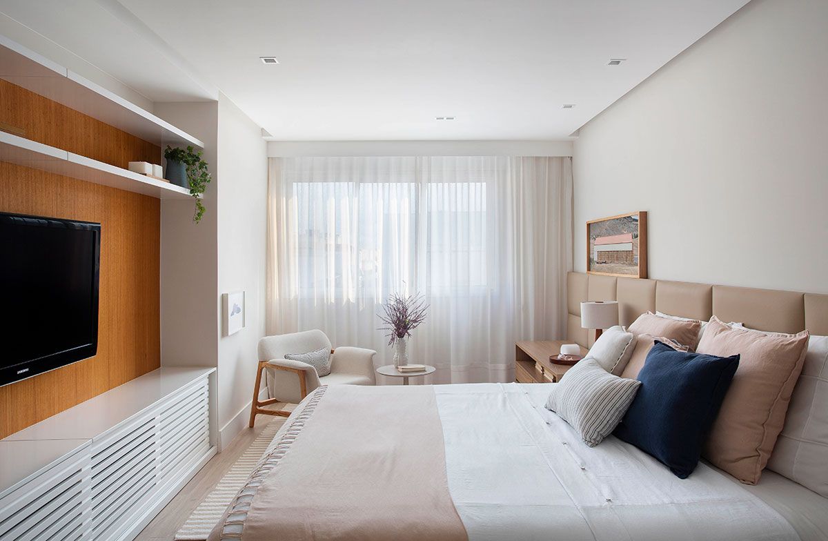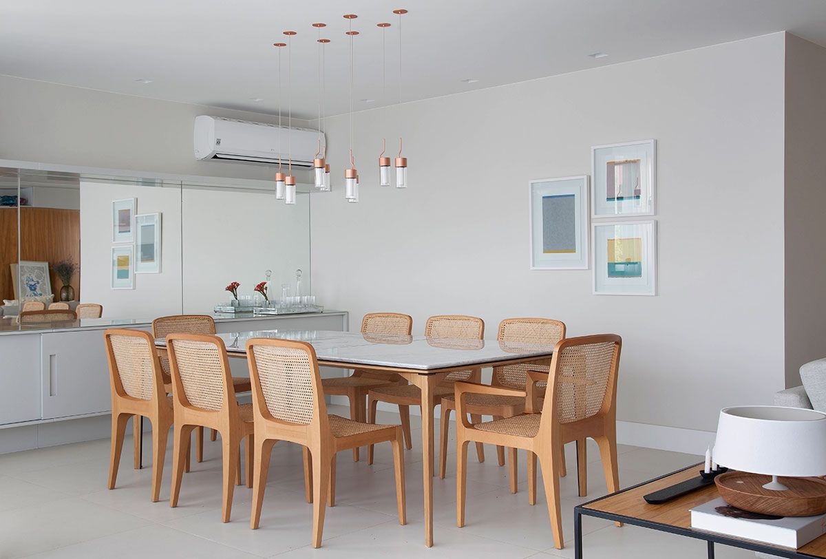 Foi um casamento de três anos no total, desde o projeto inicial desenvolvido pela planta da construtora, passando pelo acompanhamento da obra e escolha de todos os materiais, até a marcenaria e a produção final com os objetos e obras de arte; que resultou em um apê com decoração contemporânea e que atende todos os desejos dos proprietários.