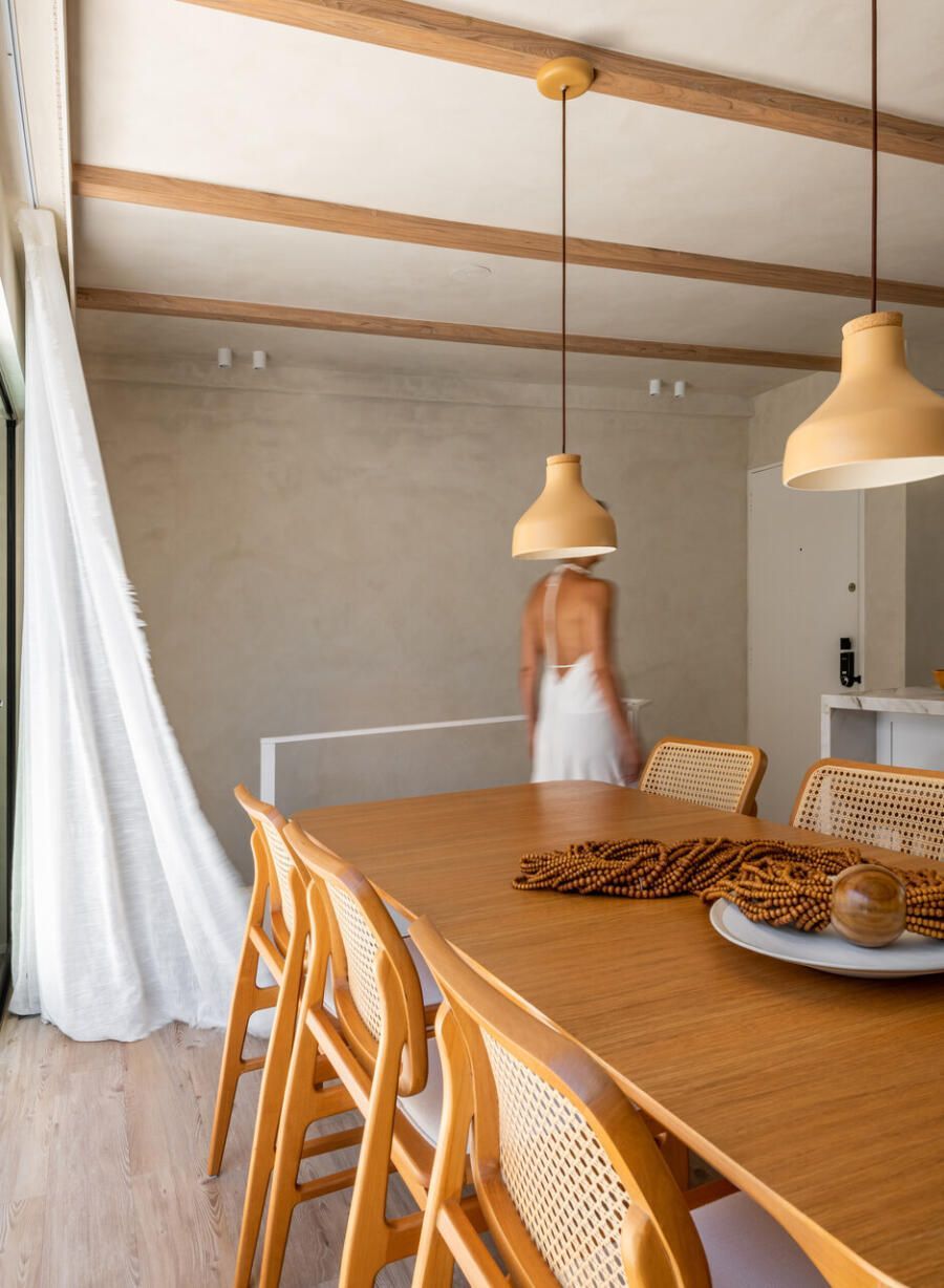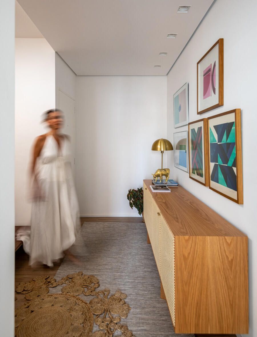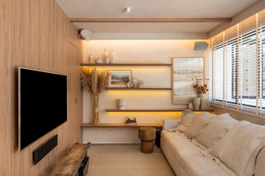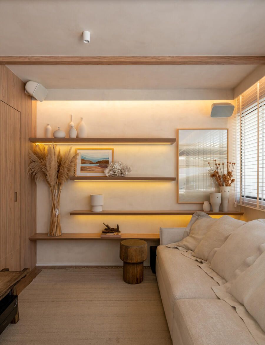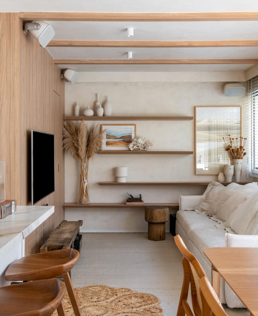 O projeto partiu de um desejo muito claro: criar um apartamento com espírito de casa, acolhedor e leve, mas sem excessos visuais. Com uma rotina profissional intensa e cheia de estímulos, Veridiana queria que o próprio lar funcionasse como um contraponto, um lugar de descanso sensorial. Materiais naturais, texturas suaves e uma paleta tranquila foram escolhidos para construir essa atmosfera de abrigo silencioso.