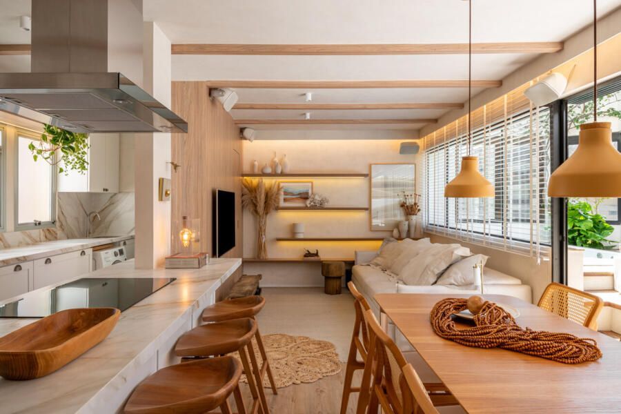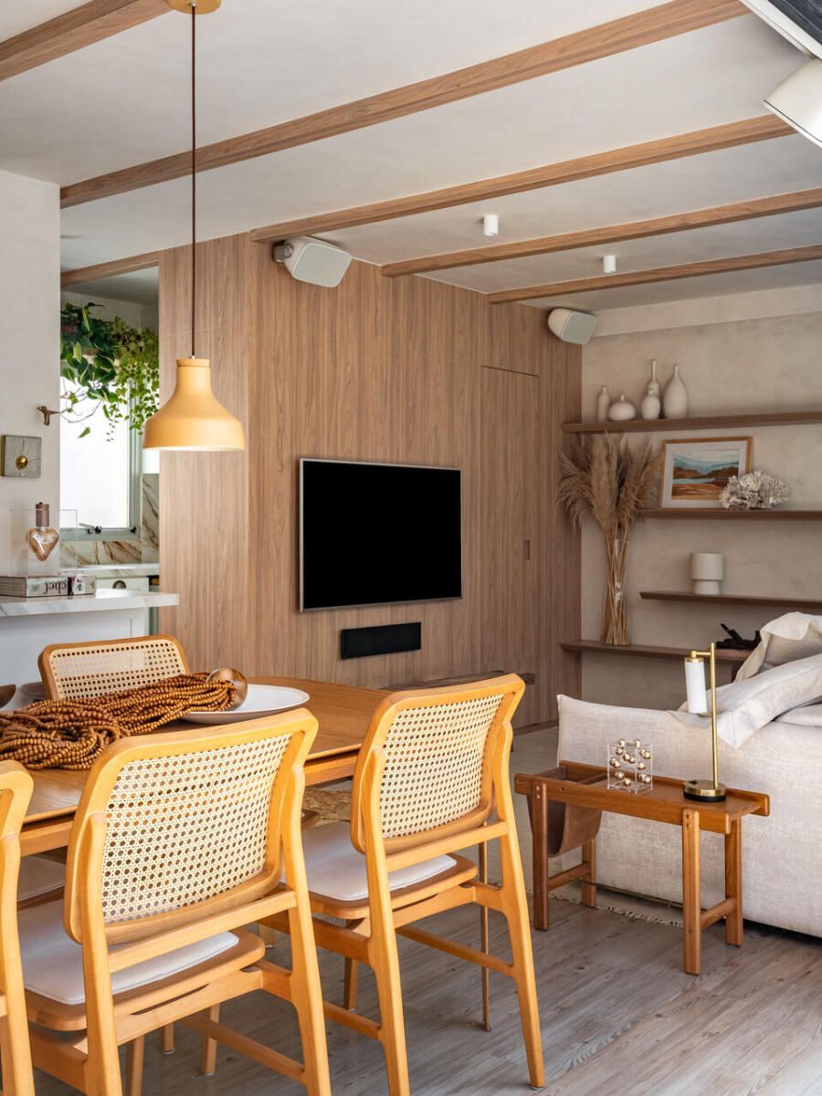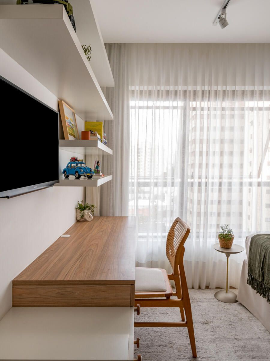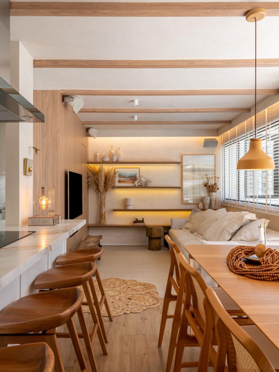 O projeto partiu de um desejo muito claro: criar um apartamento com espírito de casa, acolhedor e leve, mas sem excessos visuais. Com uma rotina profissional intensa e cheia de estímulos, Veridiana queria que o próprio lar funcionasse como um contraponto, um lugar de descanso sensorial. Materiais naturais, texturas suaves e uma paleta tranquila foram escolhidos para construir essa atmosfera de abrigo silencioso.