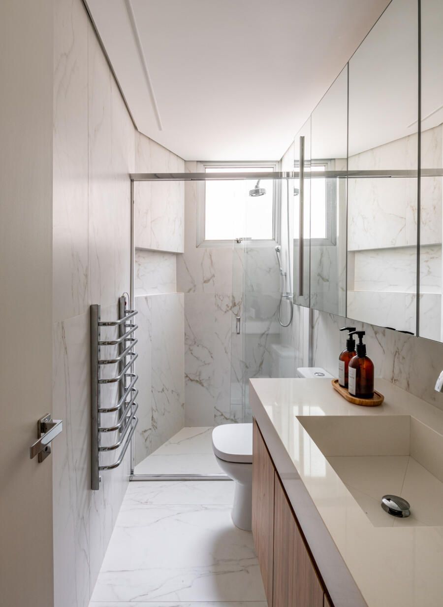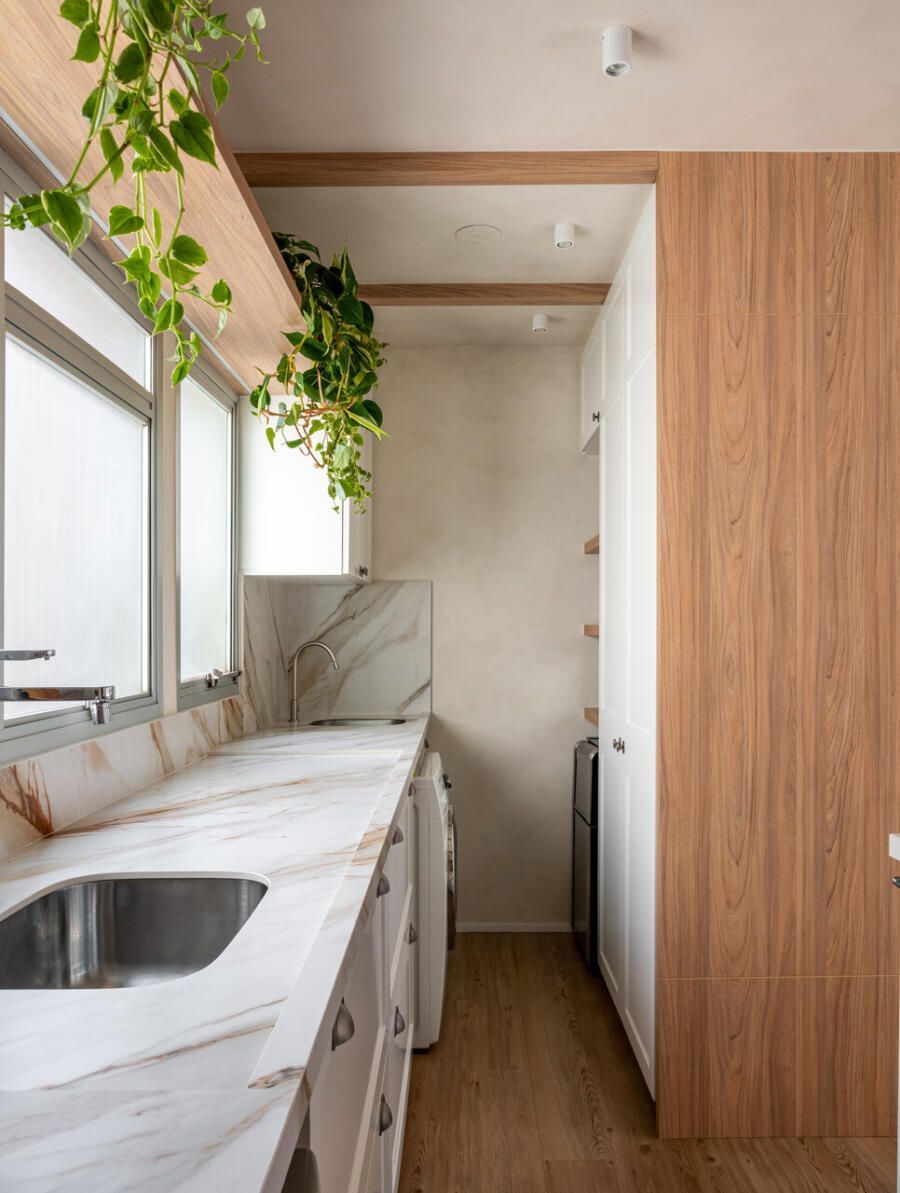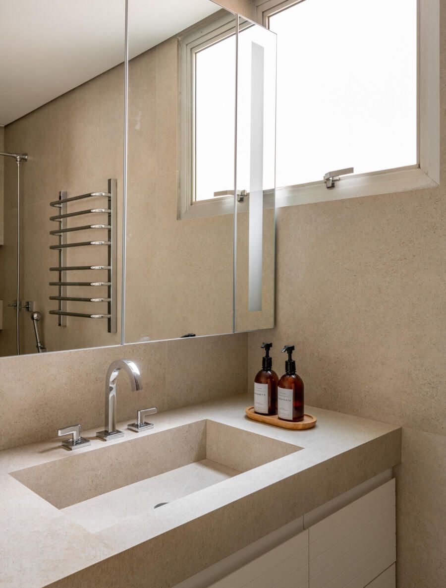 Um dos maiores desafios foi justamente projetar para si mesma. Como arquiteta, Veridiana sabia que o risco de cansar do próprio projeto ao longo do tempo poderia ser maior. Por isso, as escolhas buscaram equilíbrio e atemporalidade, privilegiando soluções simples, bem resolvidas e capazes de atravessar os anos com naturalidade.