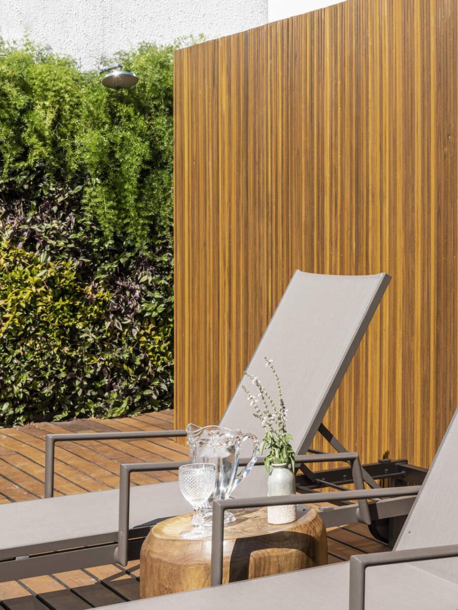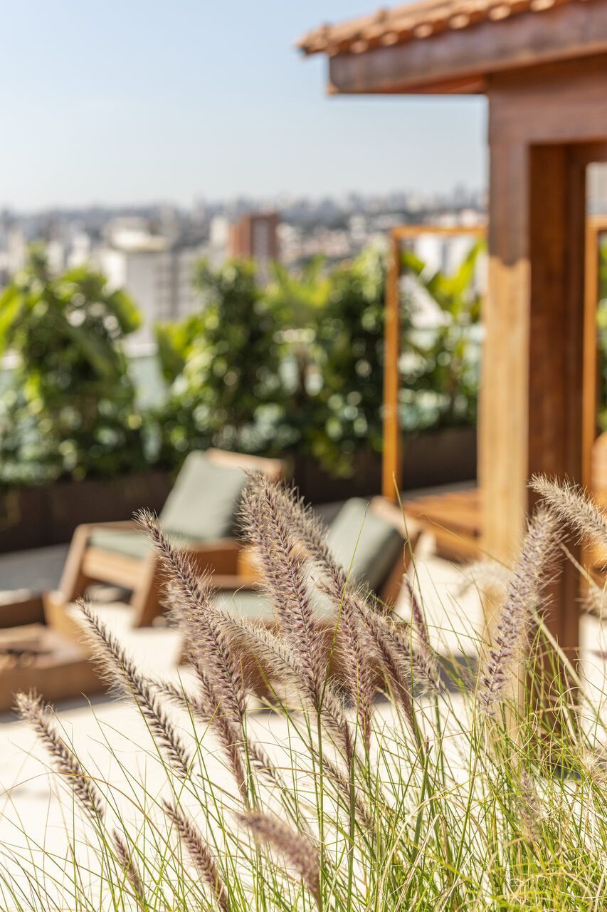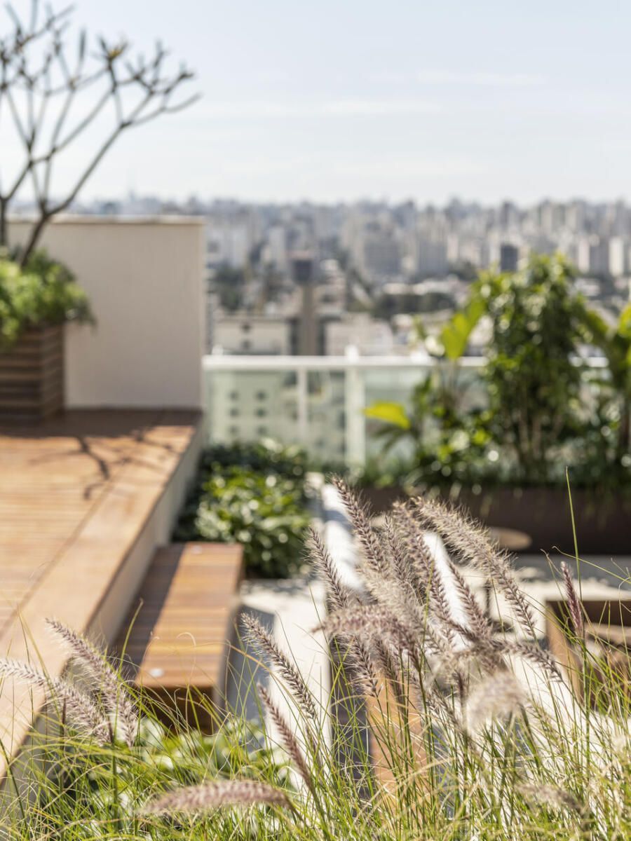 “O paisagismo transmite paz e privacidade para a cobertura, transformando-a em um refúgio natural no meio da cidade de São Paulo. Outros pontos importantes são os materiais escolhidos, como as almofadas e as poltronas com cores que dialogam com a vegetação e o restante do projeto.”