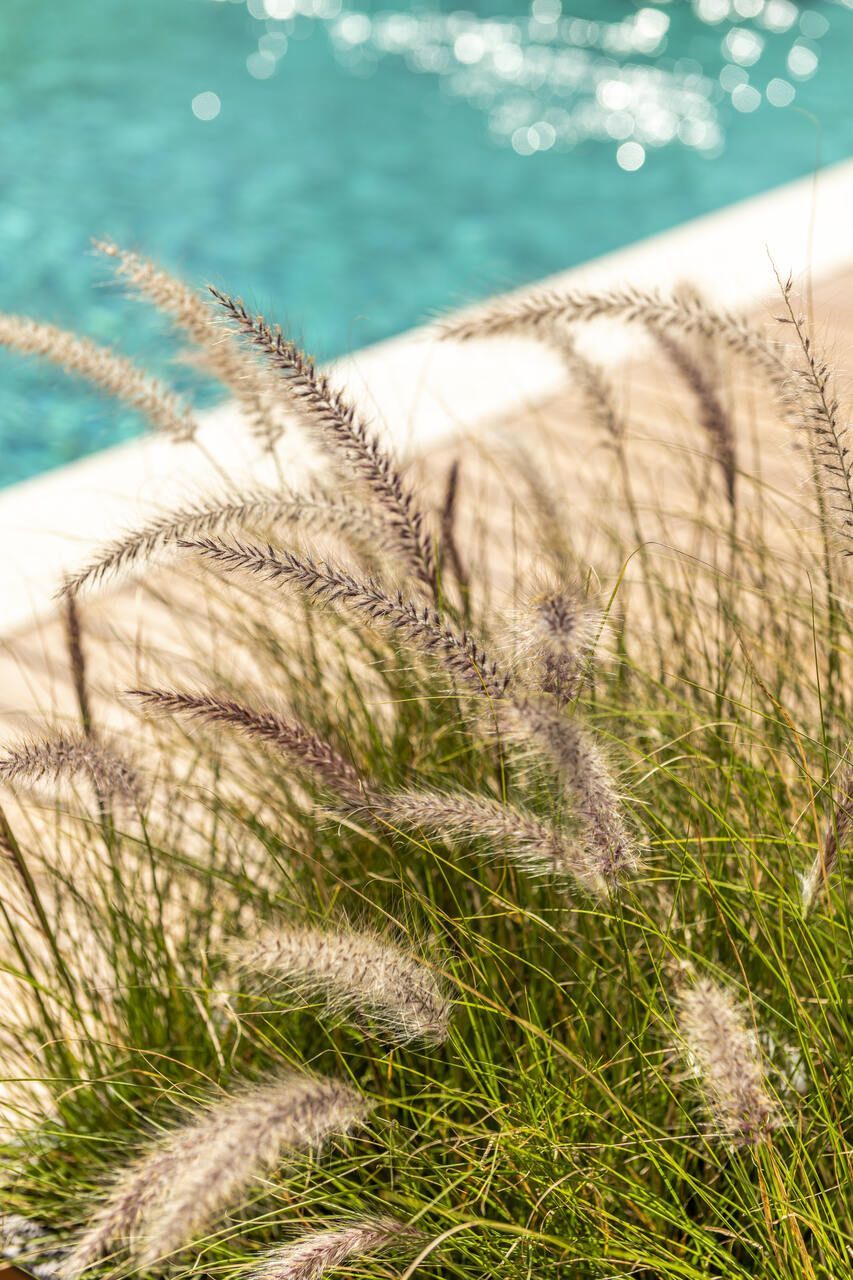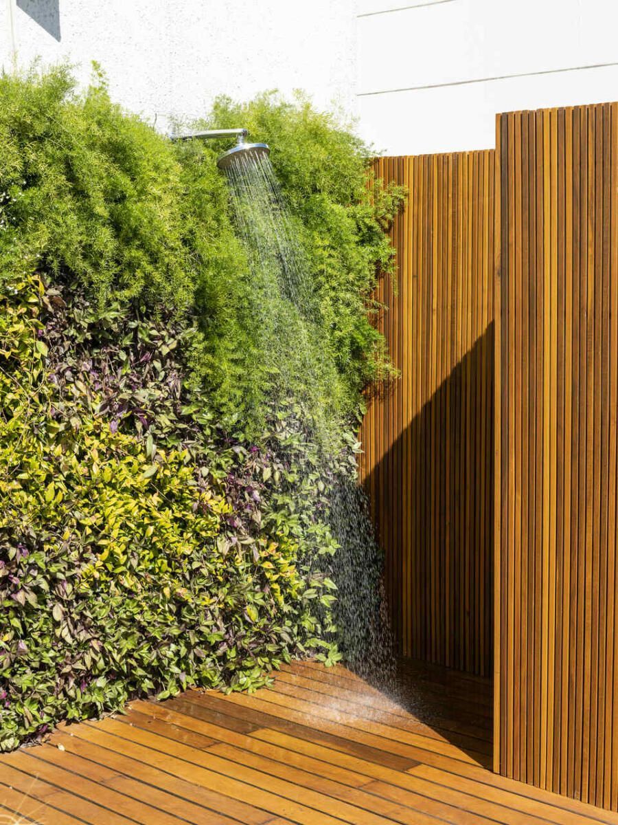 Para compor todo o verde que abraça a cobertura, a paisagista Bia Abreu propôs o uso de vasos com lavanda, filodendro-ondulado, aspargos e jasmim-manga para embelezar o espaço. Já capim-do-texas verde e samambaia se espalham pelas floreiras. Nos fundos, um minipomar em vasos com pés de acerola, romã, pitanga e jabuticaba, além de uma horta com ervas e temperos, tornam o projeto único e a cobertura mais viva.