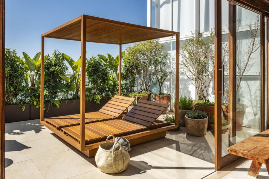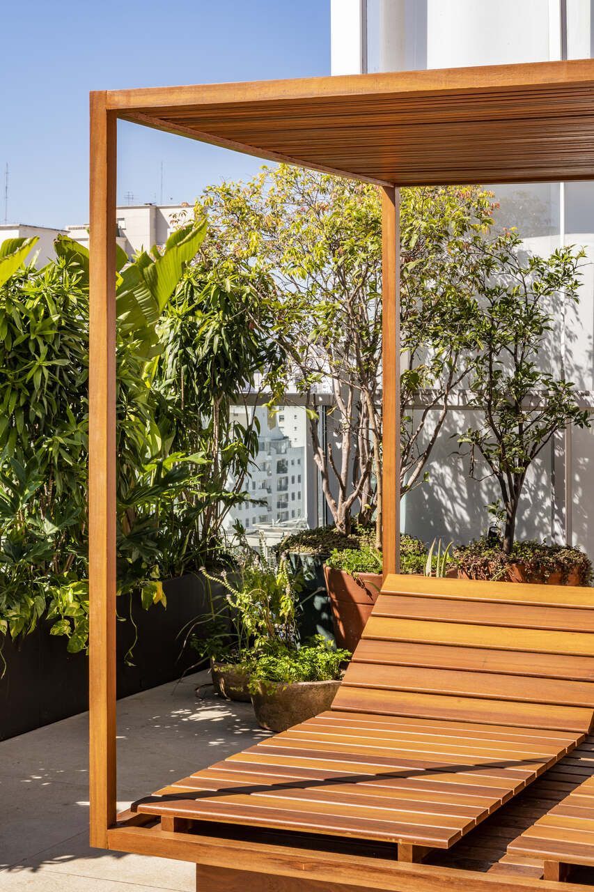 Para quem está acostumado em viver em cidades grandes, ter um espaço de relaxamento e encontro com a natureza em casa é um grande privilégio. Neste projeto em Campo Belo, São Paulo, as arquitetas do Apó Arquitetura conseguiram criar um refúgio urbano na cobertura do prédio, com muito verde e integração com a área social.