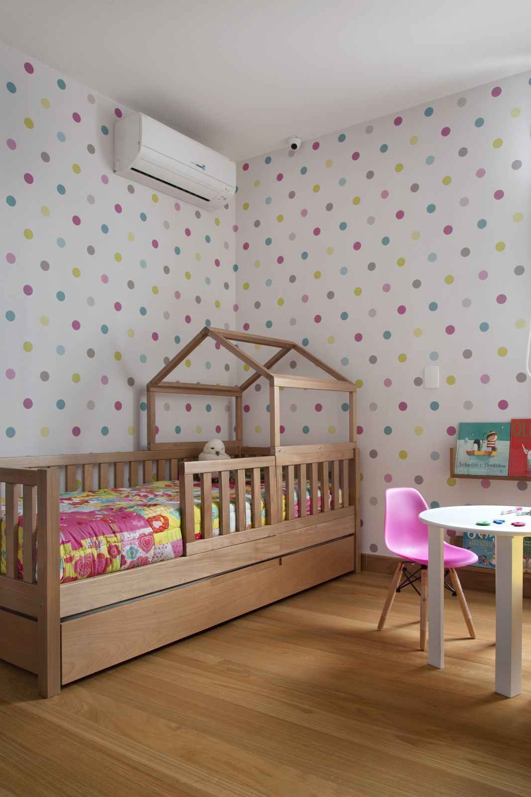 “Eles compraram esta cobertura em busca de mais espaço e conforto, sendo necessária uma reforma total e decoração nova na morada. Logo no primeiro encontro, o casal nos pediu um escritório em casa, um quarto exclusivo para a filha de dois anos e outro que seria compartilhado pelas gêmeas que estavam por nascer. Eles também queriam incluir no projeto piscina, sauna e área de churrasqueira.”