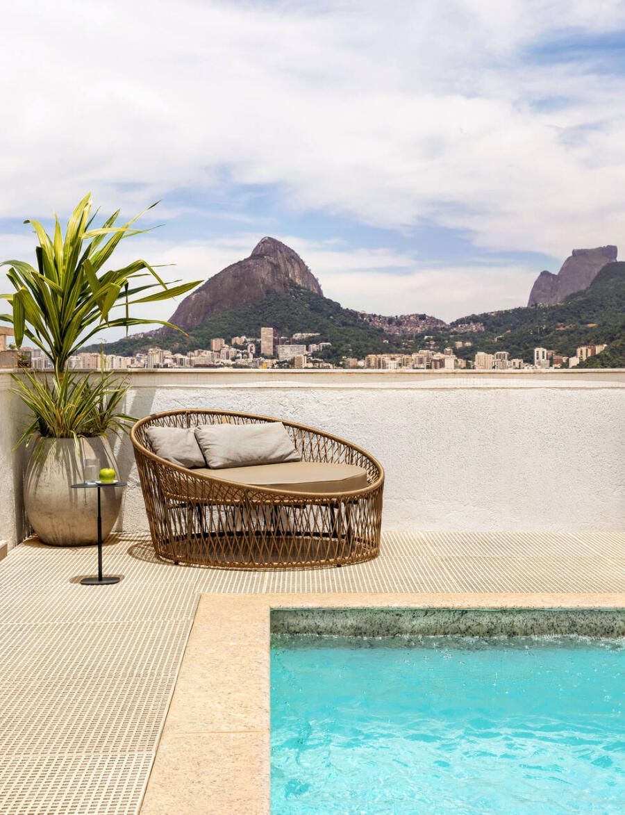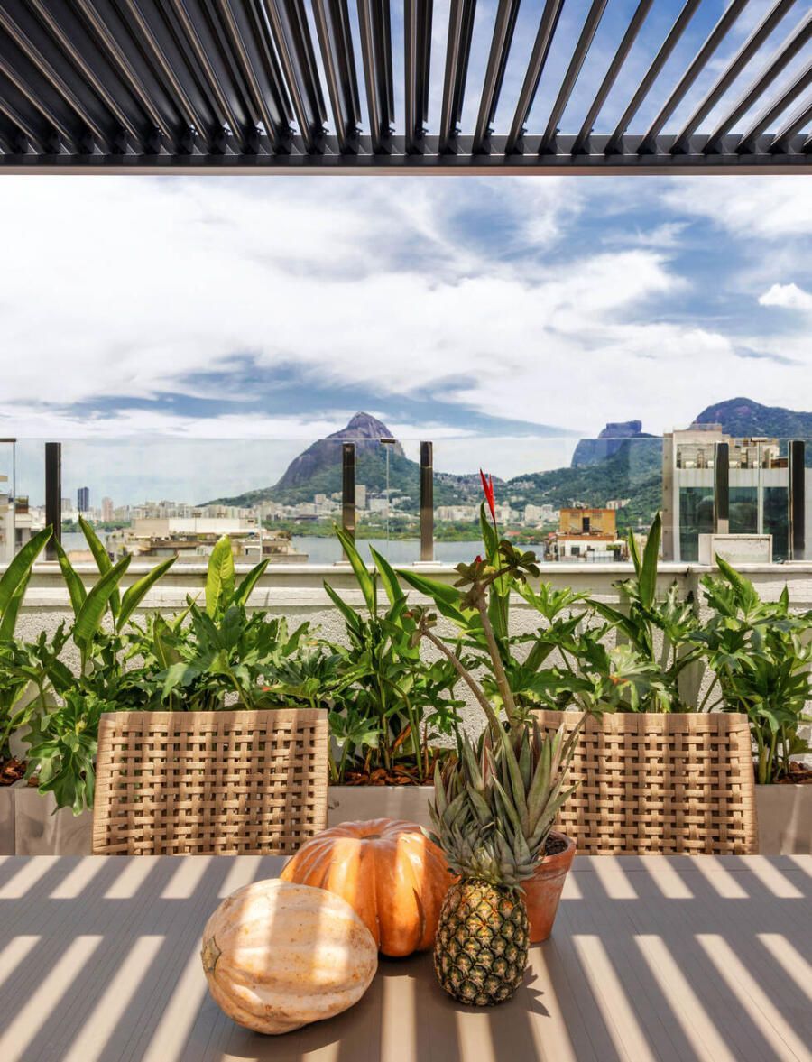 Nesta cobertura duplex de 490m² no bairro Humaitá, no Rio de Janeiro, um casal na faixa dos 40 anos buscava um novo lar com mais espaço para aproveitar os dias de sol e receber os amigos. A prioridade era renovar os ambientes principais — área social no piso inferior e área externa no andar superior — sem quebra-quebra e com soluções práticas.