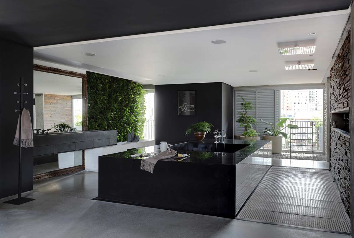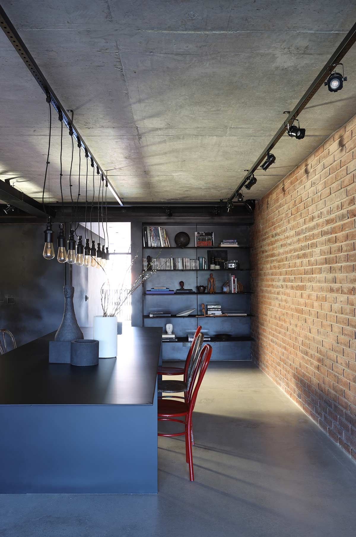 A reforma comandada pelo Beto Magalhães Arquitetura, não contava com algumas surpresas para lá de boas ao longo de seus dois anos de duração. Com projeto pensado inicialmente apenas para o proprietário, um par de coberturas duplex se uniu para virar um único imóvel no topo do Azul, edifício assinado pelo arquiteto Isay Weinfeld, no bairro paulistano Vila Madalena. Durante o processo, o morador conheceu sua mulher, casou-se e teve um filho, contribuindo para o amadurecimento e finalização da morada com ares industriais: