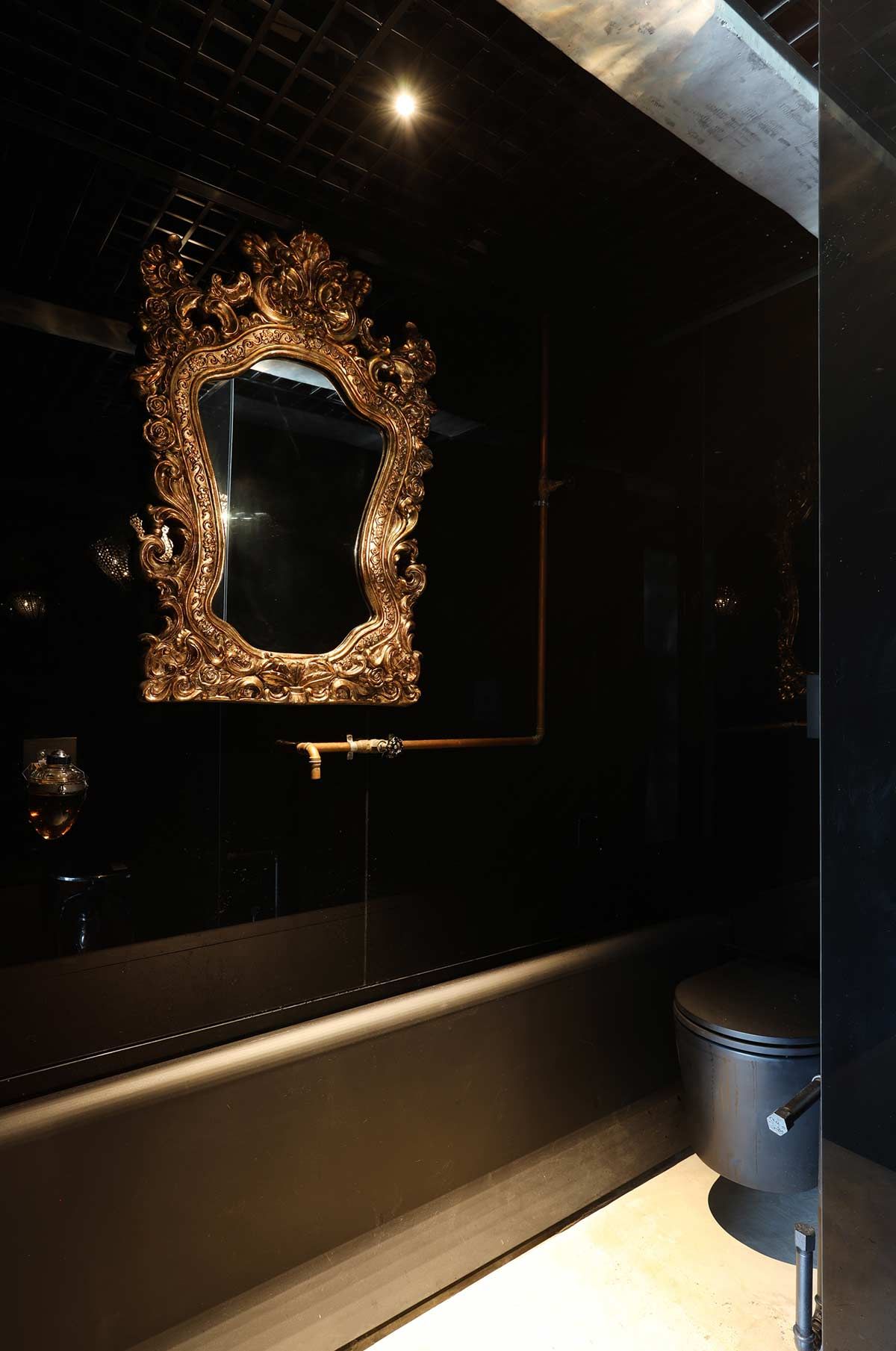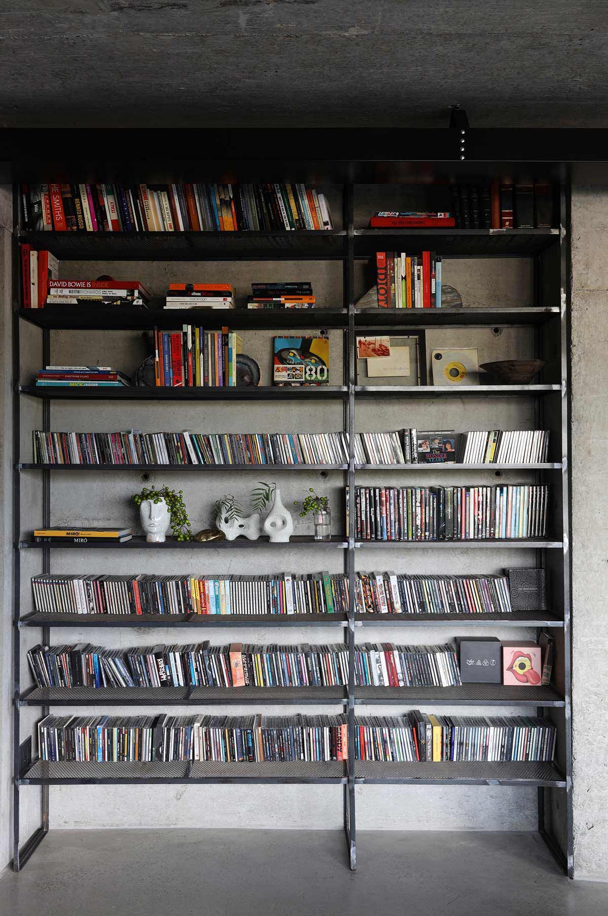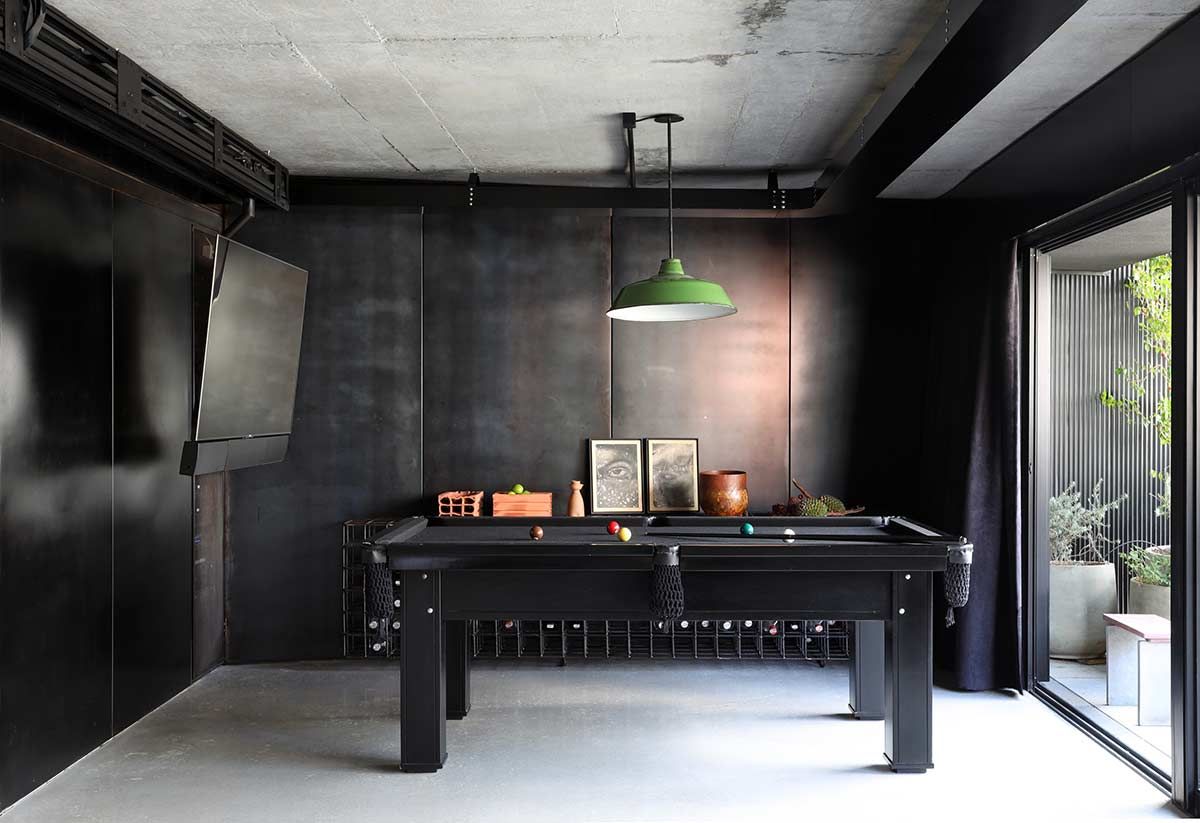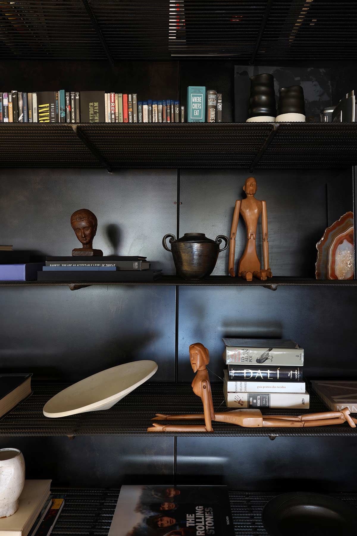 O escritório, além do projeto de arquitetura de interiores, assina uma série de itens que compõem os espaços. Conforme os moradores não encontravam nas lojas as peças que desejavam, eles passavam essa incumbência ao arquiteto, que criou vários elementos, como por exemplo o bar montado com vergalhões, a cama do casal elevada por meio de cabos de aço automatizados, e o mostruário que guarda a coleção de palhetas de guitarra.
