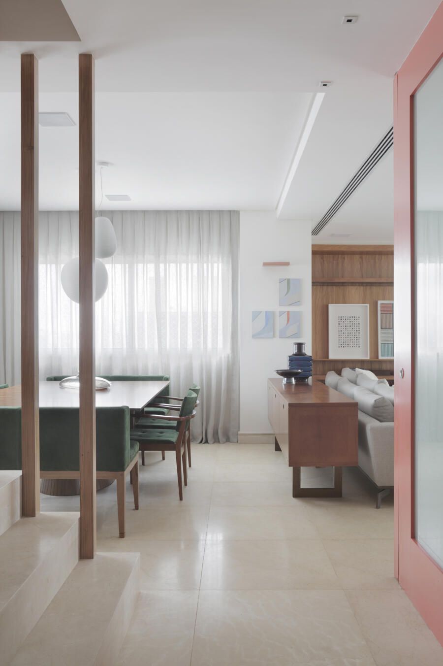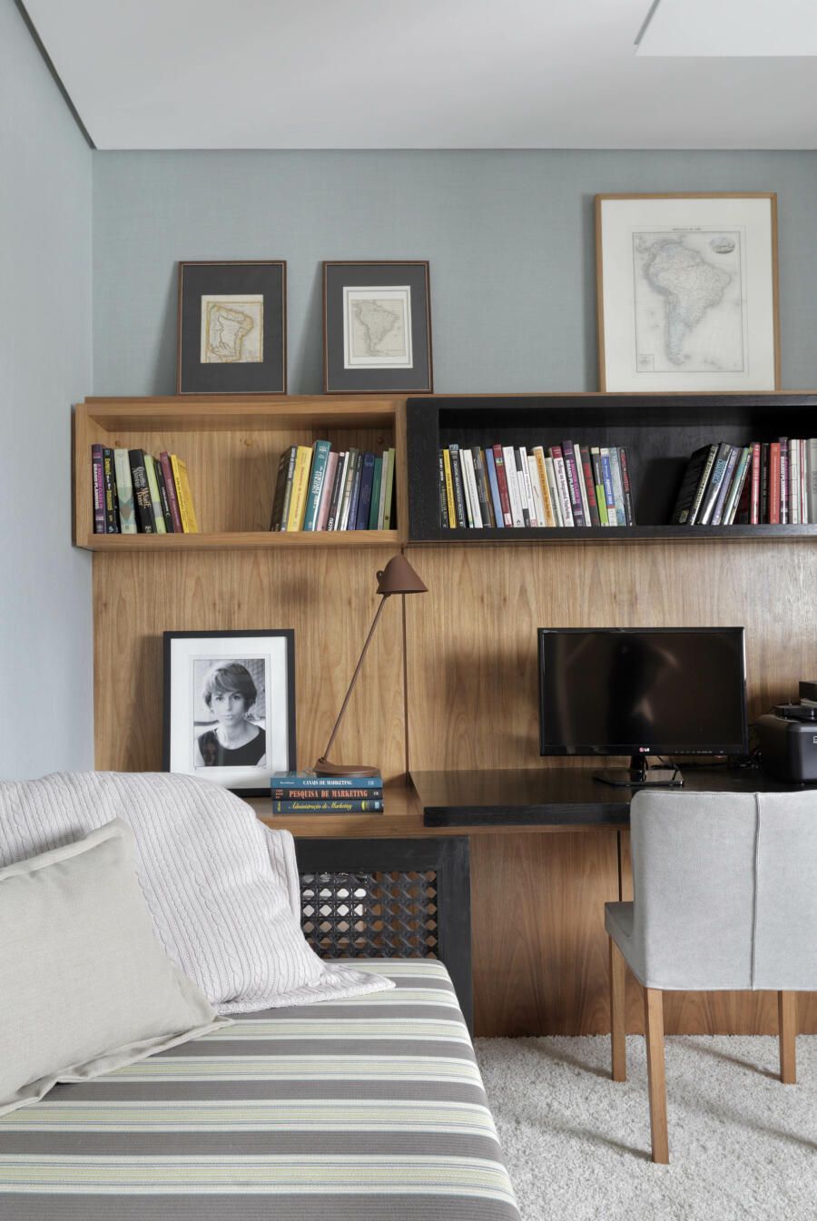Houve planejamento para que todos os elementos do projeto se adequassem a seus respectivos espaços, inclusive as peças de mobiliário.