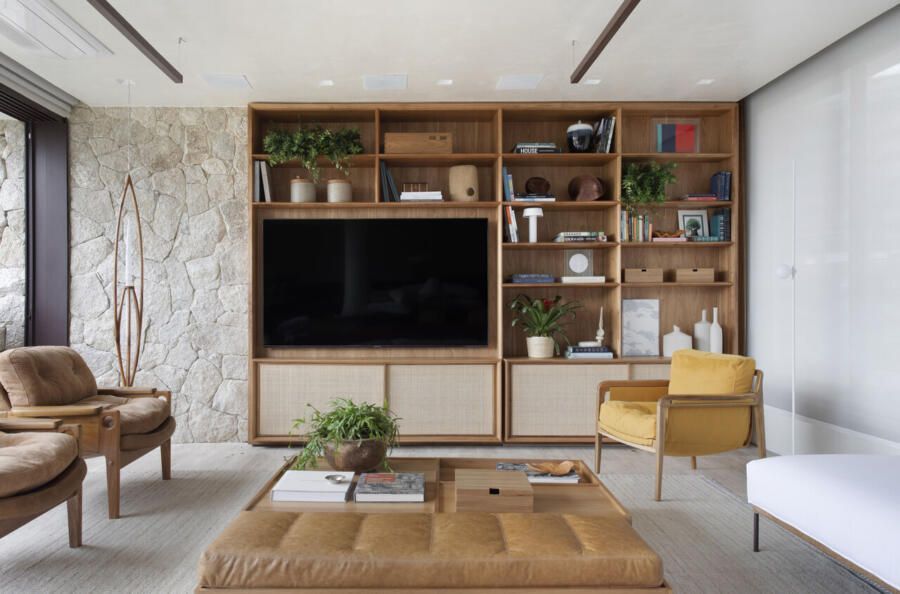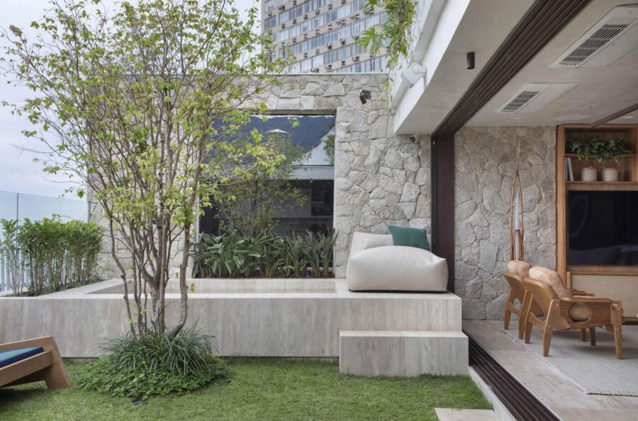 Uma cobertura duplex com área gourmet e cara de casa. Esse foi o pedido dos clientes ao escritório Escala Arquitetura, que assina o projeto de 260m² no Leblon, Rio de Janeiro.