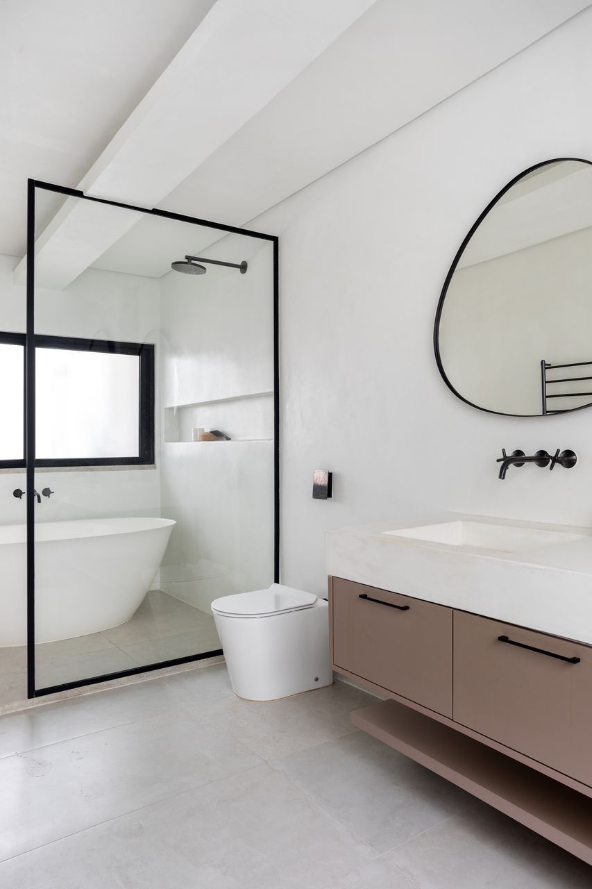 Já a planta do imóvel foi completamente repensada. A suíte master ganhou um closet espaçoso no lugar da antiga cozinha e área de serviço. Já a nova cozinha foi realocada para integrar-se à sala de jantar. Na área externa, a piscina passou do primeiro para o segundo pavimento, ampliando o espaço de convivência e criando uma nova área de spa.