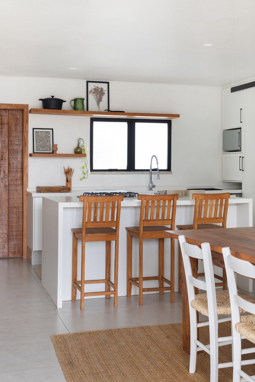 Quem topou o desafio de transformar o lar foi o arquiteto Rodrigo Cardoso, do escritório House in Rio Arquitetura. Foi um ano de obras e decoração com a proposta de eliminar quinas vivas, adotar o cimento queimado branco como base e investir em móveis de madeira rústica. O resultado é um lar aconchegante e pensado nos mínimos detalhes.