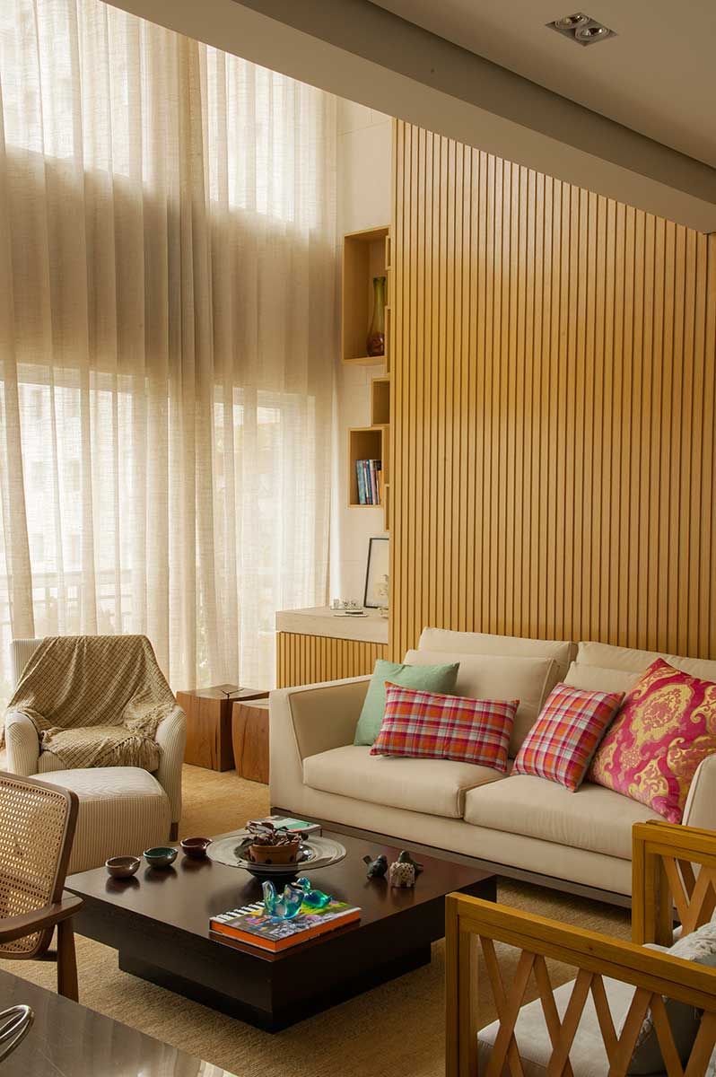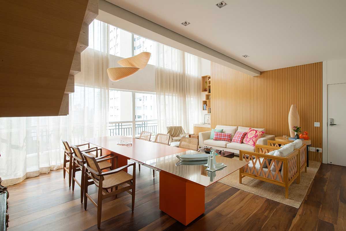 O projeto desse apê foi desenvolvido pelo escritório Barbara & Purchio para que tivesse muita vida e cores sem perder o conforto. Além das características rústicas e contemporâneas e dos detalhes lúdicos, que conferem personalidade ao ambiente.