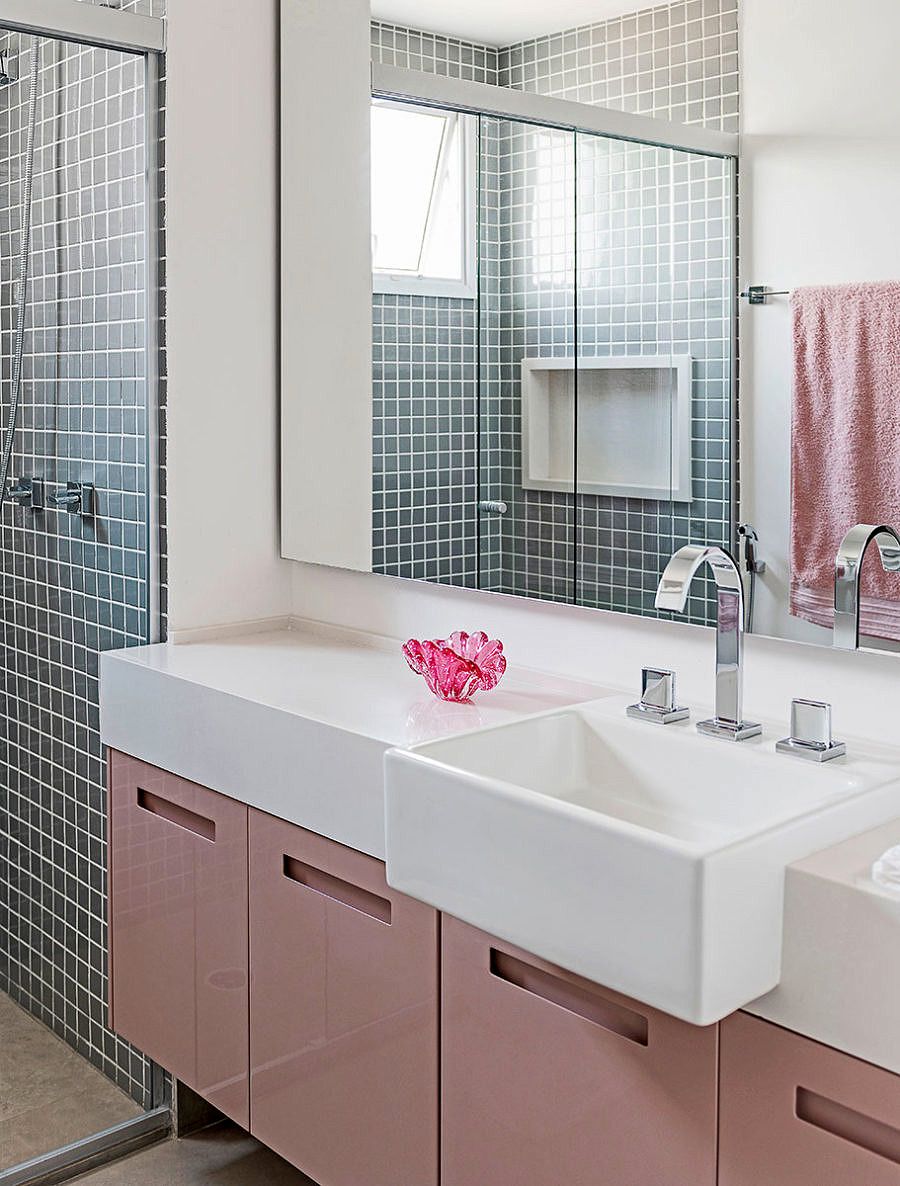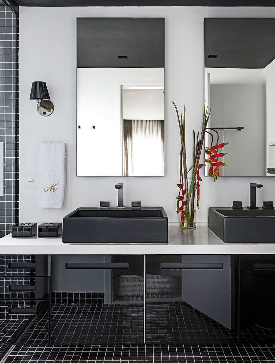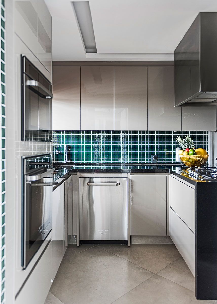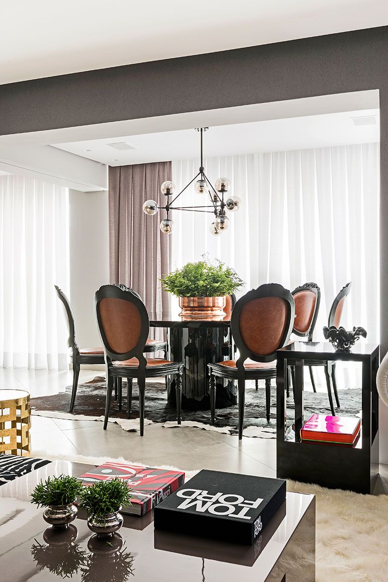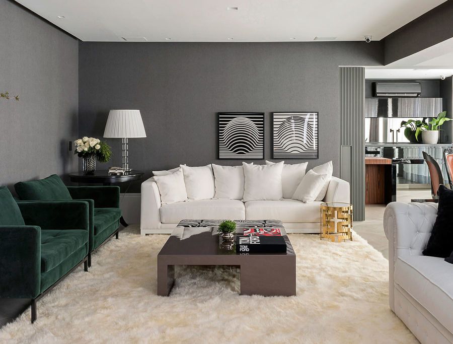 Uma das dicas é o uso de cores neutras como base, como o cinza, o branco e o preto, tornando o apartamento atemporal, acompanhada por toques de cores, como o laranja e o verde esmeralda, que trouxeram personalidade.