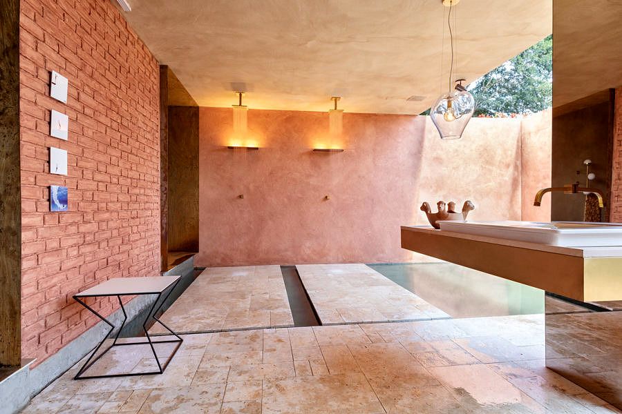 É no natural que o escritório encontrou os pilares da arquitetura desde refúgio. O espaço torna-se um abrigo, um lugar espiritualizado longe do caos, no qual o contato com os elementos da natureza são indispensáveis para o momento de introspecção.