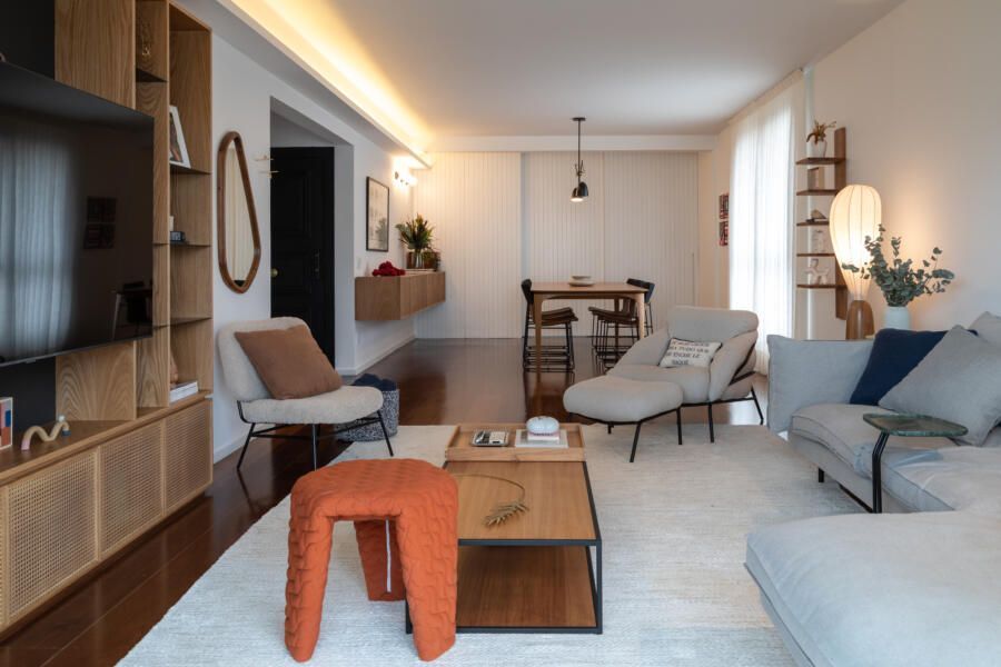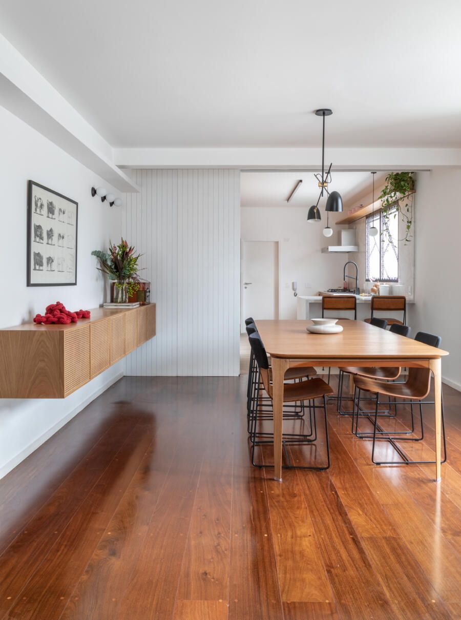 Uma reforma para deixar o apartamento herdado com dois cômodos separados para home office, dois closets e possibilidade de integrar e isolar a cozinha da sala. Este foi o pedido dos moradores recém-casados ao escritório Casa33 Arquitetura, que assina o projeto “Jacutinga”.