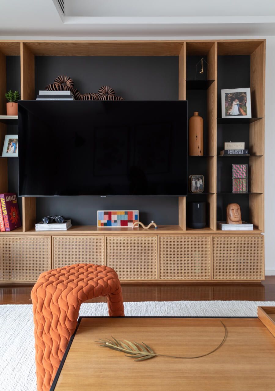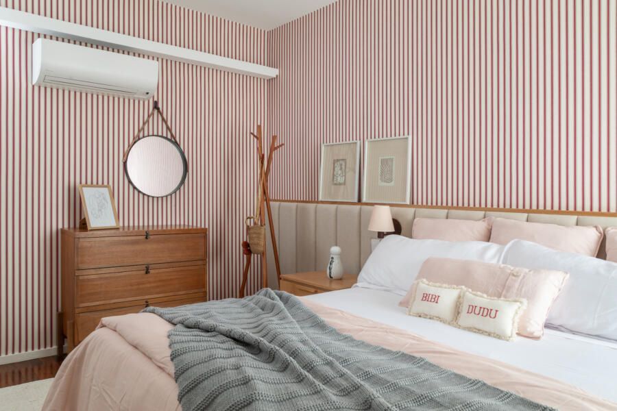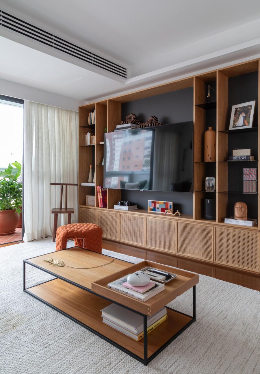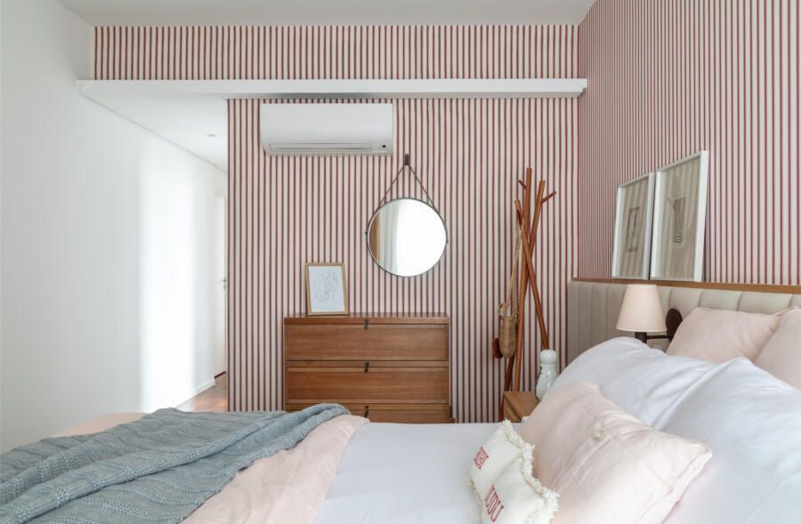 Como todo apartamento que passa por uma grande reforma, algumas dificuldades surgiram no decorrer do projeto. Dentre elas, o Casa33 Arquitetura explica como conseguiu solucionar a implementação do ar-condicionado no apartamento, outro desejo dos clientes.