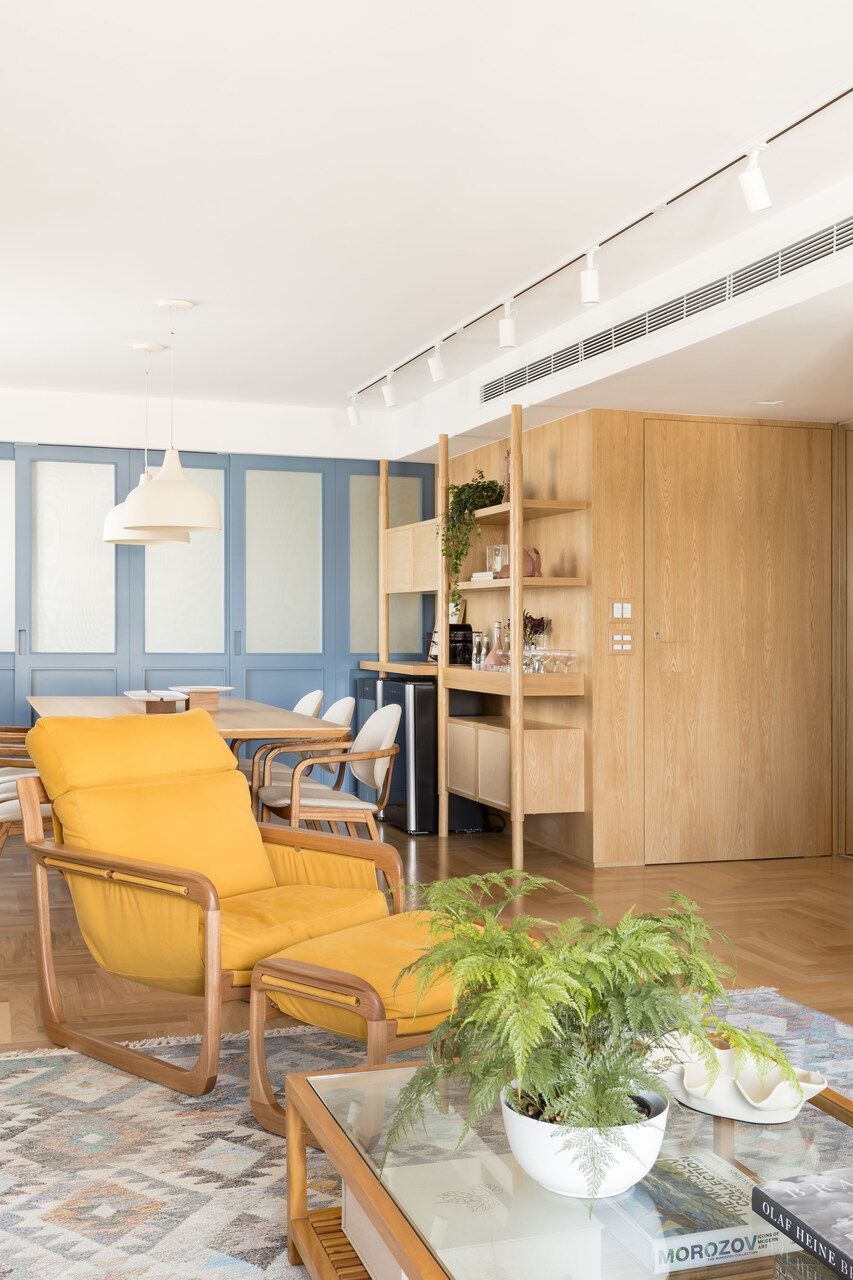 No geral, os clientes pediram um lar aconchegante e vibrante, com cara de casa, além de madeira clara e toques de cor na marcenaria e na decoração.