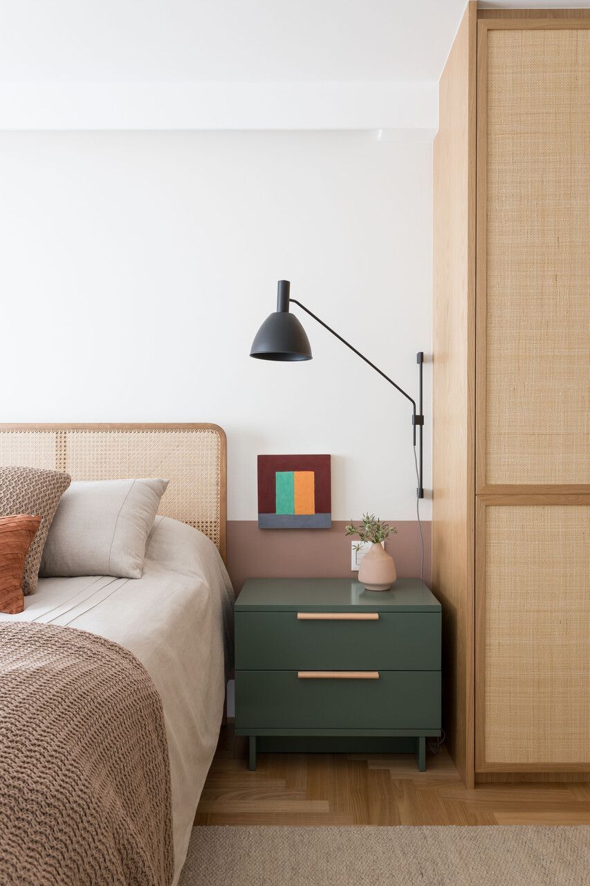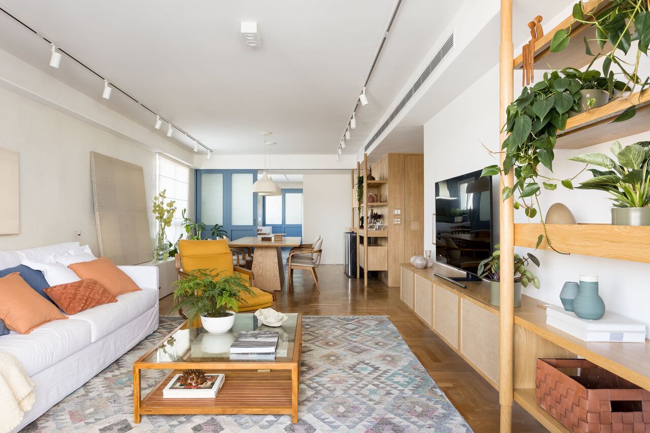 No geral, os clientes pediram um lar aconchegante e vibrante, com cara de casa, além de madeira clara e toques de cor na marcenaria e na decoração.