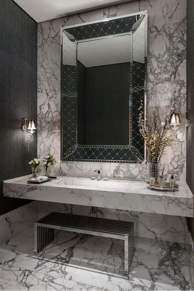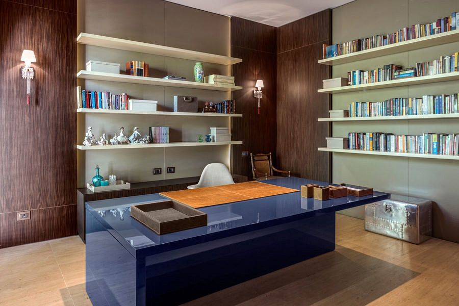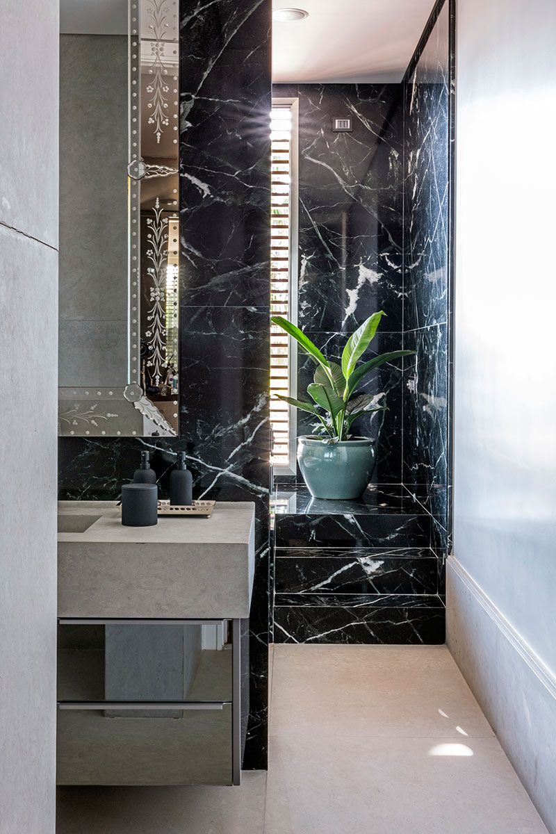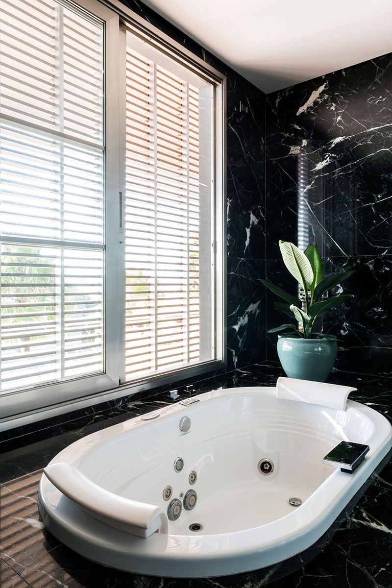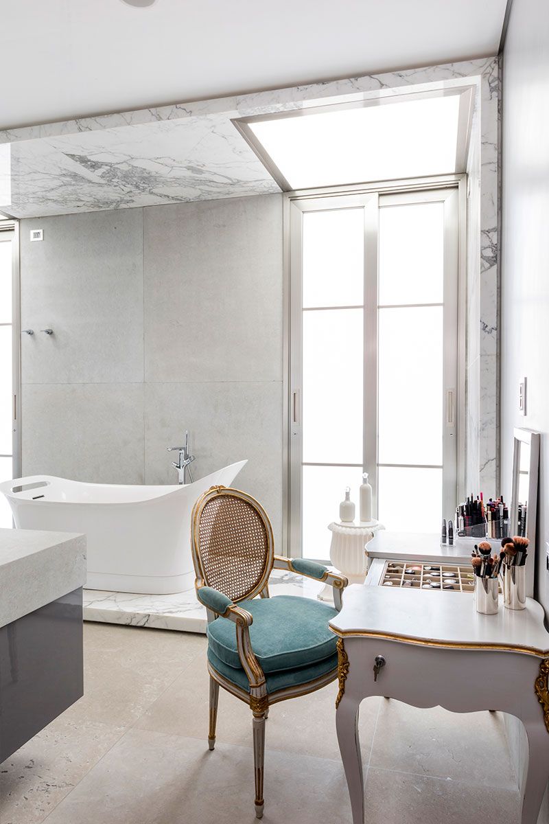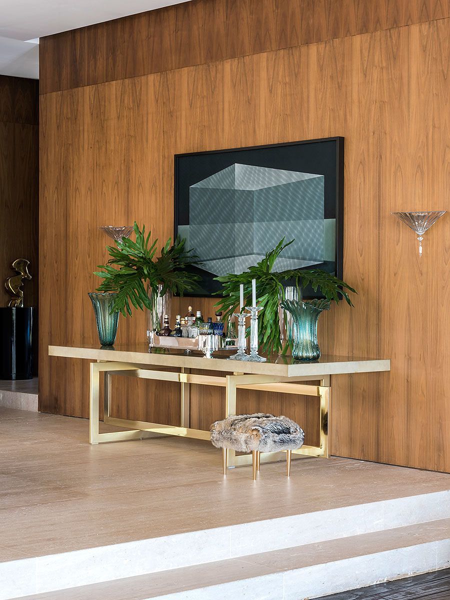 Na área dos quartos, todos os pisos foram revestidos em madeira e no quarto da suíte máster da filha, o piso recebeu uma ebanização preta. A casa tem um mix de arquitetura contemporânea, com linhas retas, volumes lisos, blocos e frisos, e em alguns pontos, da decoração e, principalmente, nas paredes do quarto da filha, alguns elementos clássicos, como as boiseries, que são molduras em poliuretano, dando um toque mais clássico.