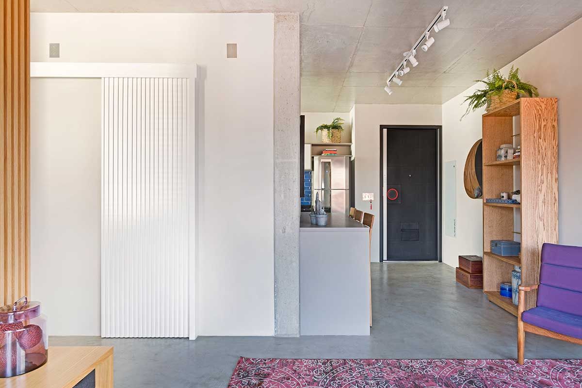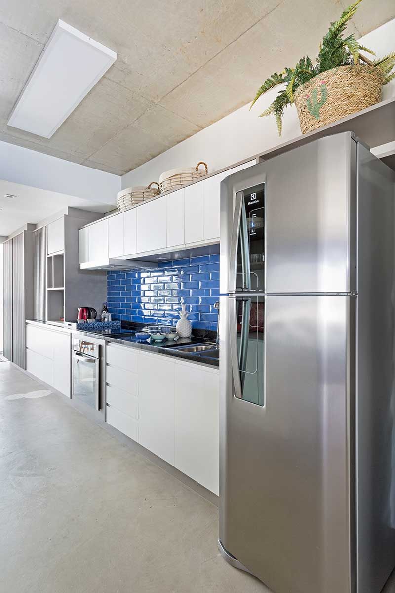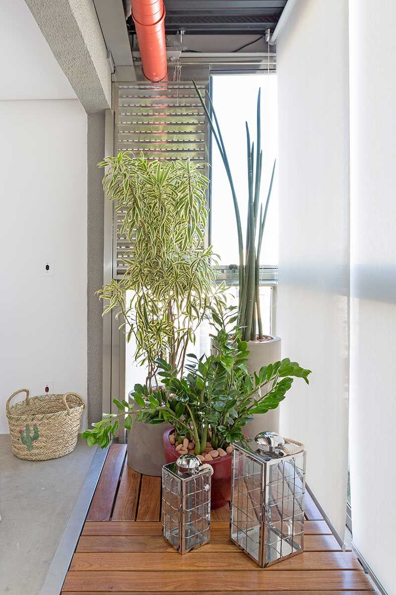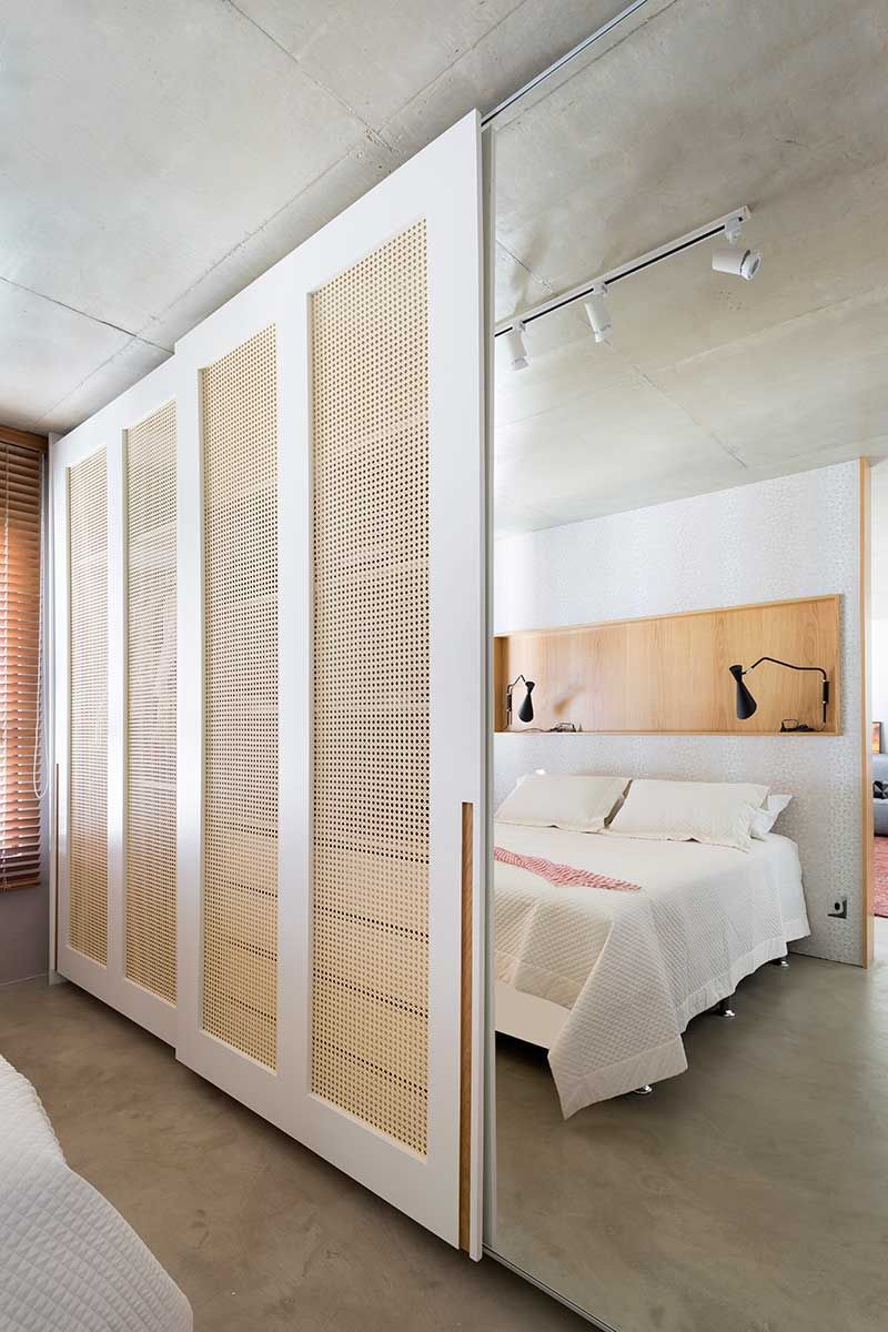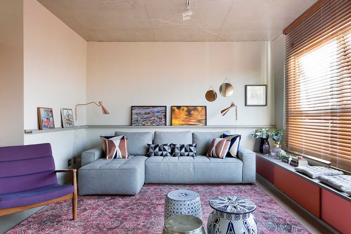 O estilo do imóvel é mais industrial (piso em cimento queimado, paredes em concreto) e a cliente buscava um ambiente confortável (um oásis em meio a cidade). Por isso, o escritório optou por trazer bastante madeira para aquecer e dar um contraponto ao estilo do imóvel.