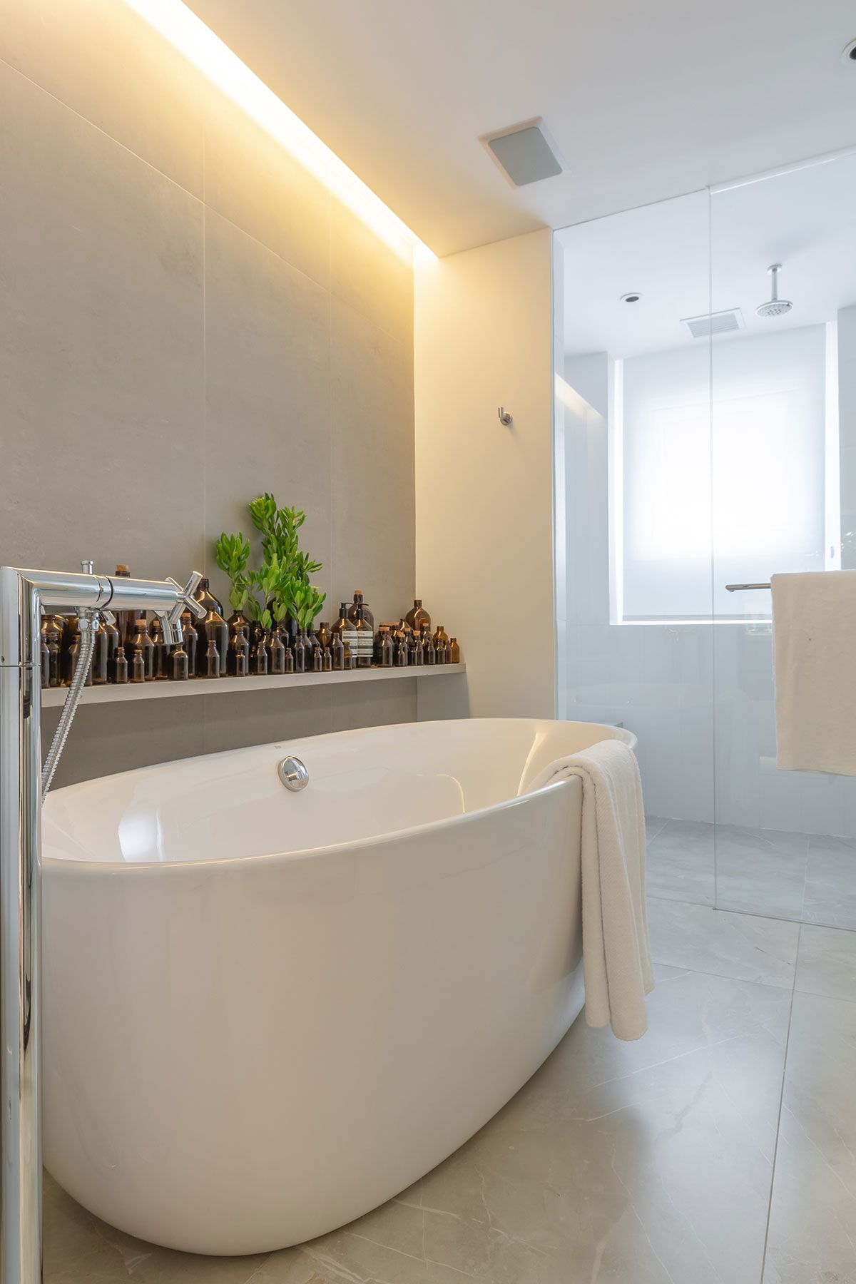 O principal desafio do escritório foi criar espaços que fossem amplos, confortáveis e usáveis. A cozinha, por exemplo, precisava ser espaçosa para acomodar um buffet para dias de festas. A suíte precisava acomodar as roupas no closet sem entulhar e o banho x spa tinha que ser um espaço de relaxamento e conforto, para desligar a mente do dia a dia.