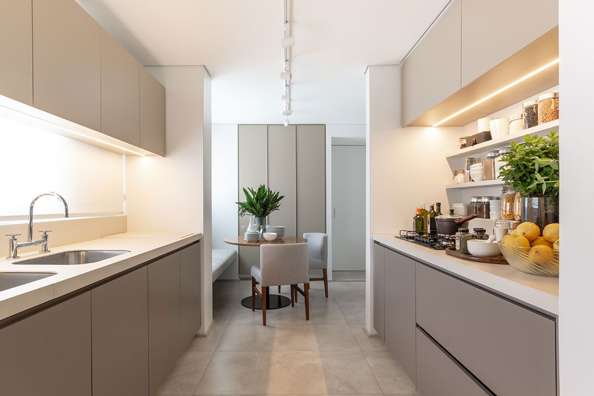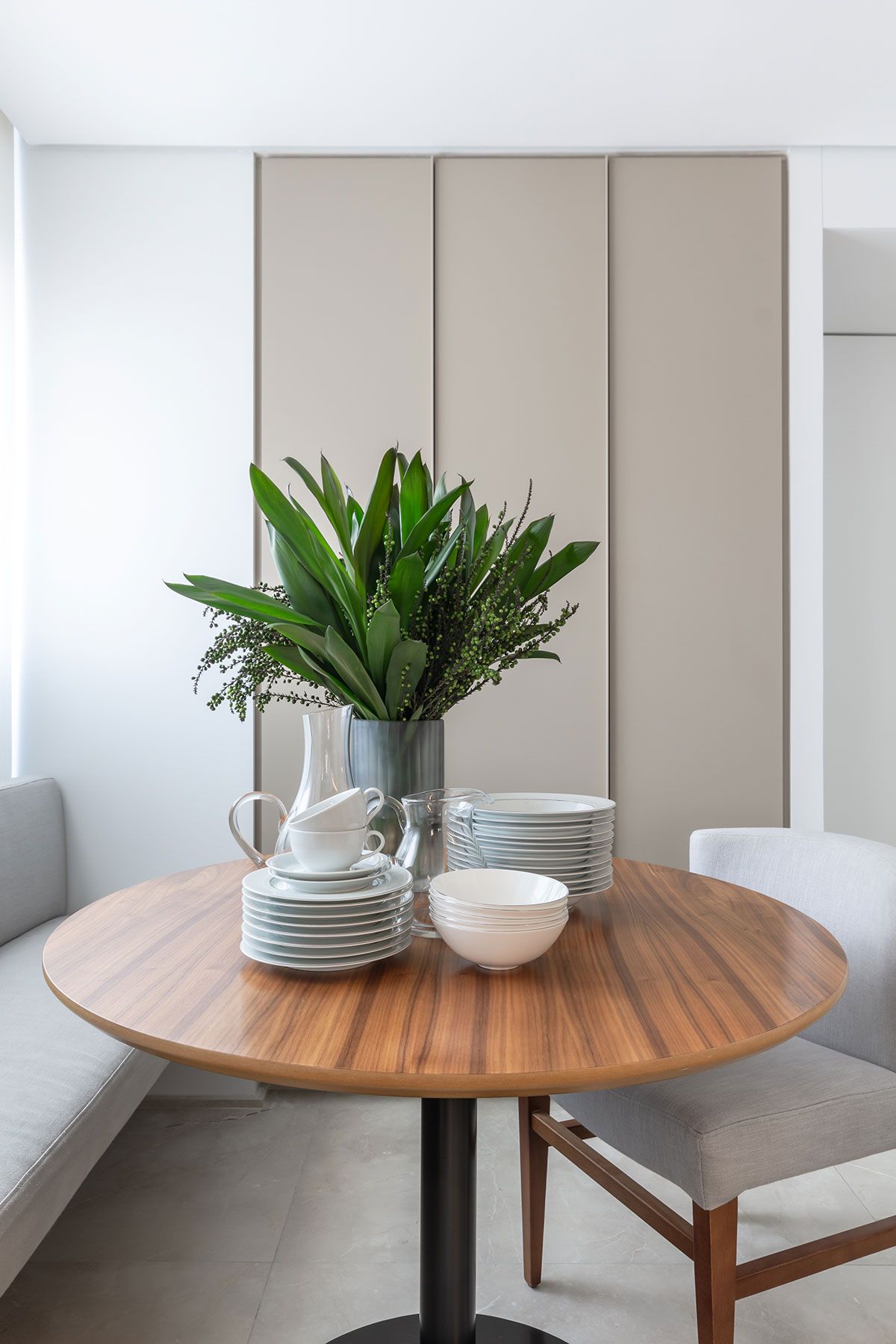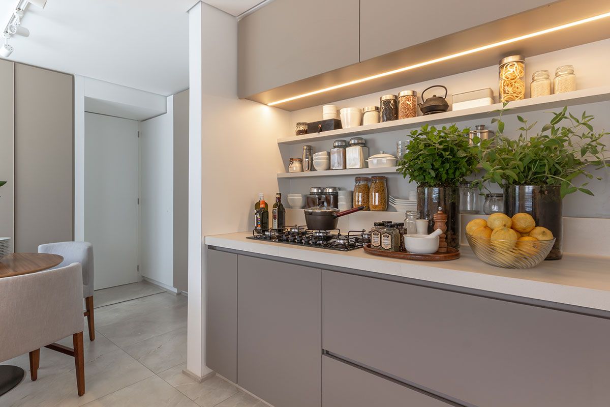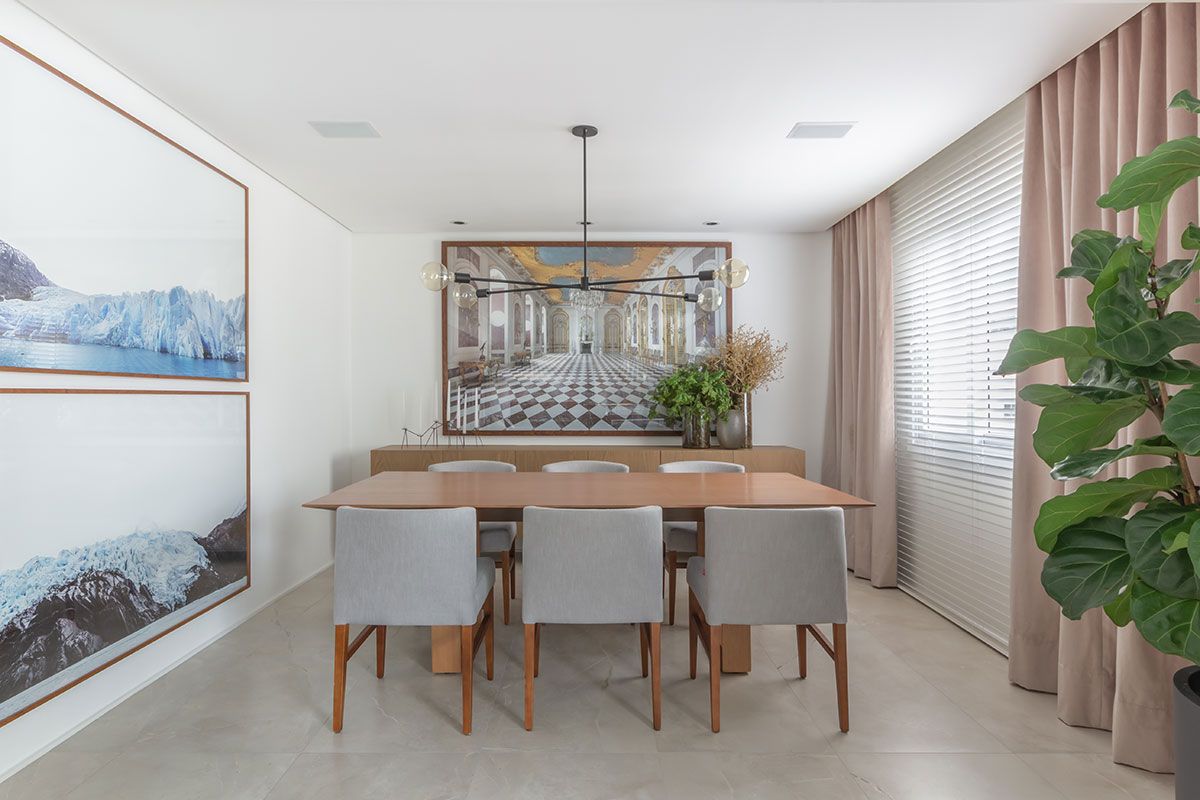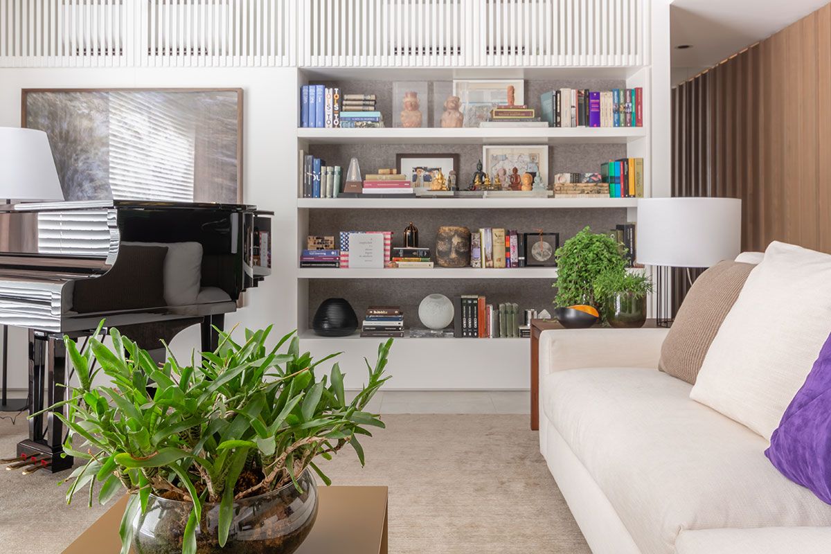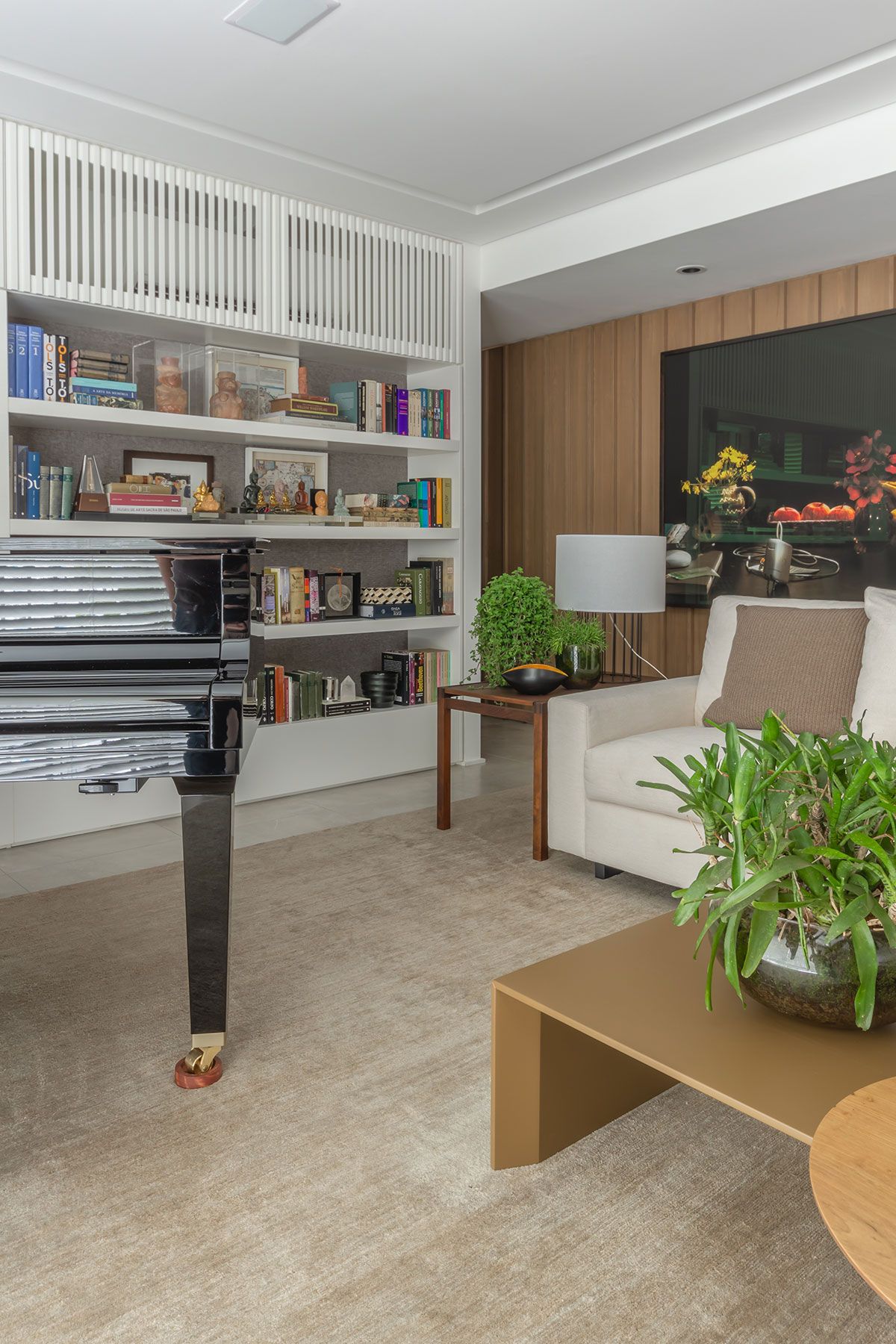 Os moradores procuraram o escritório Bruno Gap Arquitetura, pois desejavam que o apartamento de 200m² fosse confortável, que ele pudesse receber convidados para tocar piano na sala, participar de almoços ou jantares em um ambiente convidativo e agradável.