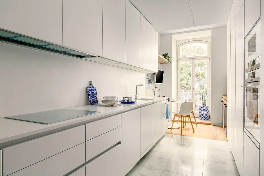 O imóvel de 194m², localizado em um prédio antigo revitalizado, possui três suítes, além da área social composta por sala, cozinha e lavabo bem compartimentados e banhados por privilegiada luz natural. Os proprietários, que chegaram à dupla através de amigos que também possuem residência em Portugal e realizaram projetos com o escritório, deram carta branca às arquitetas, pedindo que o apartamento primasse pelo conforto e apresentasse pontos de cor e algum detalhe que remetesse ao estilo português.