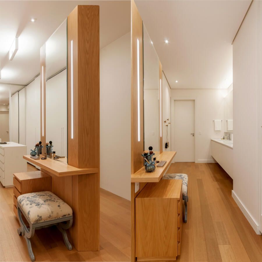 “Com um olhar mais atual, gostamos de projetar esse apoio para a cama com 1,30m de altura.”