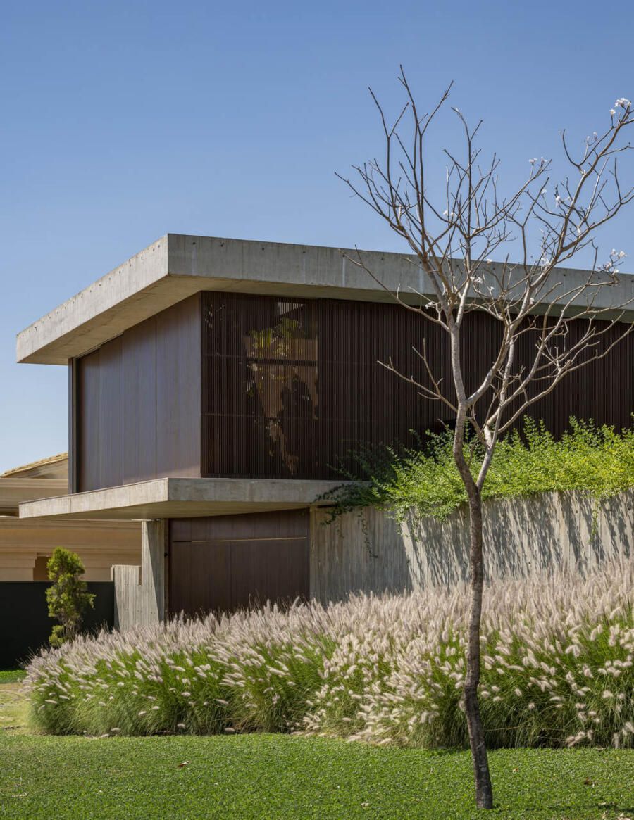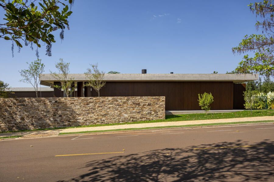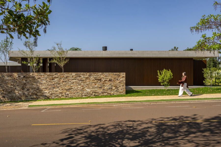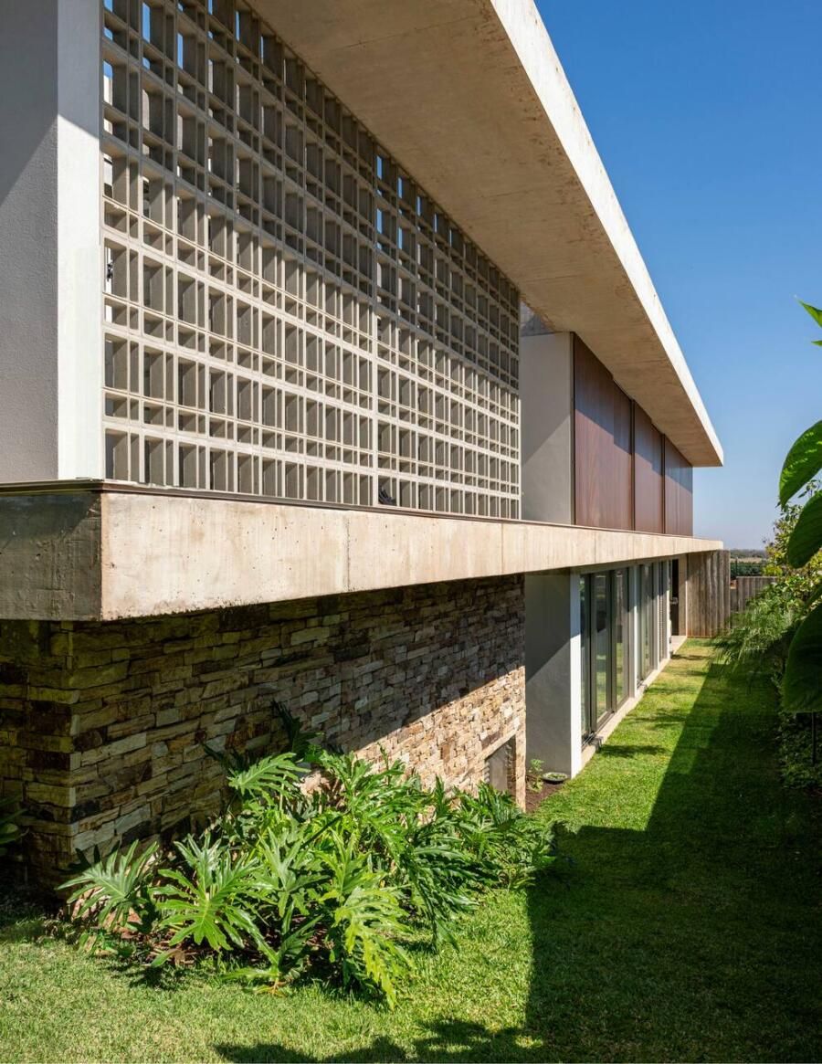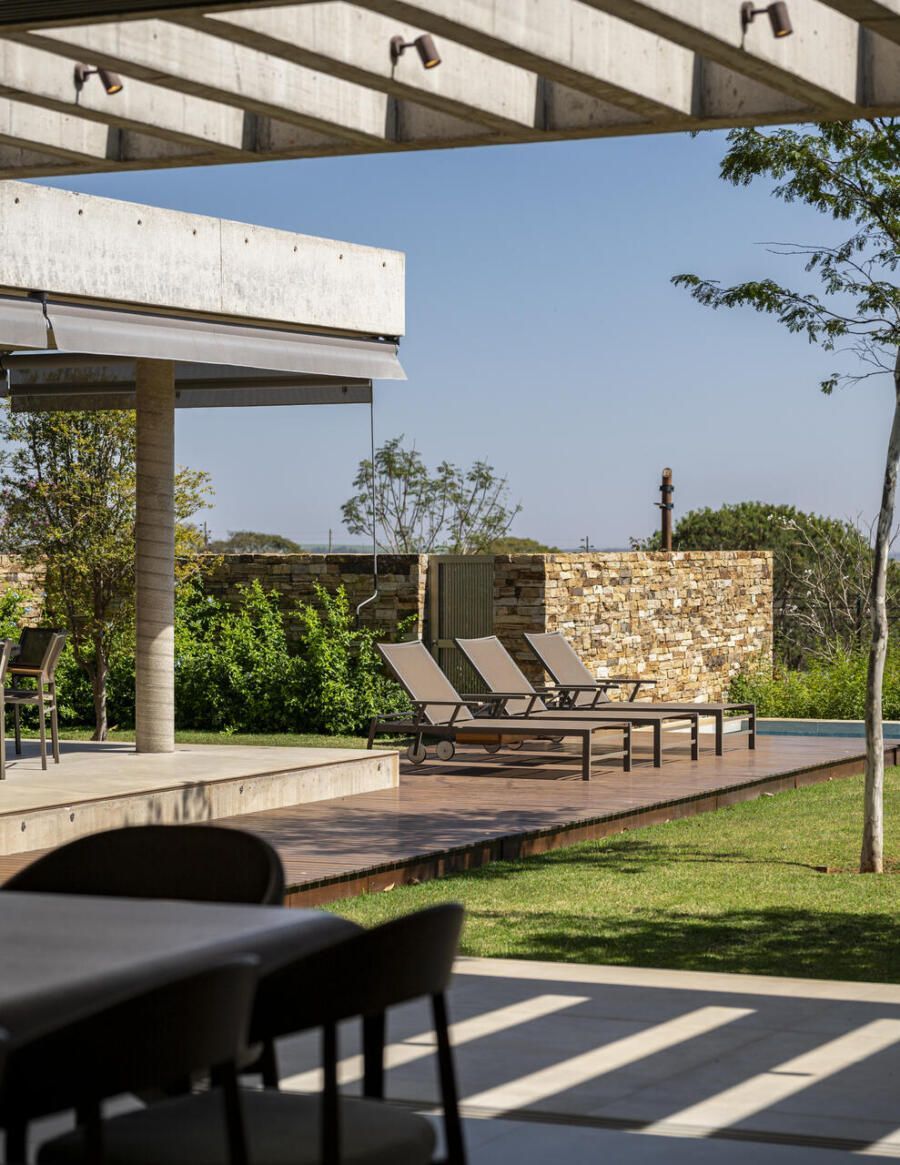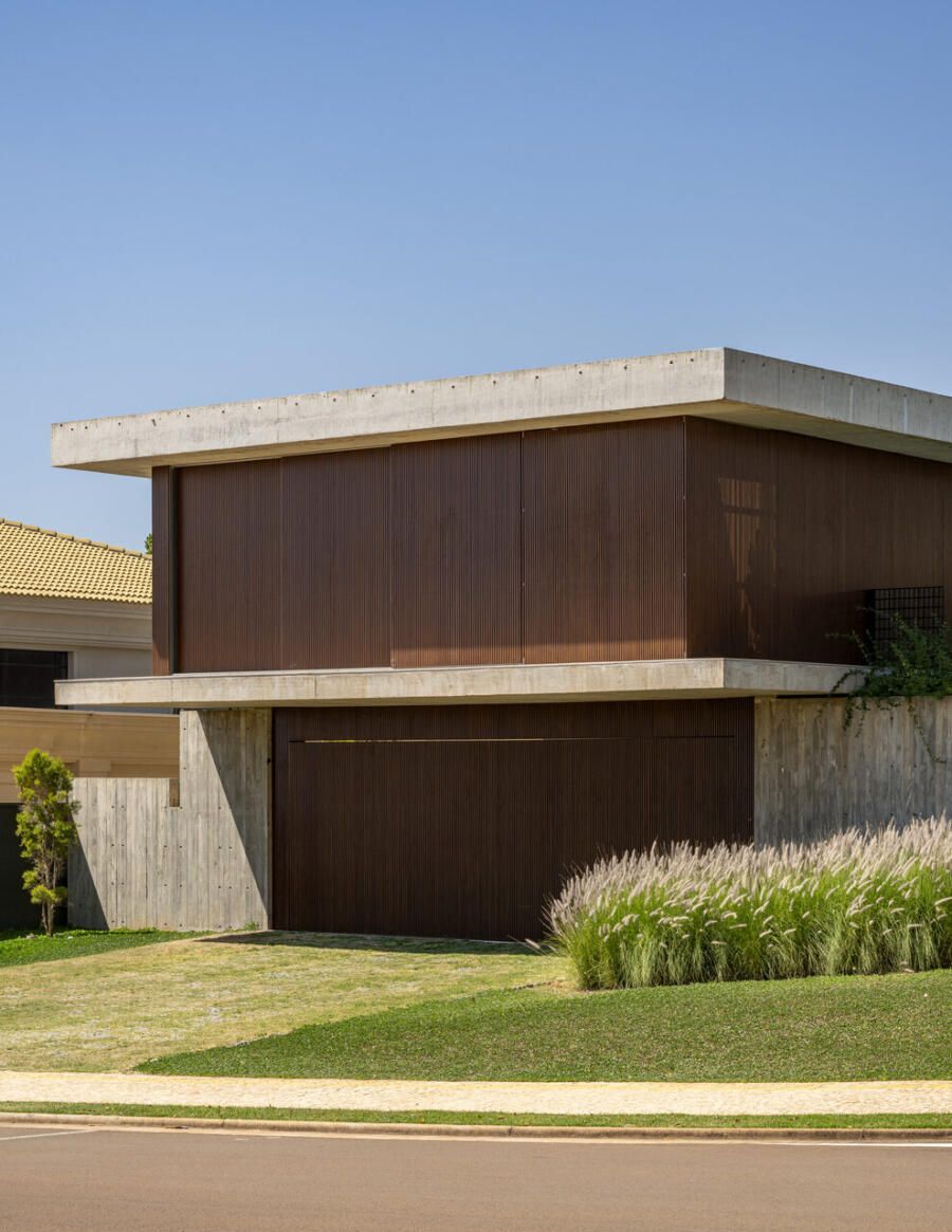 “A implantação do projeto representou um dos principais desafios. O terreno, tem uma vista privilegiada e era marcado por um aclive acentuado, exigia uma solução que permitisse à residência acomodar-se ao lote com naturalidade, evitando qualquer imposição sobre a paisagem. Ao mesmo tempo, buscamos garantir privacidade, sobretudo para as áreas sociais.”