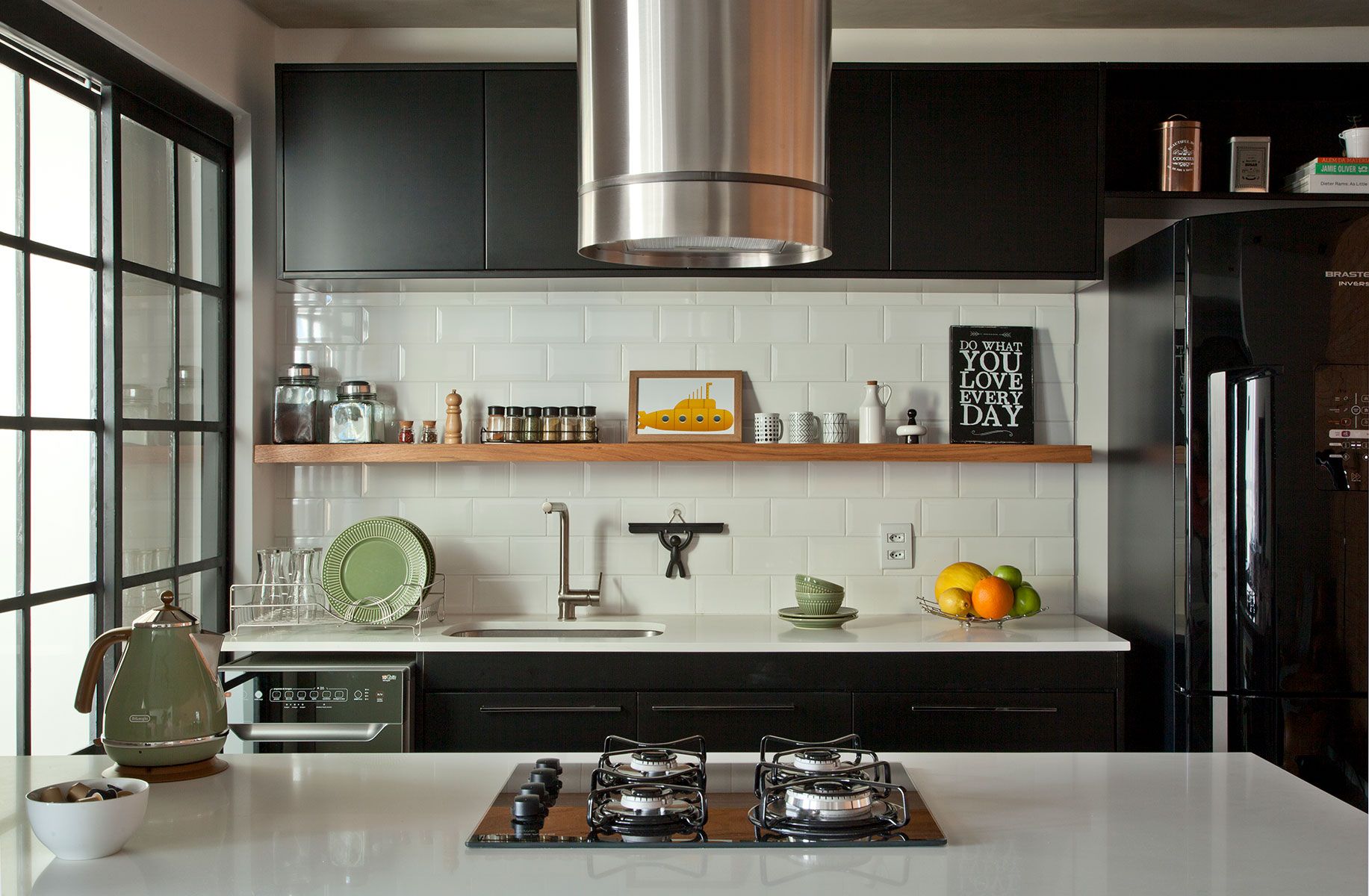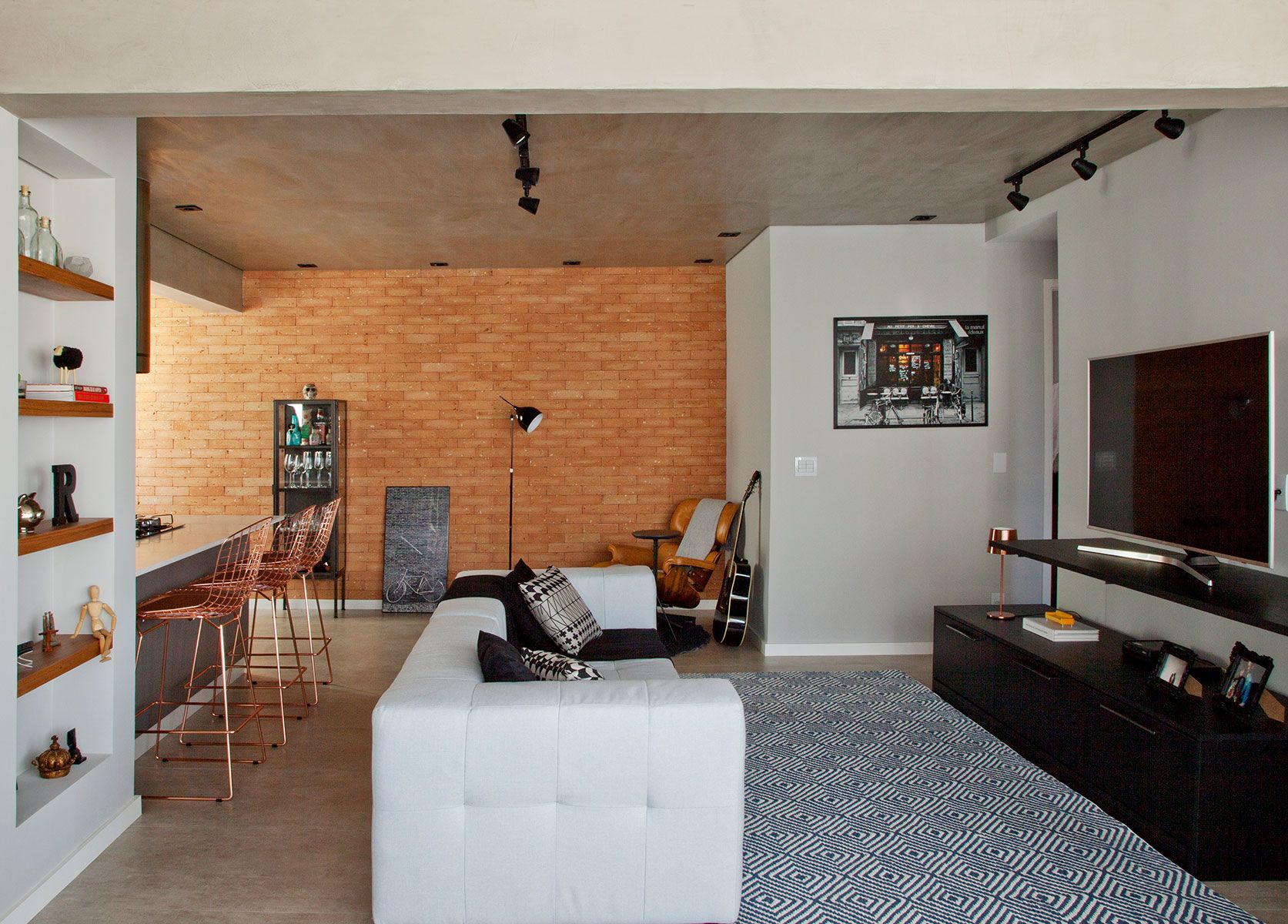 Os clientes do escritório Bruno Moraes Arquitetura queriam um projeto contemporâneo com toque retrô e elementos industriais, e claro, que tivesse a cara deles.