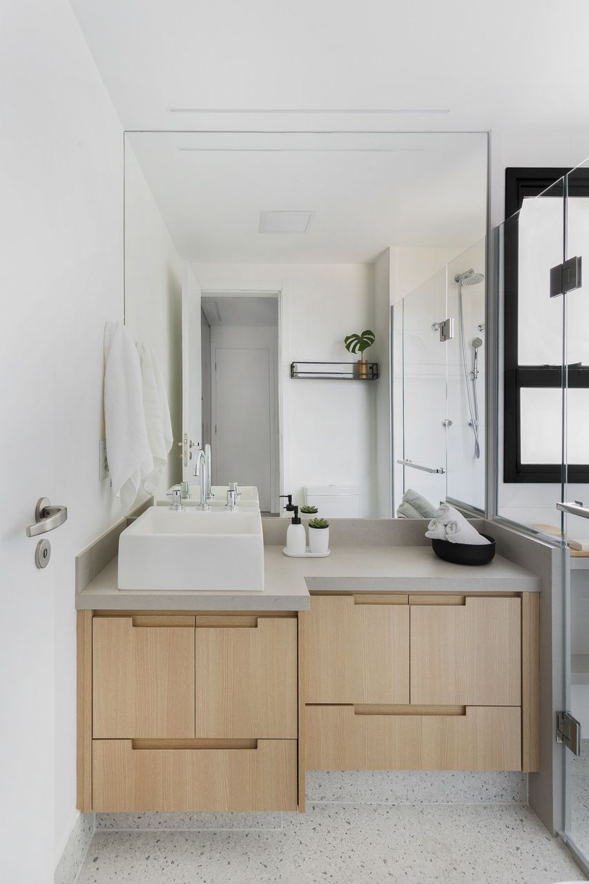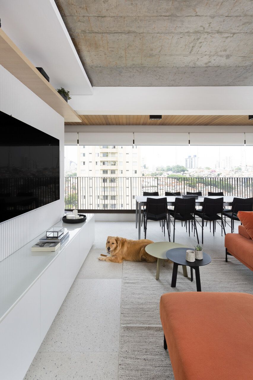 Um apartamento contemporâneo, prático e atemporal. Esse foi o pedido dos clientes, uma família com um filho adulto e uma Golden Retriever, ao escritório Degradê Arquitetura, que assina o projeto.