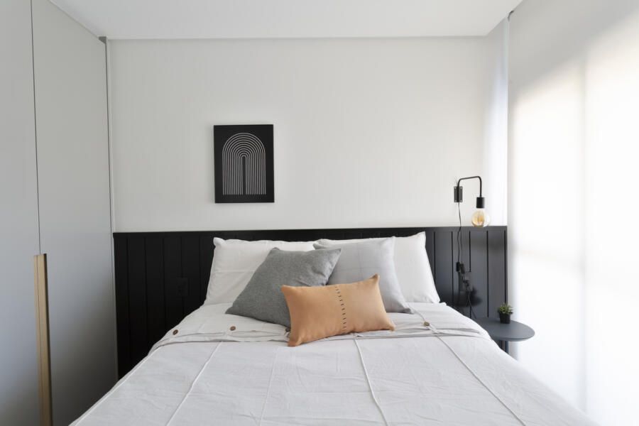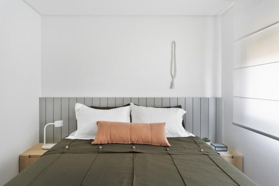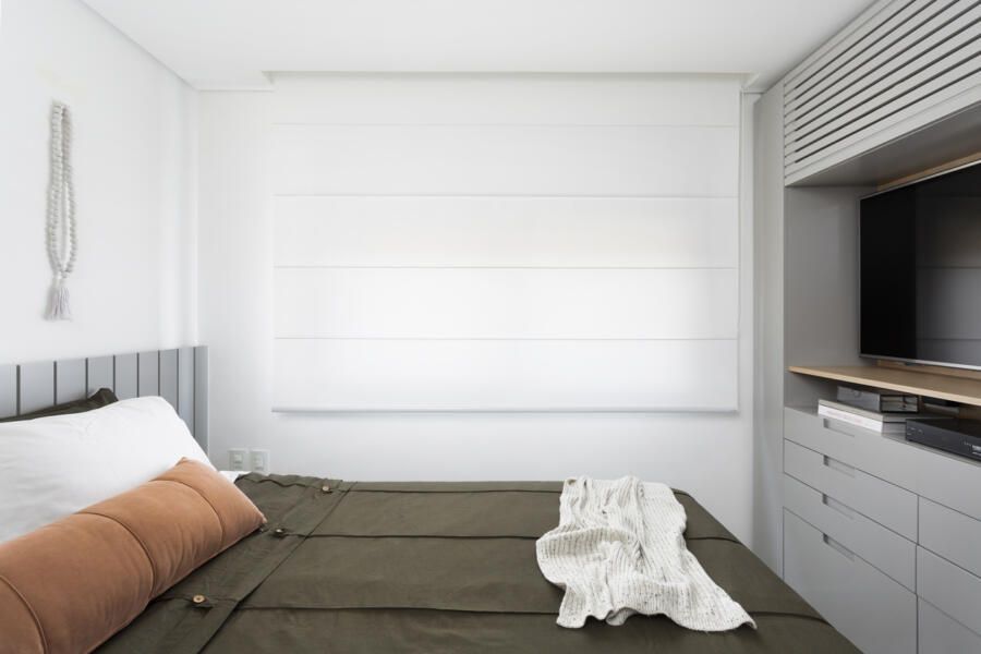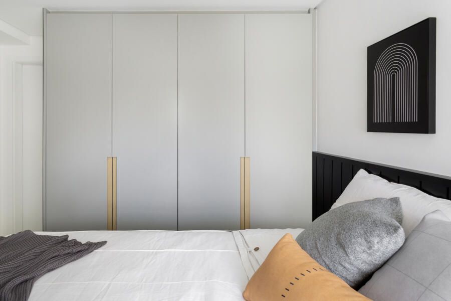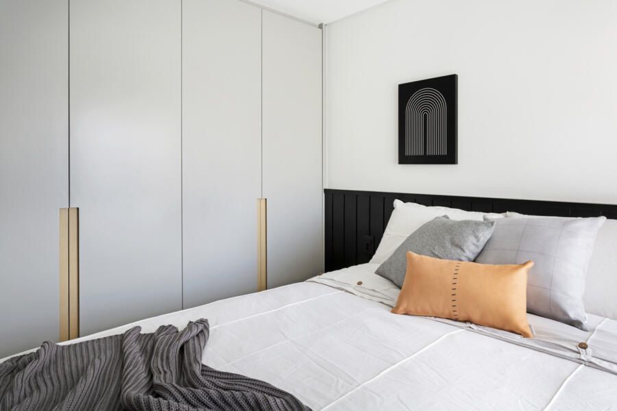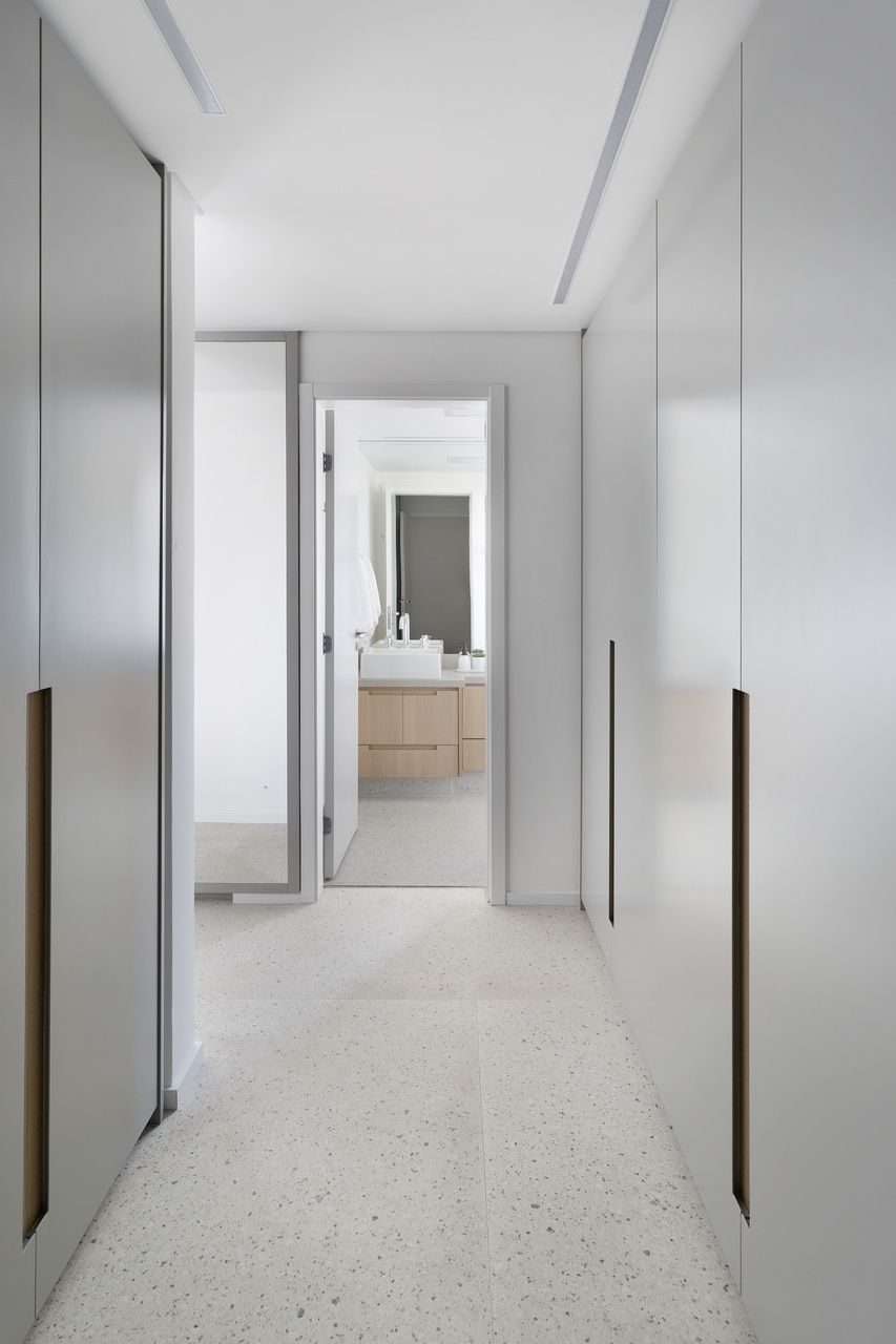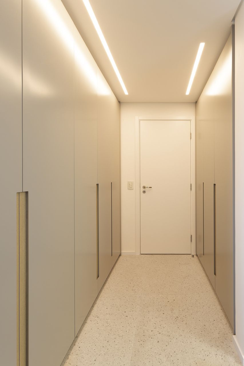 “Uma das exigências mais importantes dos clientes para o projeto foi a criação de muitos armários para acomodar a mudança da família, que saiu de um apartamento de 200m² para morar nesse novo espaço com 142m².”