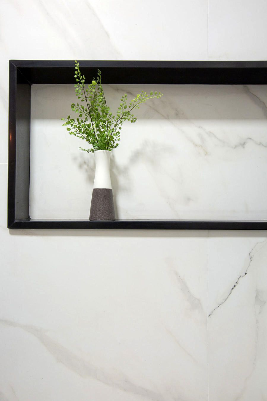 Como ela gosta de receber, era preciso que o banheiro social tivesse cara de lavabo. Já o quarto de hóspedes, foi pensado para ser um quarto para meditar, e ter a sua penteadeira para ser um quarto de se vestir. A suíte prática e feminina.