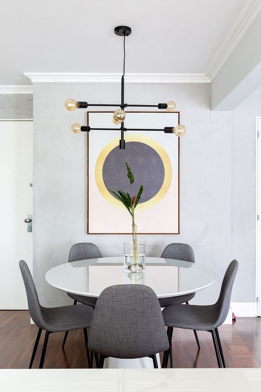O desafio do projeto foi conseguir fazer uma cozinha integrada sem perder o espaço da sala de jantar. Para isso foi preciso embutir a geladeira dentro da área de serviço e retirar o banheiro de serviço.