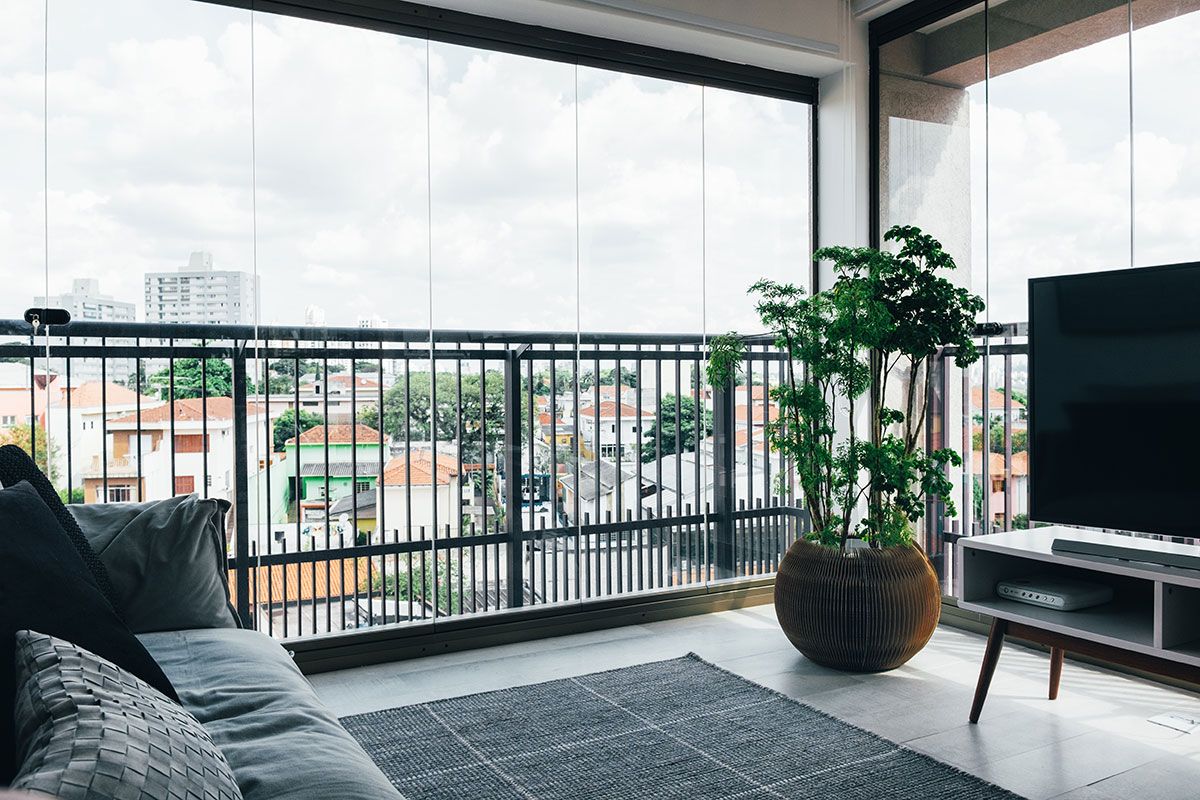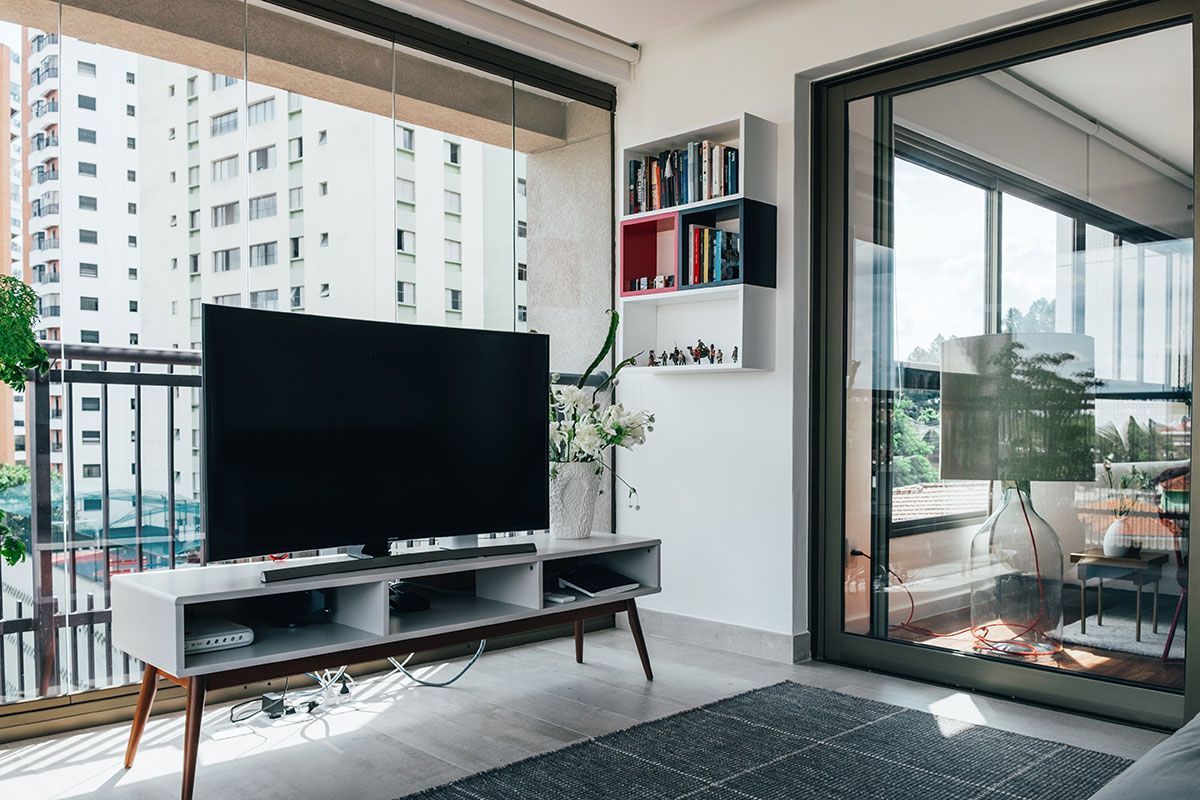 Sobre a área social, ela queria um espaço de tv separado da área de estar.
