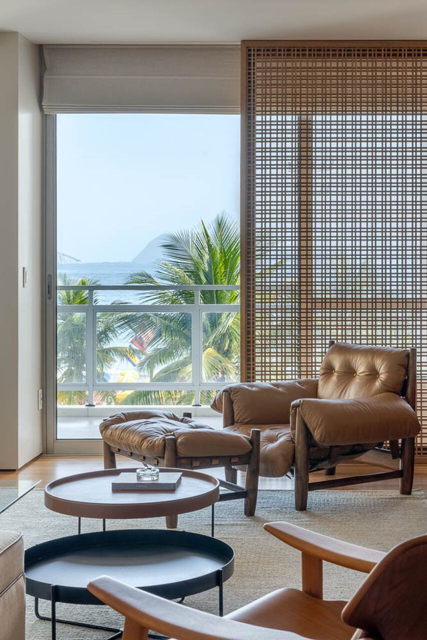 Este apartamento com vista para o mar, em Ipanema, na Zona Sul do Rio de Janeiro, passou por uma mudança completa na decoração assinada pelo Mauricio Nóbrega. O imóvel já havia sido reformado, mas o estilo original não combinava com os novos moradores — um casal jovem com um bebê pequeno que adora receber visitas.