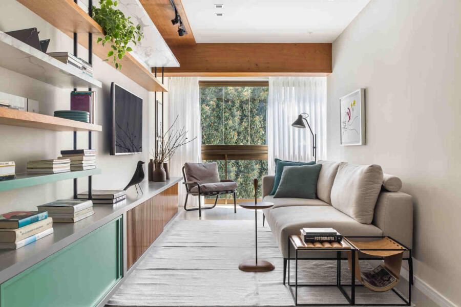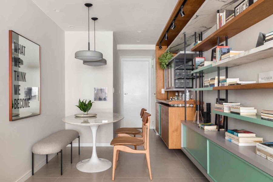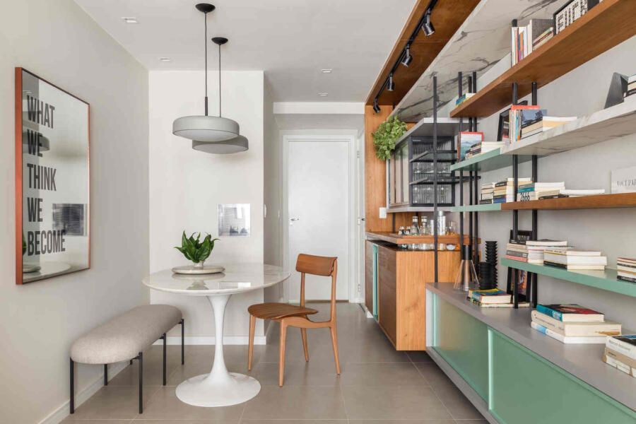 Um imóvel recém-entregue pela construtora que fosse pensado do zero, tivesse cores vivas e otimizasse a metragem enxuta. Esse era o desejo do morador quando solicitou uma reforma ao arquiteto Rafael Ramos neste apartamento na Tijuca, Rio de Janeiro.