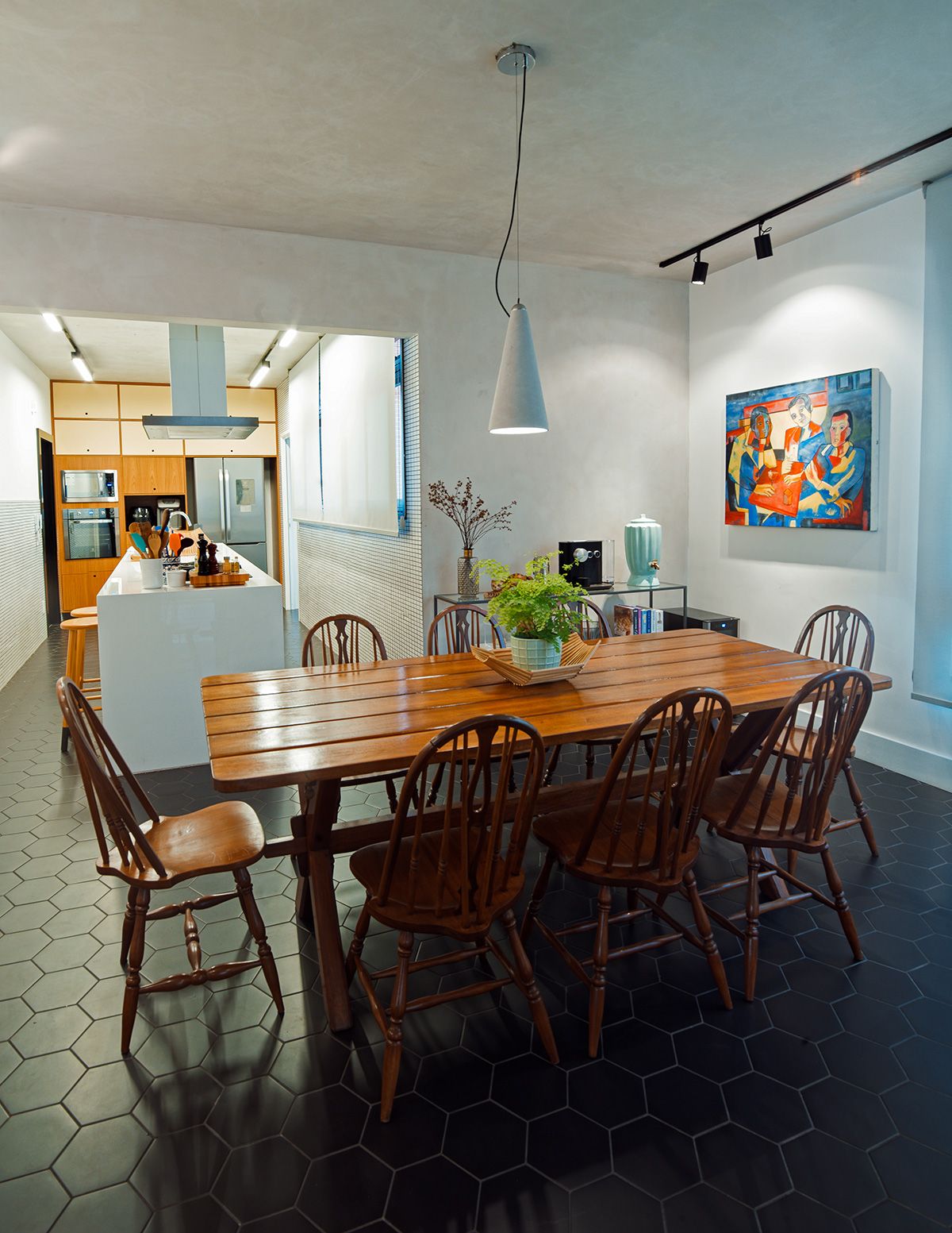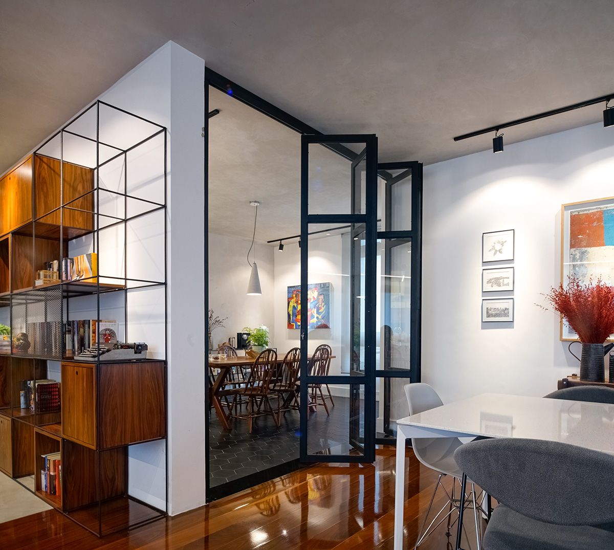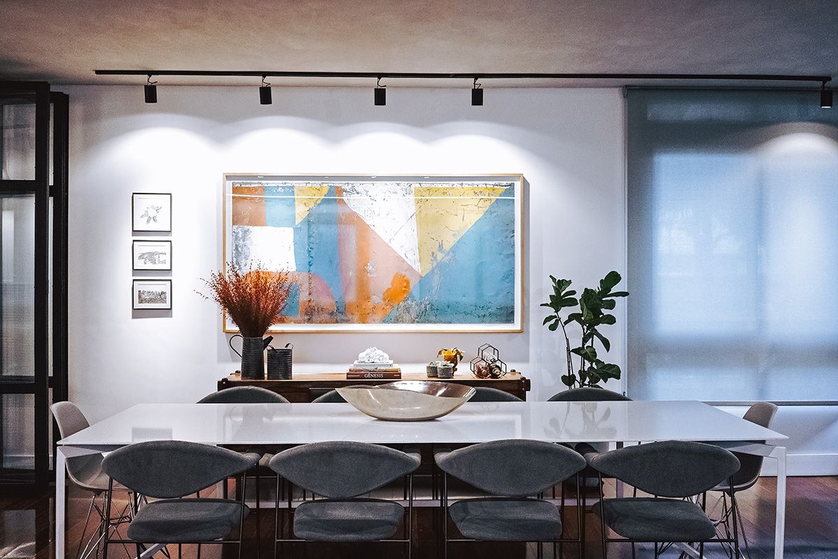 O trabalho experimentação, amostragem e garimpo resultou em uma morada bem personalizada e autêntica. Os espaços foram integrados com uma base neutra para receber as histórias dos clientes; referências, objetos, obras de arte, coleções e móveis herdados, os responsáveis pela sensação de pertencimento e ligação à, mais que uma casa, um lar.