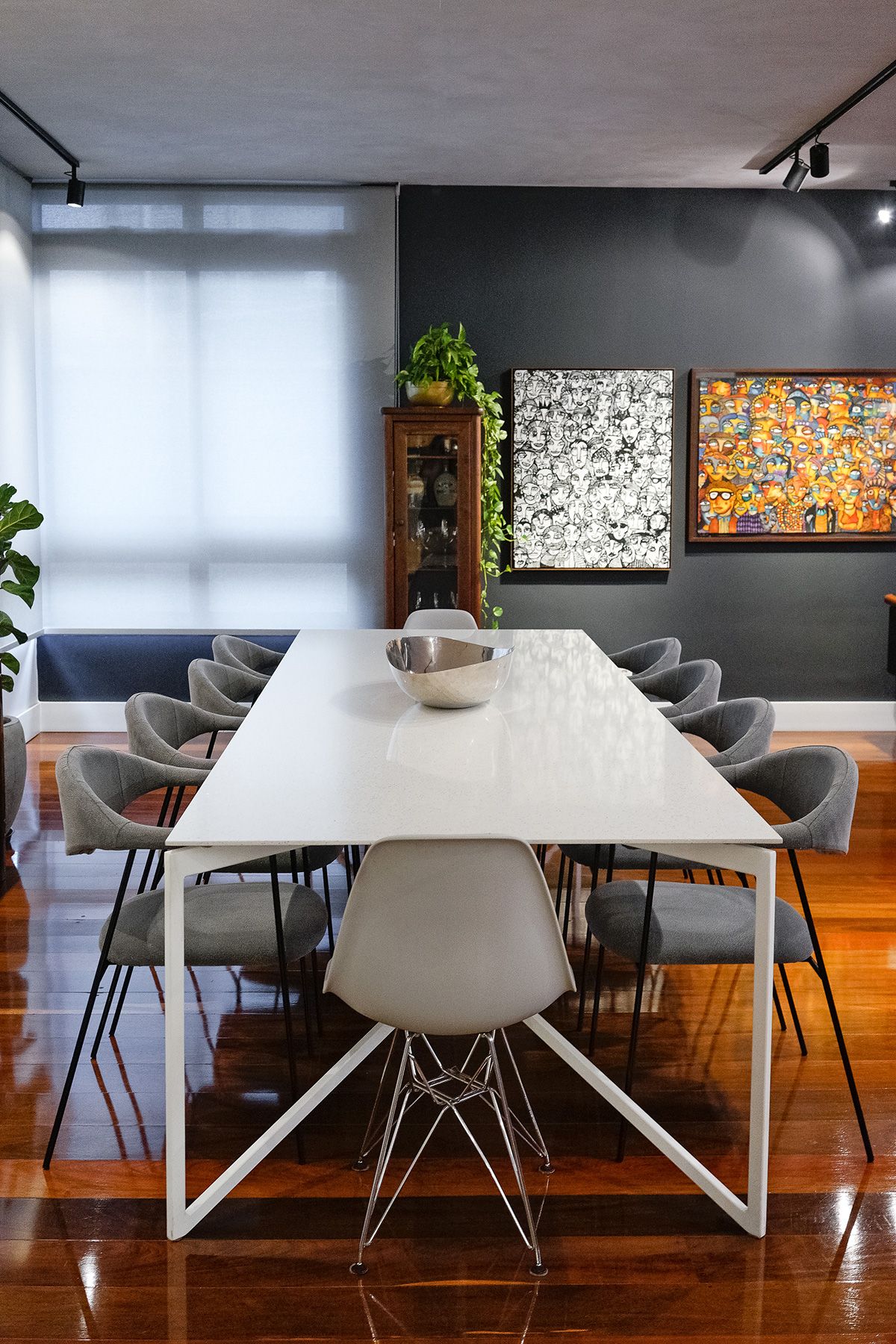 Casal jovem, colecionadores de histórias e admiradores do design brasileiro: esses são os moradores desse apartamento no bairro Sion, assinado pelo Cosi Arquitetura. O projeto tinha suas especificações, e a busca no mercado por fornecedores que atendessem à demanda de materiais, acabamentos e peças não foi tão simples, já que exigiram bastante pesquisa.