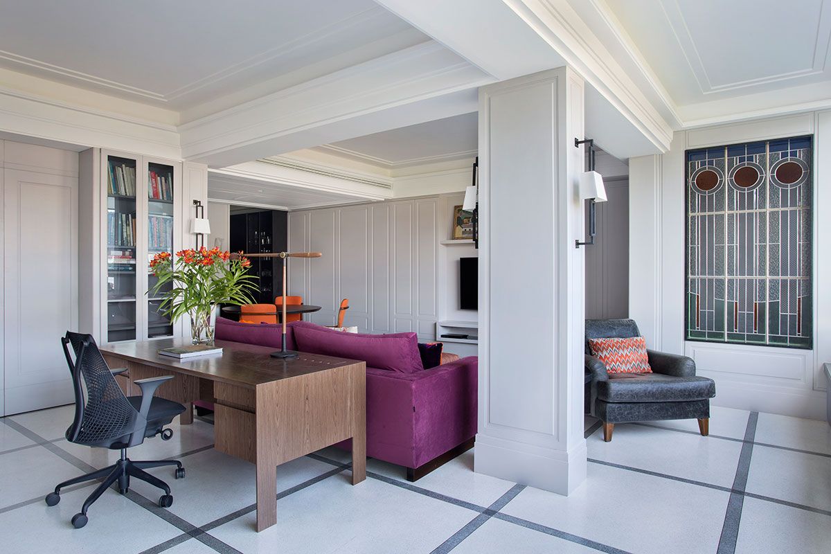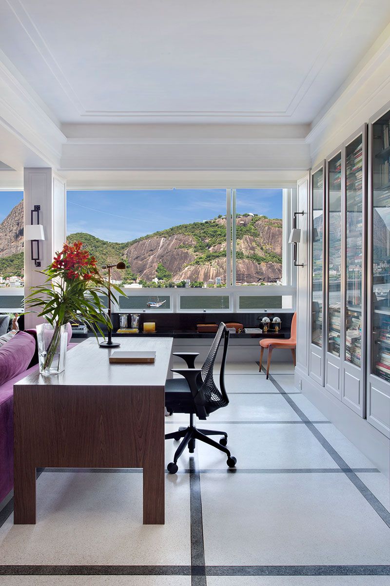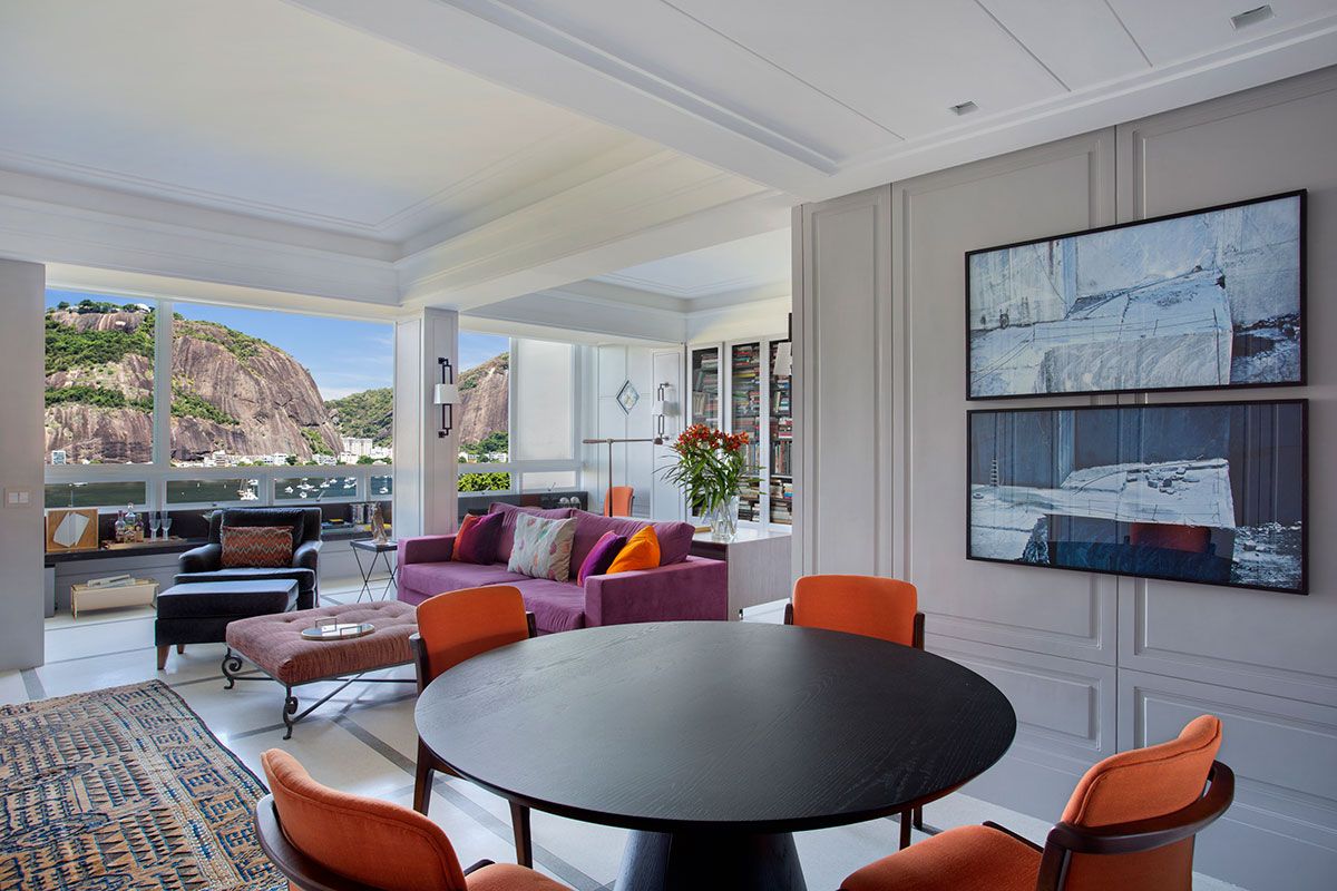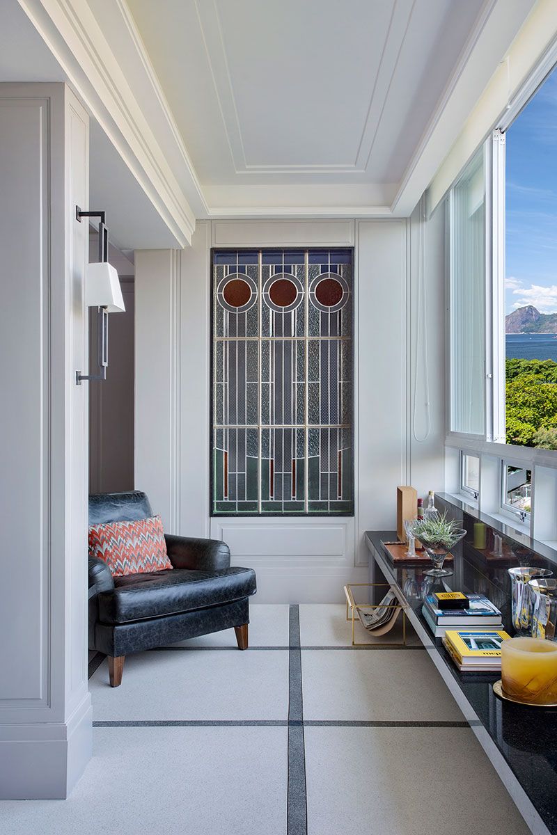 O antigo edifício em estilo art déco no Flamengo, projetado em 1937 pelo arquiteto Firmino Saldanha, foi fonte de inspiração para o projeto de reforma e decoração de um de seus apartamentos, assinado pelo arquiteto Francisco Viana. O imóvel de 120m², com vista para o Pão de Açúcar, pertence a um casal de acadêmicos na faixa de 50 anos, sem filhos. Todos os cômodos do apartamento foram trabalhados e a planta reconfigurada.