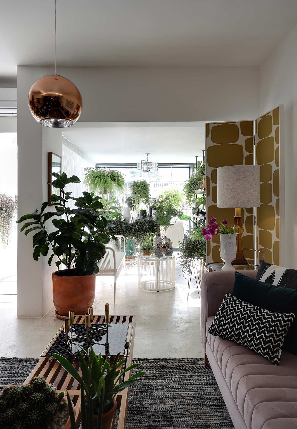 O arquiteto Robert Robl encontrou no bairro do Brooklin, em São Paulo, a casa ideal para fazer seu escritório e showroom com peças que vive garimpando para seus clientes. O lugar passou por uma reforma que visou aproveitar cada m² e, para começar, no térreo ele dividiu o espaço, sendo uma parte para expor os móveis que seleciona para a Capsula Decor, e a outra para os vasos de plantas da Blooms, que sempre cuida do paisagismo de seus projetos.