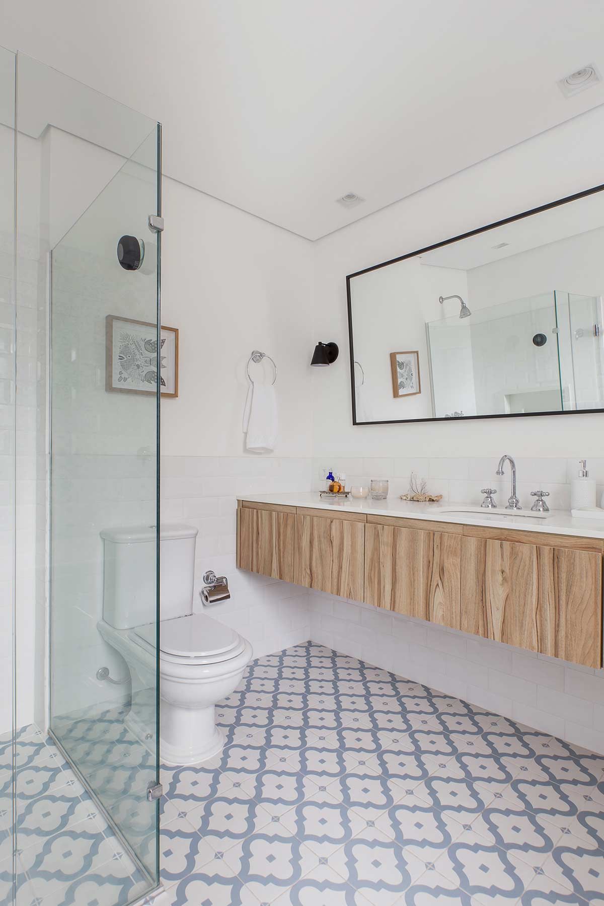 Como a cliente adora arte e decoração, o projeto de interiores foi pensado a 6 mãos. Misturamos peças herdadas da família com outras garimpadas em feiras de antiguidade e viagens, para que as memórias e histórias dela perpetuassem pelos cômodos.