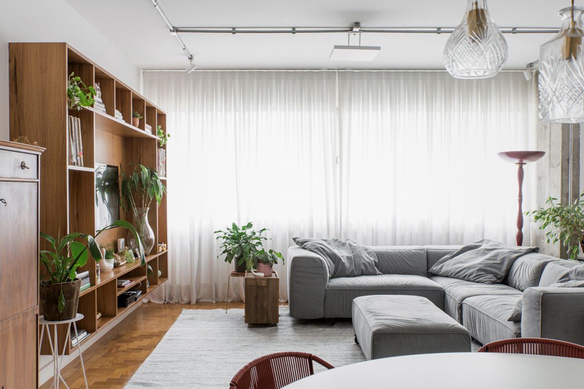 A moradora deste apartamento localizado no bairro Paraíso, herdou o imóvel de seus avós e, preenchida por um sentimento nostálgico e muitas memórias, resolveu embarcar em uma reforma. Quem assina a transformação é o escritório D2N Arquitetura e Interiores que encarou o desafio de, com orçamento enxuto, realizar pedidos incluindo uma área de trabalho integrada ao estar; aproveitamento da iluminação natural; e que a cozinha fosse conectada com a parte social de uma maneira convidativa, para receber os amigos.