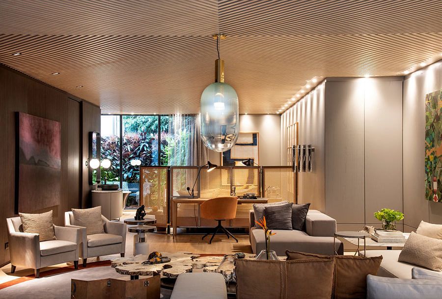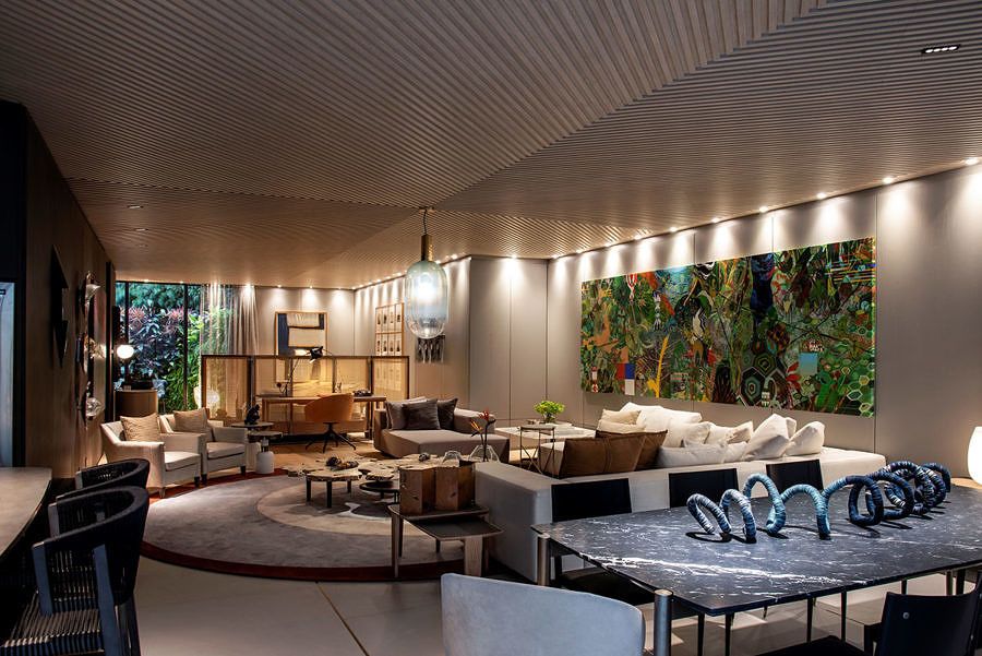 O ambiente assinado pela Denise Barretto para a CasaCor SP 2019 é o Atelier de Morar. O projeto de 130m² é um espaço único, onde todos os ambientes são integrados e a arte faz parte da personalidade do projeto.