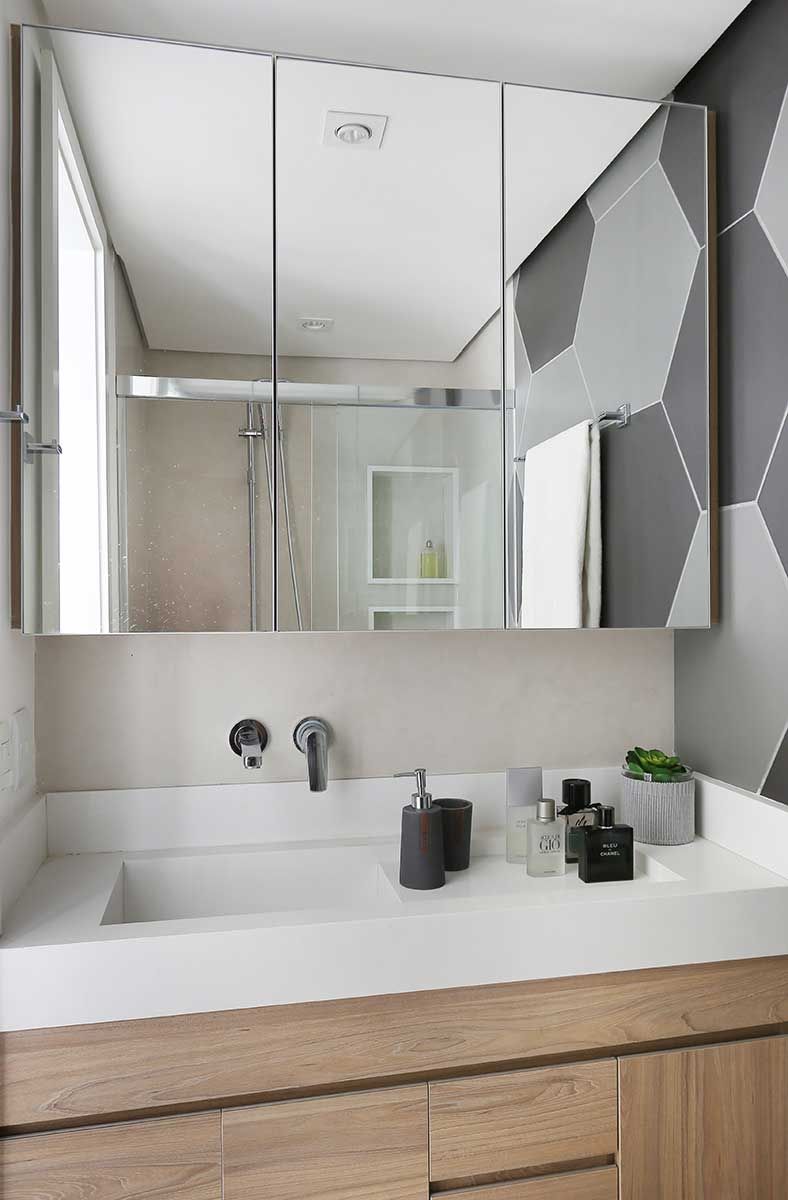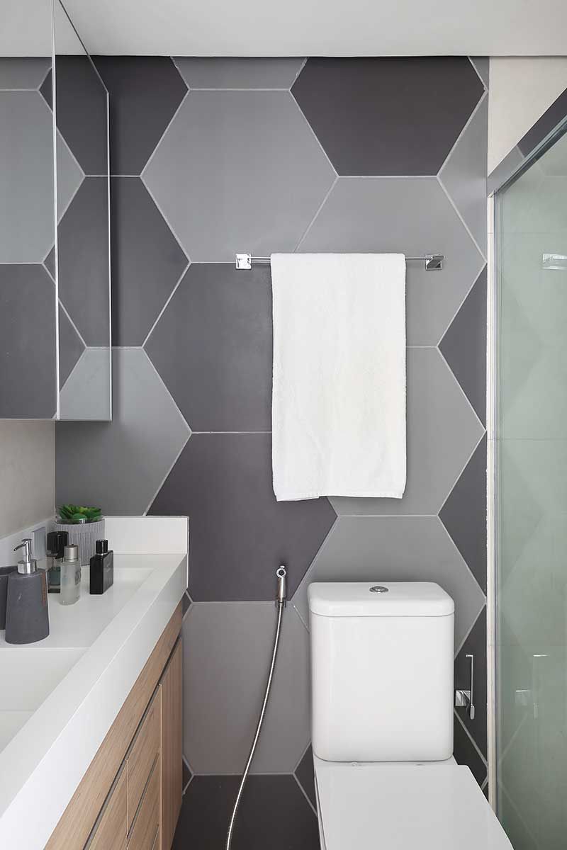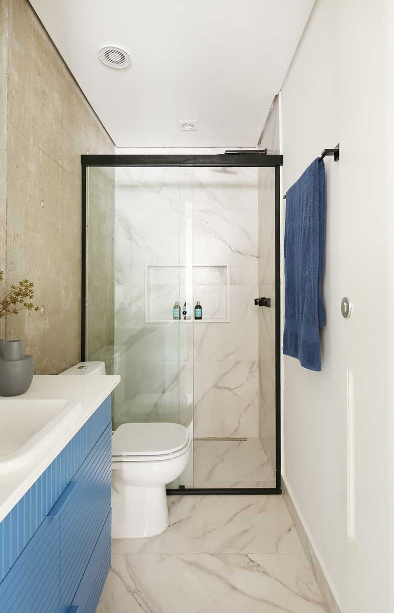 Como o cliente mora sozinho o escritório pensou em espaços para o seu uso, mas dando atenção a um pedido especial: a mãe dele o visita com frequência, por isso foi criado um segundo banheiro e também mais um quarto, que antes não existiam.
