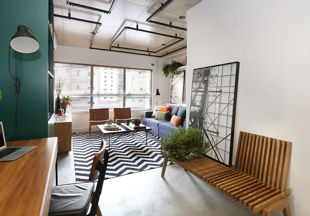 Por se tratar de um apartamento maxhaus, o cliente já tinha uma tendência a gostar do industrial e dos espaços amplos e abertos.