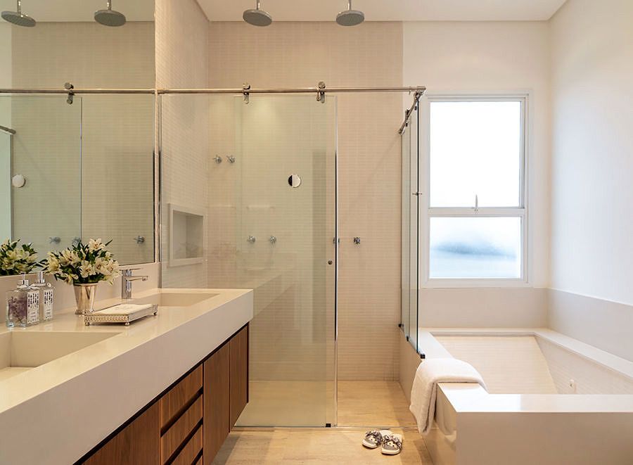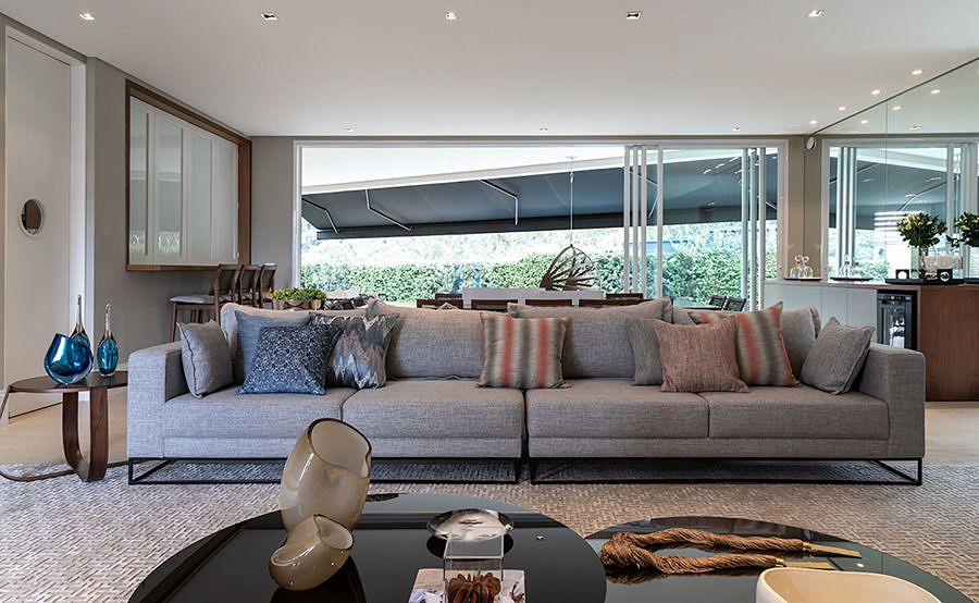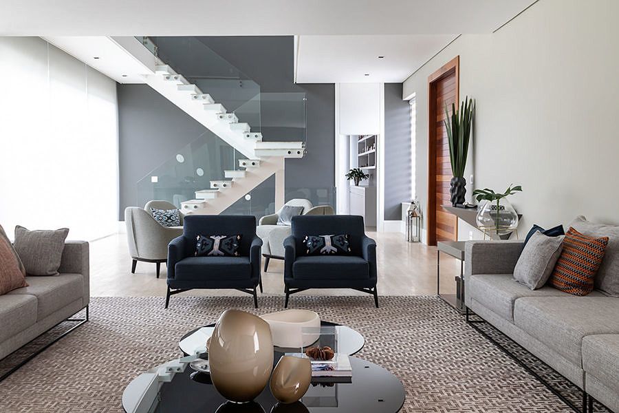 A arquitetura da casa já estava finalizada quando o imóvel foi comprado, mas para assinar o projeto de interiores e deixar do jeitinho que sempre sonharam os moradores escolheram o escritório Rocha Andrade Arquitetura.