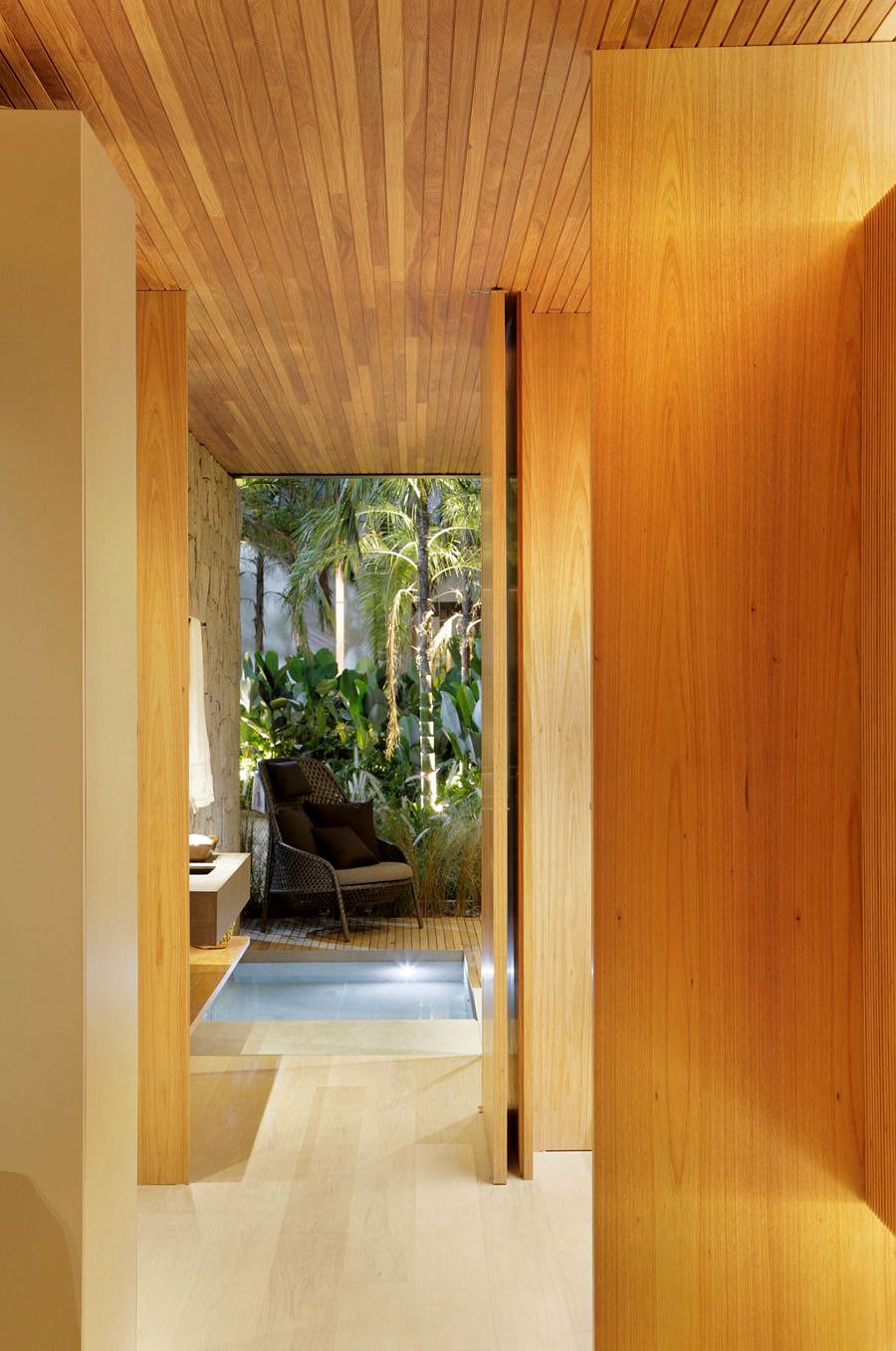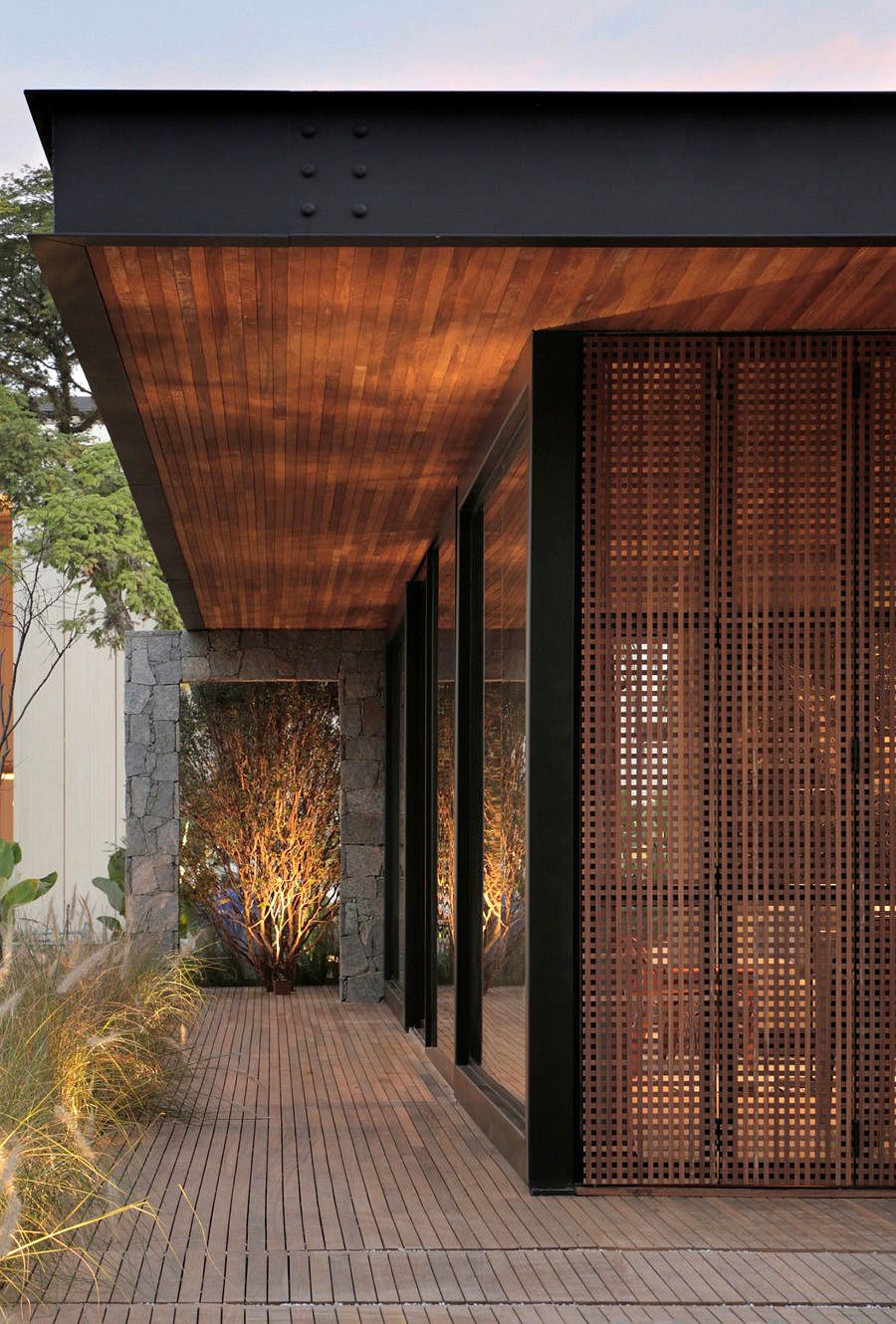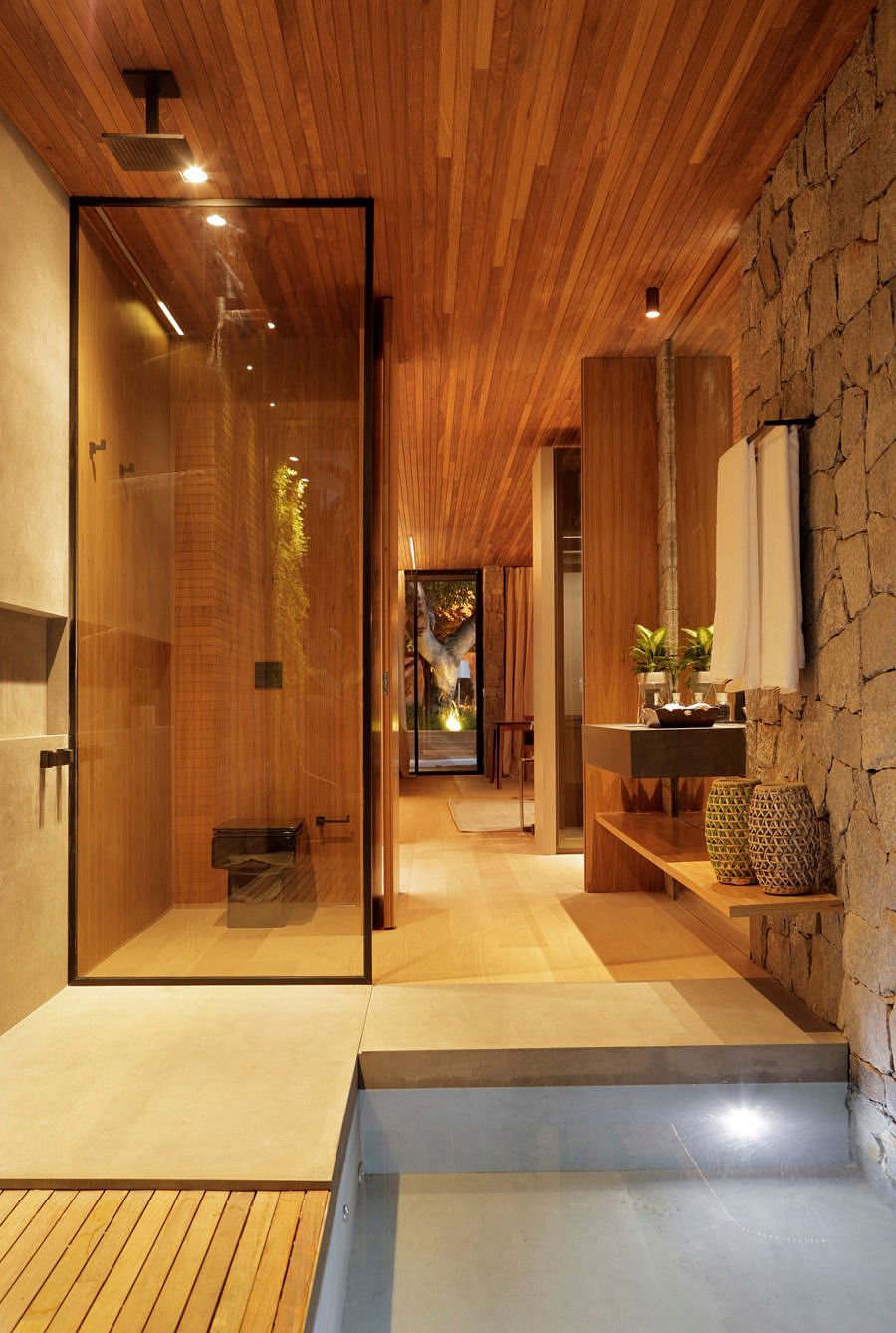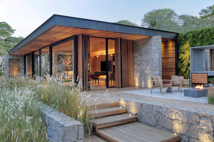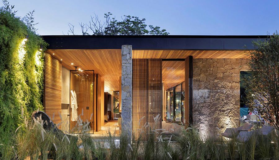 Minha nota: enxergo a casa Lite como uma afirmação do que nos falta. Tudo o que é natural temos pouco na vida urbana. Madeira, verde, pedras… e é exatamente isso que alguns ambientes da CASACOR tentam trazer em abundância, como nesta casa.