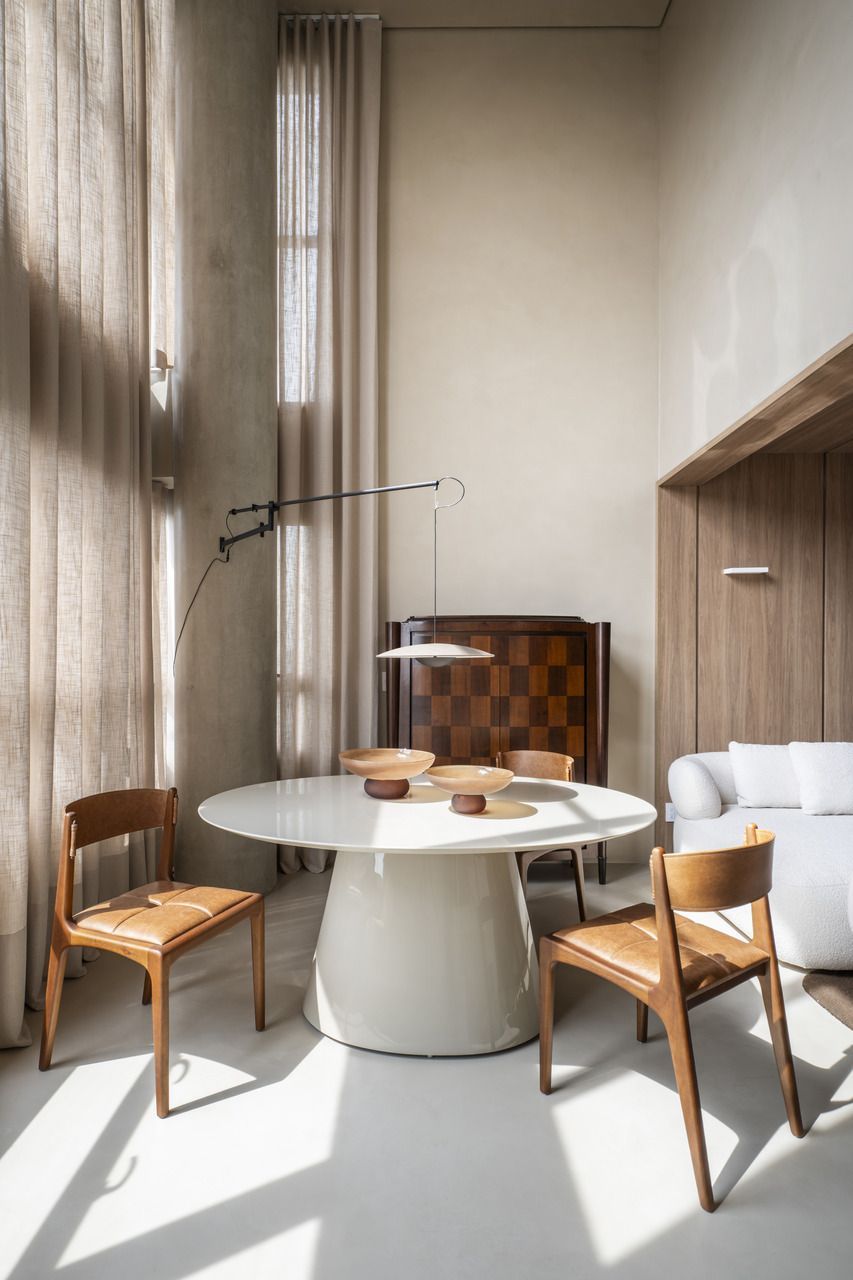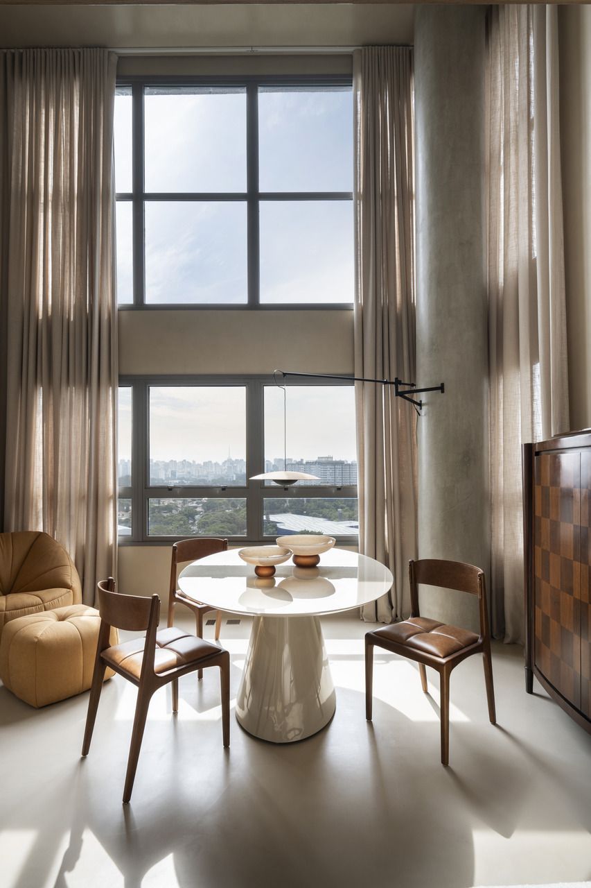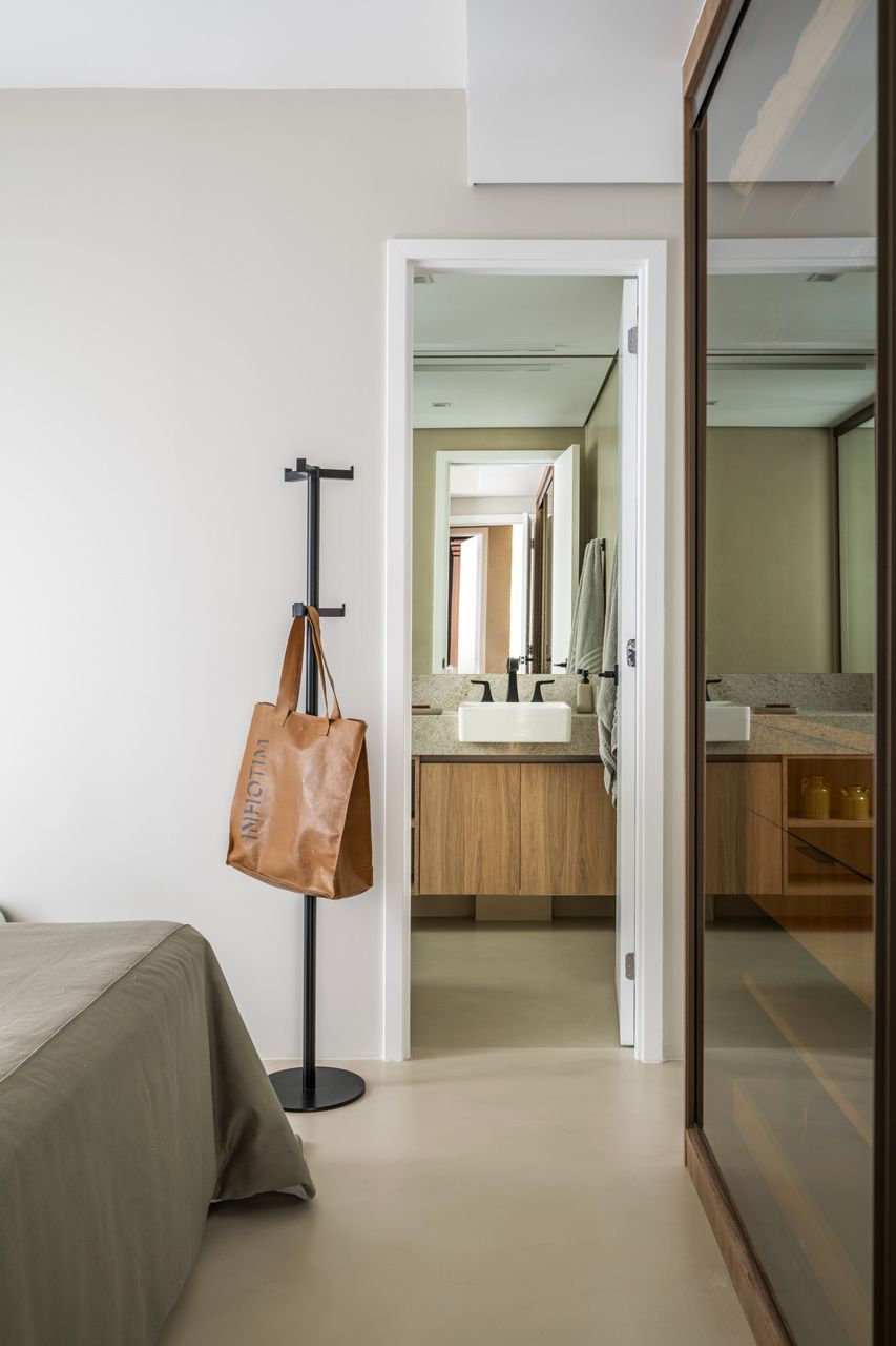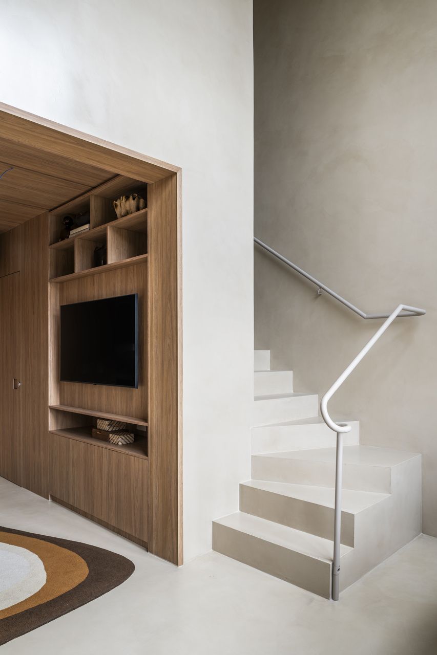 “Adoramos a unicidade que conseguimos realizar através do uso do revestimento monolítico no piso, paredes e teto de quase todo o apartamento. Com isso tivemos uma base neutra onde trabalhamos com bastante liberdade o conceito do projeto.”